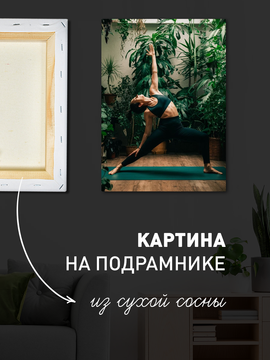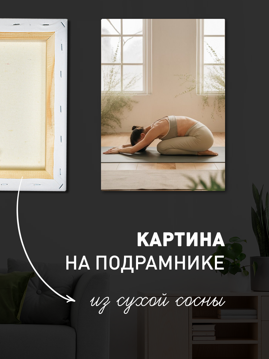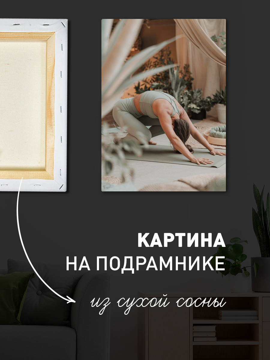 Описание: Картина 50 на 70 'Йога в гармонии'. На этой картине изображена женщина, выполняющая сложную йоговскую асану в светлом и уютном интерьере. Вокруг нее расположены зелёные растения, подчеркивающие атмосферу спокойствия и единения с природой. Основная идея картины заключается в поиске внутреннего баланса и гармонии через занятия йогой. Уникальность картины в ее способности передать чувство умиротворения и сосредоточенности, что делает её идеальным элементом для любого пространства. Эта картина вызывает позитивные эмоции и способствует созданию расслабляющей атмосферы. Она наполняет комнату светом и теплом, создавая ощущение спокойствия и комфорта. Представьте, как она станет центром внимания в вашем доме, вдохновляя на занятия йогой и медитацией. Картина отлично впишется в интерьер гостиной, спальни или кабинета, добавив нотку стиля и уюта. Она может стать замечательным акцентом на стене, а также гармонично дополнит пространство, оформленное в скандинавском, современном или минималистском стиле. Эта картина — не просто украшение, а источник вдохновения и спокойствия, который будет радовать вас каждый день.