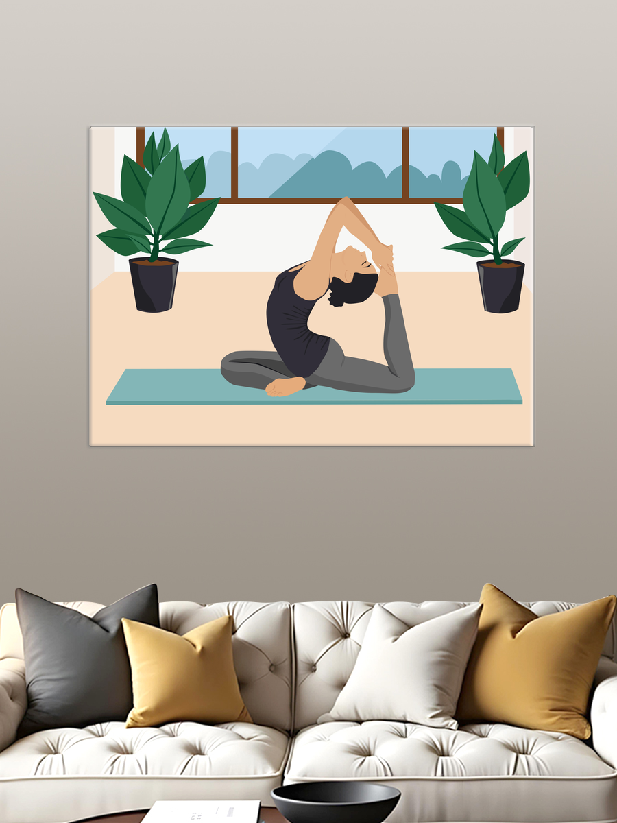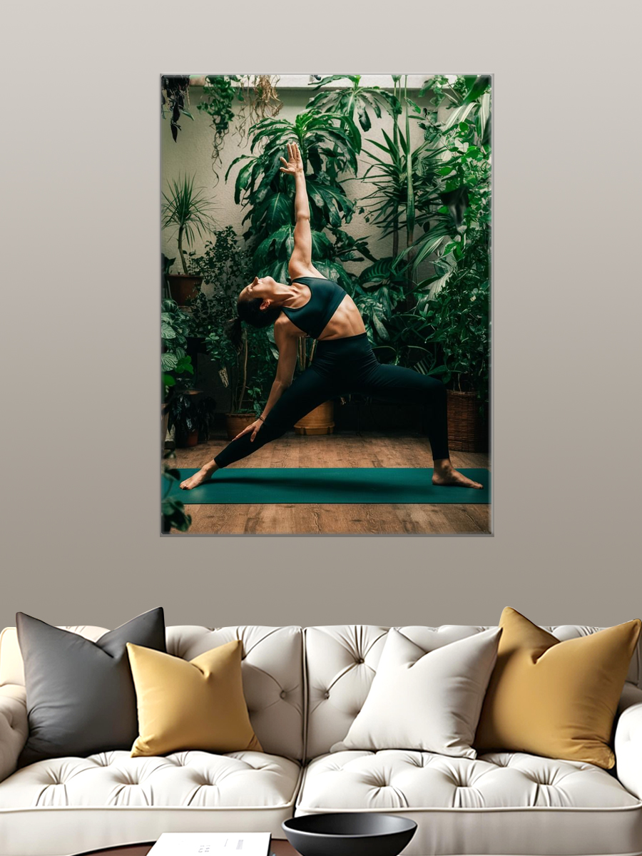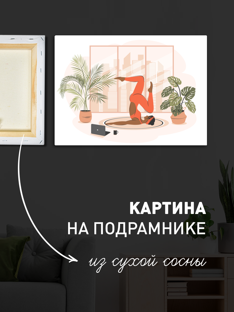 Описание: Картина 50 на 70 'Йога в гармонии'. На этой картине изображена женщина, выполняющая сложную йоговскую асану в светлом и уютном интерьере. Вокруг нее расположены зелёные растения, подчеркивающие атмосферу спокойствия и единения с природой. Основная идея картины заключается в поиске внутреннего баланса и гармонии через занятия йогой. Уникальность картины в ее способности передать чувство умиротворения и сосредоточенности, что делает её идеальным элементом для любого пространства. Эта картина вызывает позитивные эмоции и способствует созданию расслабляющей атмосферы. Она наполняет комнату светом и теплом, создавая ощущение спокойствия и комфорта. Представьте, как она станет центром внимания в вашем доме, вдохновляя на занятия йогой и медитацией. Картина отлично впишется в интерьер гостиной, спальни или кабинета, добавив нотку стиля и уюта. Она может стать замечательным акцентом на стене, а также гармонично дополнит пространство, оформленное в скандинавском, современном или минималистском стиле. Эта картина — не просто украшение, а источник вдохновения и спокойствия, который будет радовать вас каждый день.