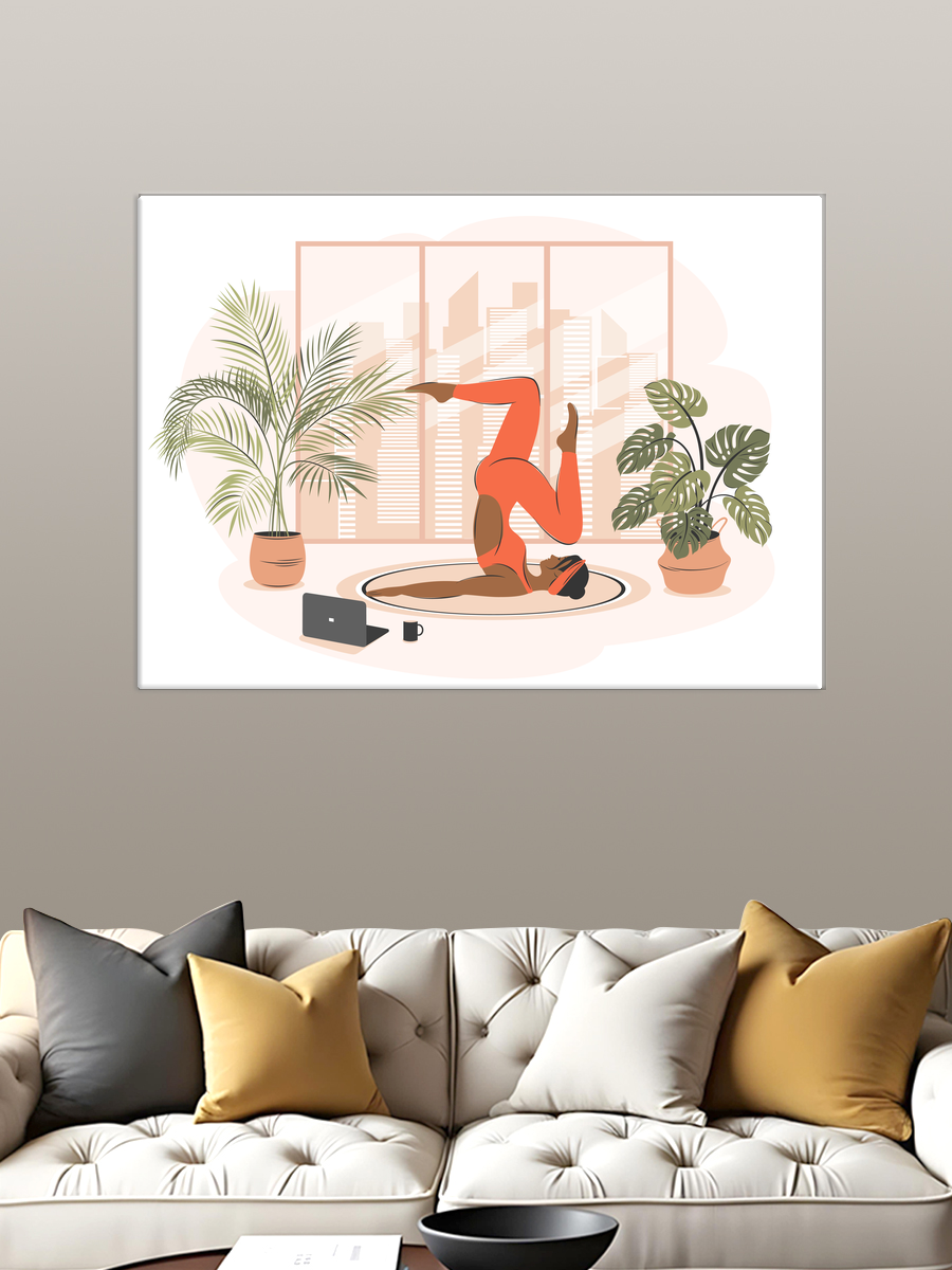 Описание: Картина 50 на 70 'Уютный Йога' представляет собой живописное изображение женщины, занимающейся йогой в уютном интерьере. Она находится на коврике, в окружении зелёных растений и с ноутбуком рядом. Основная идея картины — передать атмосферу спокойствия и гармонии, которая возникает во время практики йоги. Уникальность этой работы заключается в сочетании теплых оранжевых и мягких бежевых тонов, создающих ощущение уюта и комфорта. Эта картина вызывает чувства умиротворения и вдохновения, напоминая о важности заботы о себе и внутреннем покое. Она прекрасно подойдет для любого интерьера, будь то спальня, гостиная или даже домашний кабинет. Картина станет отличным акцентом в вашем пространстве, привнося нотки спокойствия и стиля. Повесив эту картину на стену, вы создадите атмосферу, способствующую расслаблению и концентрации. Она будет гармонично смотреться на фоне нейтральных или теплых оттенков, усиливая общую эстетику вашего дома. 'Уютный Йога' — это не просто картина, а элемент вашего личного пространства, вдохновляющий на новые свершения и наполняющий жизнь положительными эмоциями.