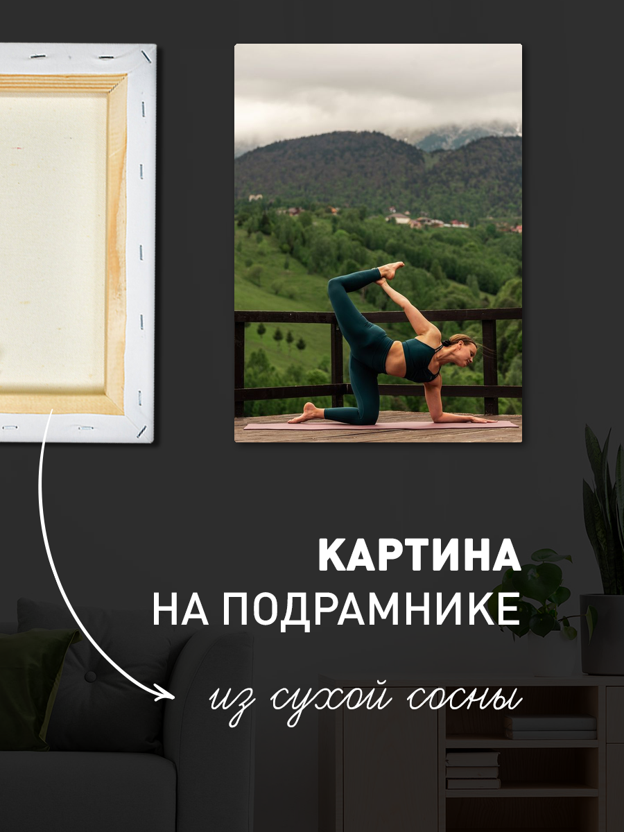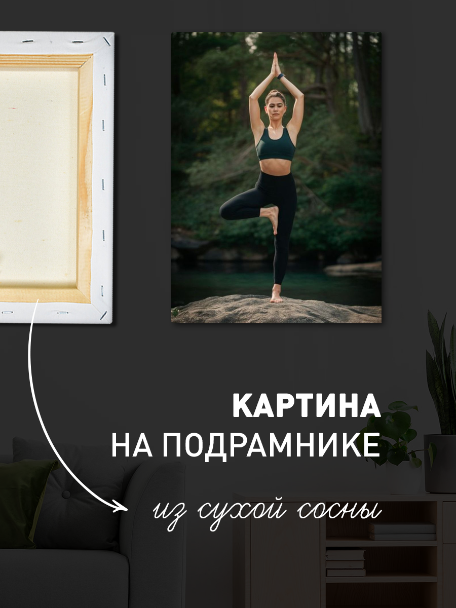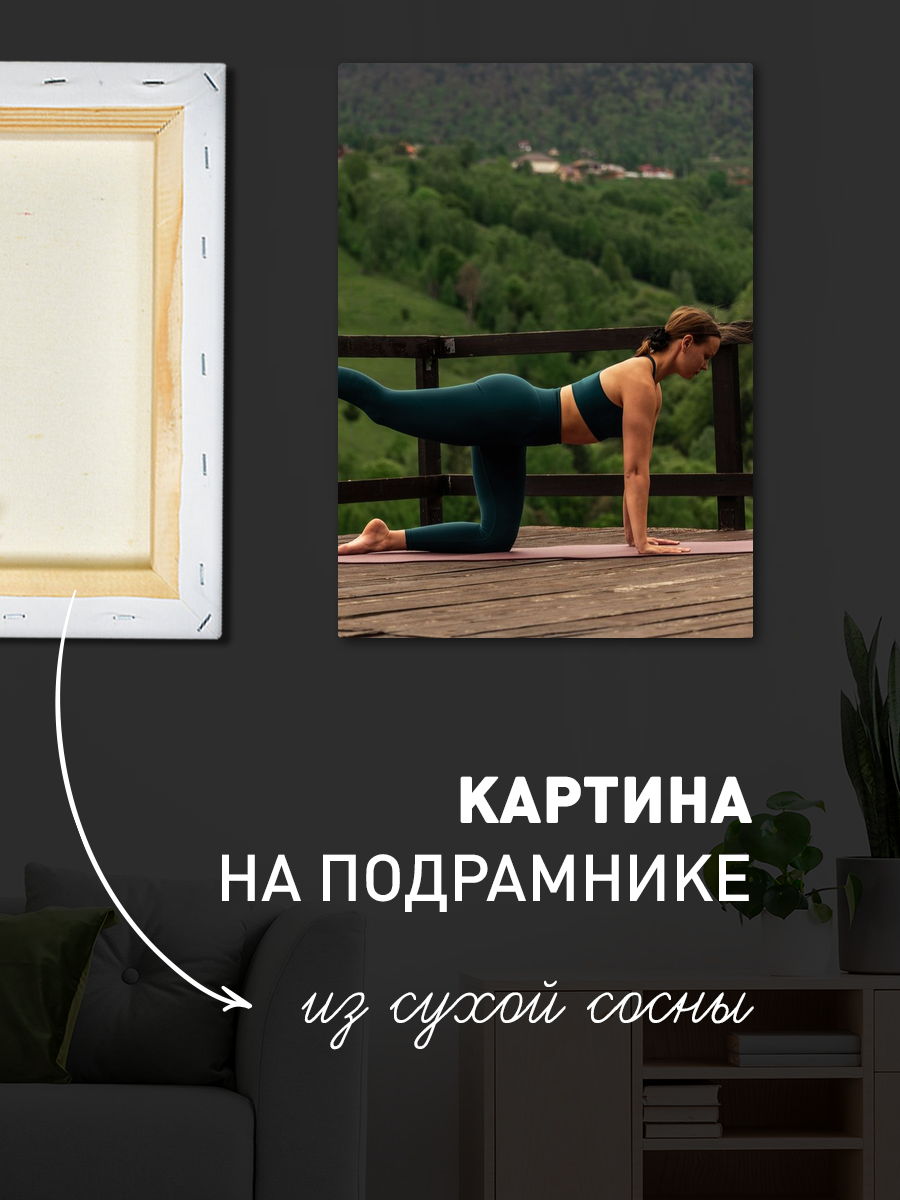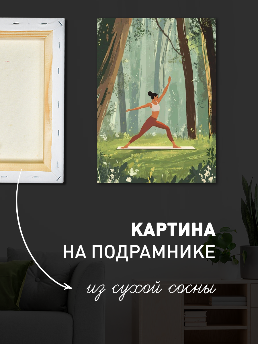 Описание: Картина 50 на 70 'Йога на природе' изображает женщину, выполняющую асану на деревянной площадке с живописным зеленым фоном. Основная идея картины — гармония между телом и природой, что делает её уникальной для любителей йоги и спокойствия. Эта работа вызывает чувства умиротворения и внутреннего спокойствия, позволяя зрителю представить себя на природе, в гармонии с окружающим миром. Картина идеально впишется в современные интерьеры, такие как спальни, кабинеты или залы для медитации. Она создаст атмосферу расслабления и вдохновения, добавляя уют и стиль в любое пространство.
