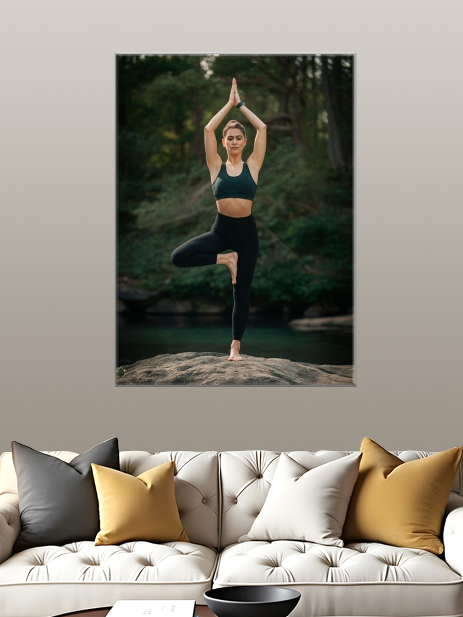 Описание: Картина 50 на 70 "Вдохновение природы" представляет собой удивительное изображение, на котором молодая женщина выполняет асану йоги на большом камне, окруженном великолепной природой. Эта работа передает гармонию между человеком и окружающим миром, вдохновляя зрителей на поиск внутреннего спокойствия и единства с природой. Основная идея картины заключается в том, чтобы показать, как практика йоги может стать источником силы и умиротворения. Женщина, сосредоточенная и в гармонии с собой, вызывает чувства спокойствия и умиротворения, напоминая о важности заботы о собственном здоровье и душевном состоянии. Каждая деталь, от изящных линий её тела до мягкого света, пронизывающего композицию, создает атмосферу спокойствия и вдохновения. Эта картина идеально подойдет для современных интерьеров, добавляя в них нотки природной гармонии. Она будет великолепно смотреться в спальне, создавая атмосферу уюта и спокойствия, или в студии, где вы занимаетесь йогой или медитацией. Также ее можно разместить в гостиной, чтобы привнести в пространство элементы природы и свежести. "Вдохновение природы" — это не просто картина, это приглашение к размышлениям и медитации. Она станет неотъемлемой частью вашего интерьера, способствуя созданию атмосферы, где каждый будет чувствовать себя спокойно и умиротворенно.
