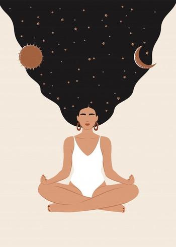 Описание: Картина 50 на 70 "Медитация под звёздами" представляет собой уникальное произведение искусства, которое изображает женщину в позе медитации, с космическими элементами, такими как звёзды, луна и планеты, исходящими из её длинных волос. Эта картина наполнена символикой внутреннего мира и гармонии, что делает её идеальным акцентом для любого пространства. Основная идея картины заключается в поиске внутреннего спокойствия и связи с космосом. Эмоции, которые она вызывает, варьируются от умиротворения до вдохновения, помогая зрителям погрузиться в атмосферу медитации и размышлений. Яркие и глубокие цвета, такие как черный и золотой, создают контраст с нежным бежевым фоном, придавая картине особую выразительность. Эта картина отлично впишется в интерьер современных квартир, студий или офисов, добавляя нотки элегантности и духовности. Она станет прекрасным украшением спальни, кабинета или даже гостиной, создавая уютную атмосферу и способствуя расслаблению. "Медитация под звёздами" — это не просто картина, это приглашение в мир гармонии и самопознания.