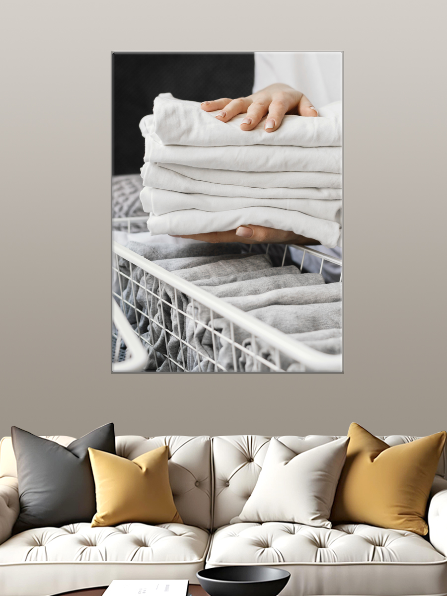Описание: Картина 50 на 70 "Чистота и порядок" изображает аккуратно сложенные белые и серые вещи в корзине, символизируя уют и гармонию в домашнем пространстве. Основная идея картины заключается в том, что даже в повседневных делах, таких как стирка и складывание одежды, можно найти красоту и спокойствие. Уникальность этой работы заключается в её способности вызвать чувство умиротворения и организованности, что особенно важно в нашем стремительном мире. Эта картина пробуждает в зрителе положительные эмоции, создавая атмосферу чистоты и порядка. Она наполняет пространство светом и свежестью, напоминая о важности заботы о домашнем уюте. Вы можете представить, как эта работа будет смотреться в вашем интерьере, добавляя нотки стиля и уюта в любую комнату. Картина отлично подойдет для кухни, ванной комнаты или прихожей, а также станет изюминкой в любом современном или минималистском интерьере. Повесьте её над стиральной машиной или в зоне хранения, и она будет вдохновлять вас на поддержание порядка. С её помощью вы можете создать атмосферу спокойствия и гармонии, которая будет радовать вас и ваших гостей каждый день.