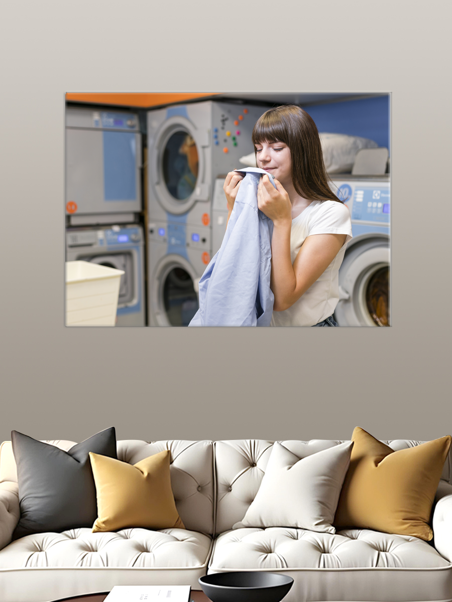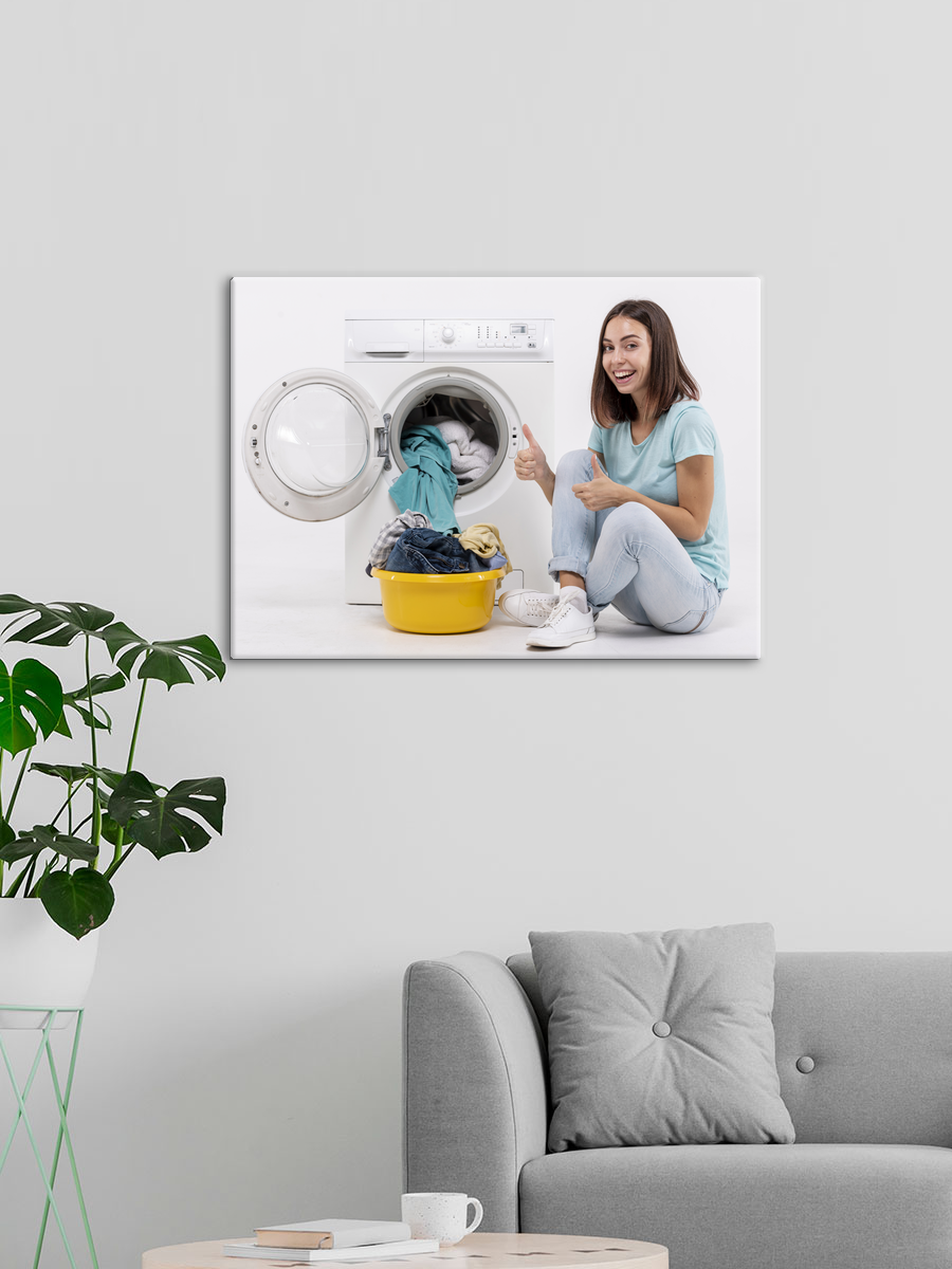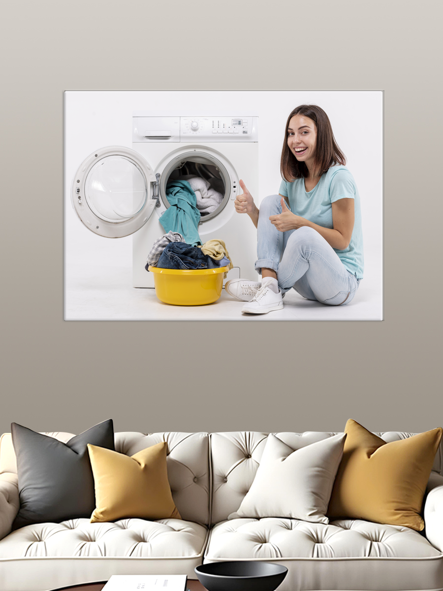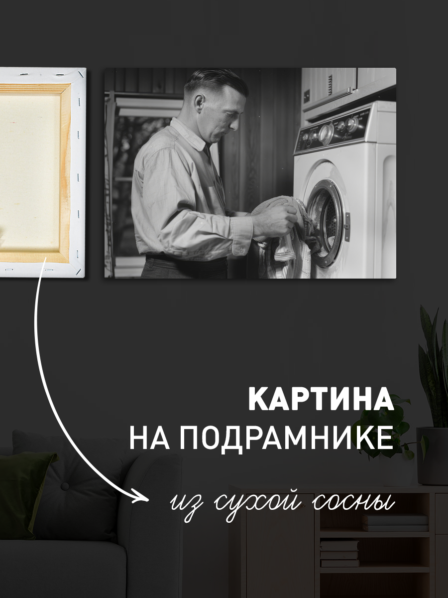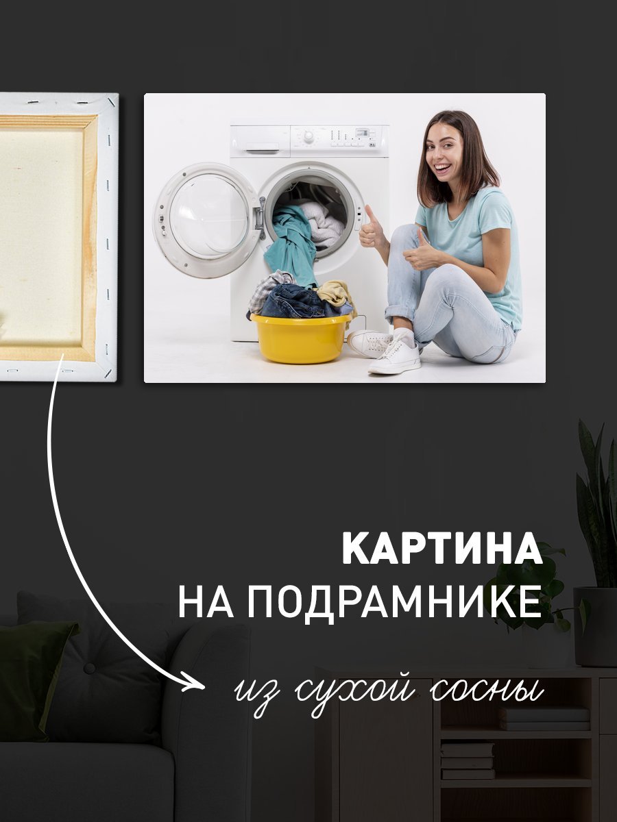 Описание: Картина 50 на 70 "Веселая стирка" изображает молодую девушку, радостно указывающую на стиральную машину, полную яркой одежды. Эта работа передает атмосферу легкости и позитивного настроения, что делает её уникальной. Главная идея картины – показать радость в повседневных делах, таких как стирка, и превратить рутинные моменты в веселые. Картина вызывает чувство тепла и уюта, напоминая о домашнем комфорте и простых радостях жизни. Яркие цвета одежды и светлая обстановка создают жизнеутверждающую атмосферу, которая может поднять настроение в любое время. Она идеально подойдет для кухни, ванной или прачечной, а также может стать акцентом в светлом интерьере. Разместив её на стене, вы добавите в пространство нотку позитива и вдохновения. Эта картина станет отличным подарком для друзей и близких, которые ценят уют и радость в повседневной жизни.