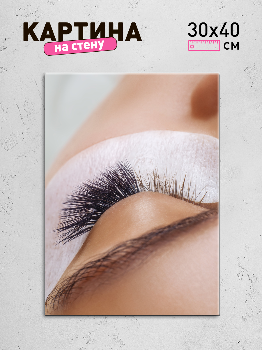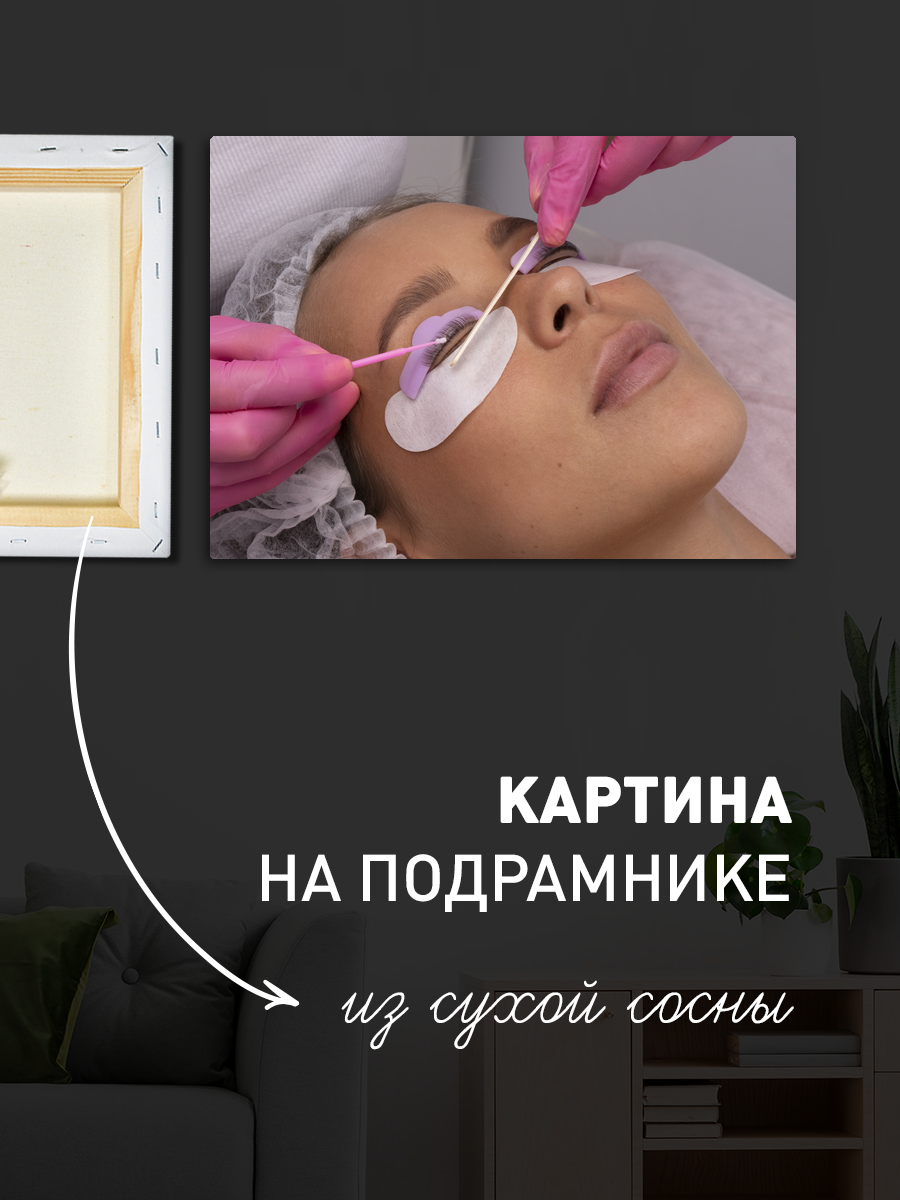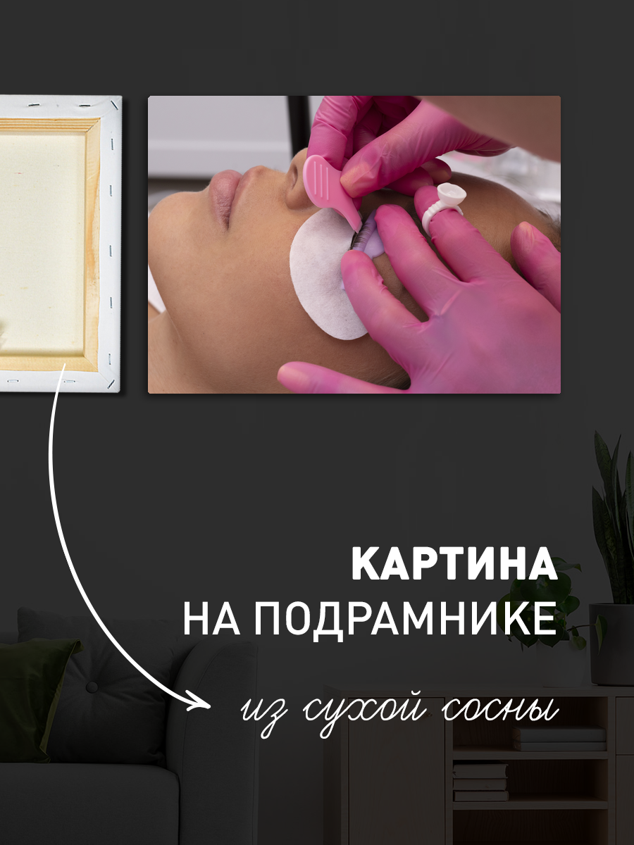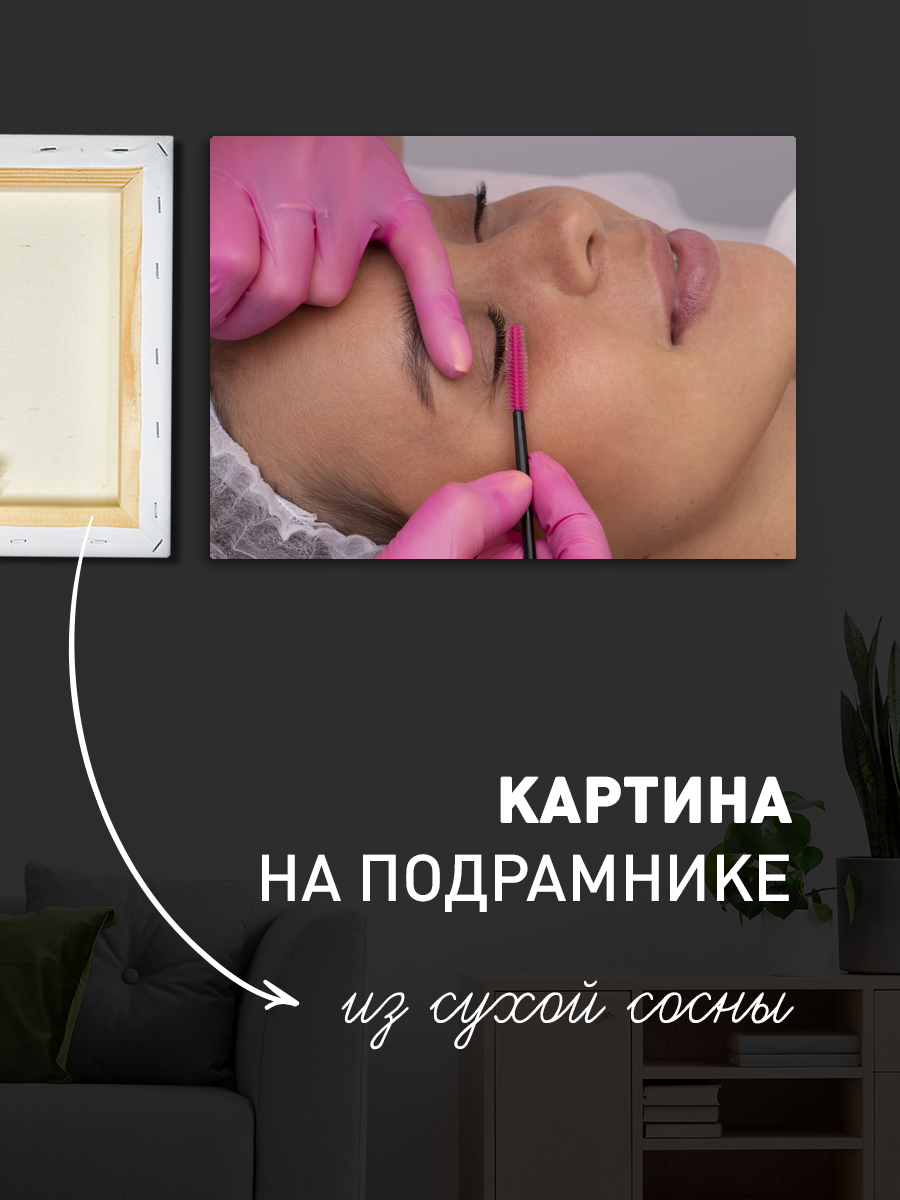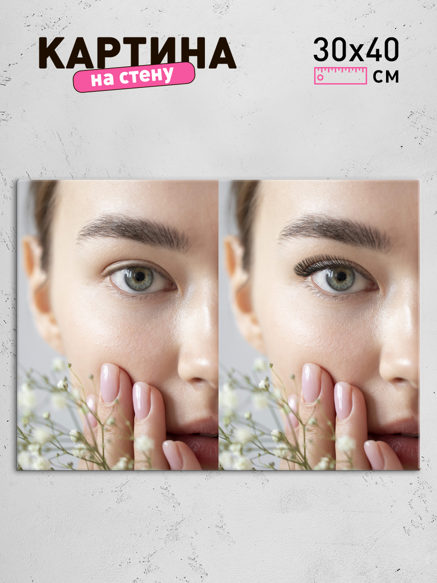 Описание: Картина 50 на 70 "Искусство взгляда: Наращивание ресниц" **Описание картины:** Эта детализированная картина передает интимный момент создания красоты – процесс наращивания ресниц. В фокусе – крупный план лица клиента и рук мастера в ярко-розовых перчатках, аккуратно работающих над созданием идеального взгляда. Контраст нежной кожи, ярких перчаток и белого патча под глазом создает художественно выразительную композицию. Уникальность картины в том, что она превращает рутинную бьюти-процедуру в настоящее искусство, подчеркивая точность, профессионализм и внимание к деталям. **Эмоции и чувства:** Картина вызывает ощущение спокойствия, доверия и предвкушения преображения. Яркие, сочные цвета дарят позитивный настрой и чувство стиля. Это изображение транслирует идею заботы о себе, эстетического удовольствия и совершенства, которое достигается благодаря мастерству. Глядя на нее, вы почувствуете вдохновение и желание подчеркнуть свою природную красоту. **Интерьер:** Этот принт на холсте идеально подойдет для оформления современного бьюти-пространства: салона красоты, студии наращивания ресниц или кабинета косметолога. Розовые и бежевые оттенки прекрасно впишутся в интерьер в стиле минимализм, модерн или гламур. Она также может стать ярким акцентом в домашнем интерьере – в спальне, гардеробной или личном будуаре, напоминая о важности ухода за собой и эстетике повседневной жизни. Размер 50х70 см позволяет разместить ее как центральный элемент декора.