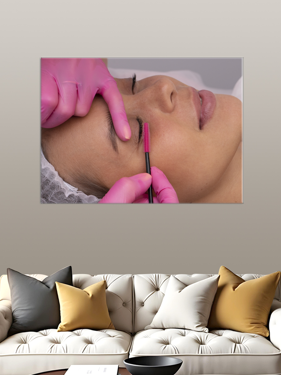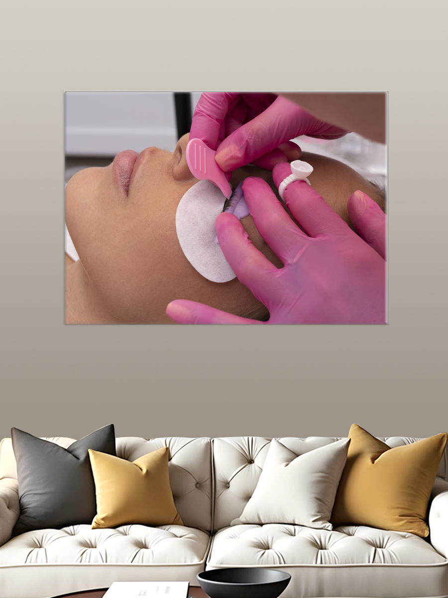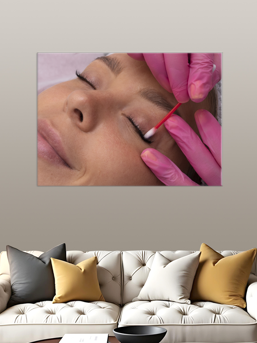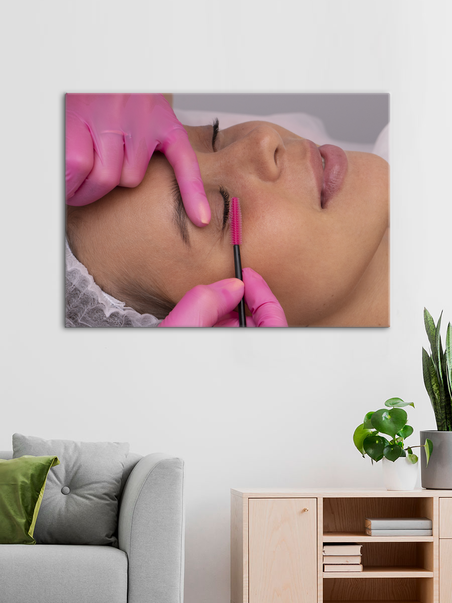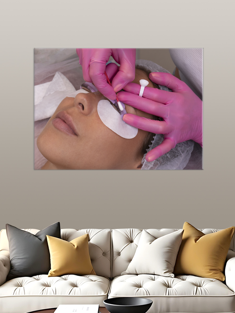 Описание: Картина 50 на 70 "Искусство преображения" – напечатанное на холсте изображение, погружающее зрителя в мир бьюти-процедур. В центре внимания – крупный план лица модели во время процедуры ламинирования ресниц. Это не просто момент ухода, а настоящая медитация красоты, запечатленная через объектив. Уникальность картины в ее контрасте и детализации: ярко-розовые перчатки мастера выступают динамичным акцентом на фоне спокойного серого фона и нежной бежевой кожи. Фиолетовые валики и белые патчи подчеркивают кропотливую работу, направленную на создание совершенного изгиба. Картина вызывает чувство расслабления, доверия и ожидания чуда, которое происходит, пока модель отдыхает с закрытыми глазами. Этот шедевр идеально подойдет для интерьера салона красоты, студии ламинирования ресниц или наращивания, а также для современного домашнего пространства, оформленного в стилях минимализм, лофт или хай-тек, где он станет ярким, мотивирующим и стильным элементом декора. Это отличный способ показать профессионализм и эстетику бьюти-индустрии.