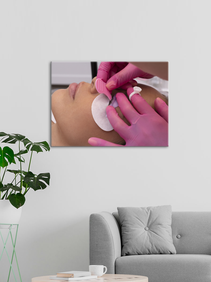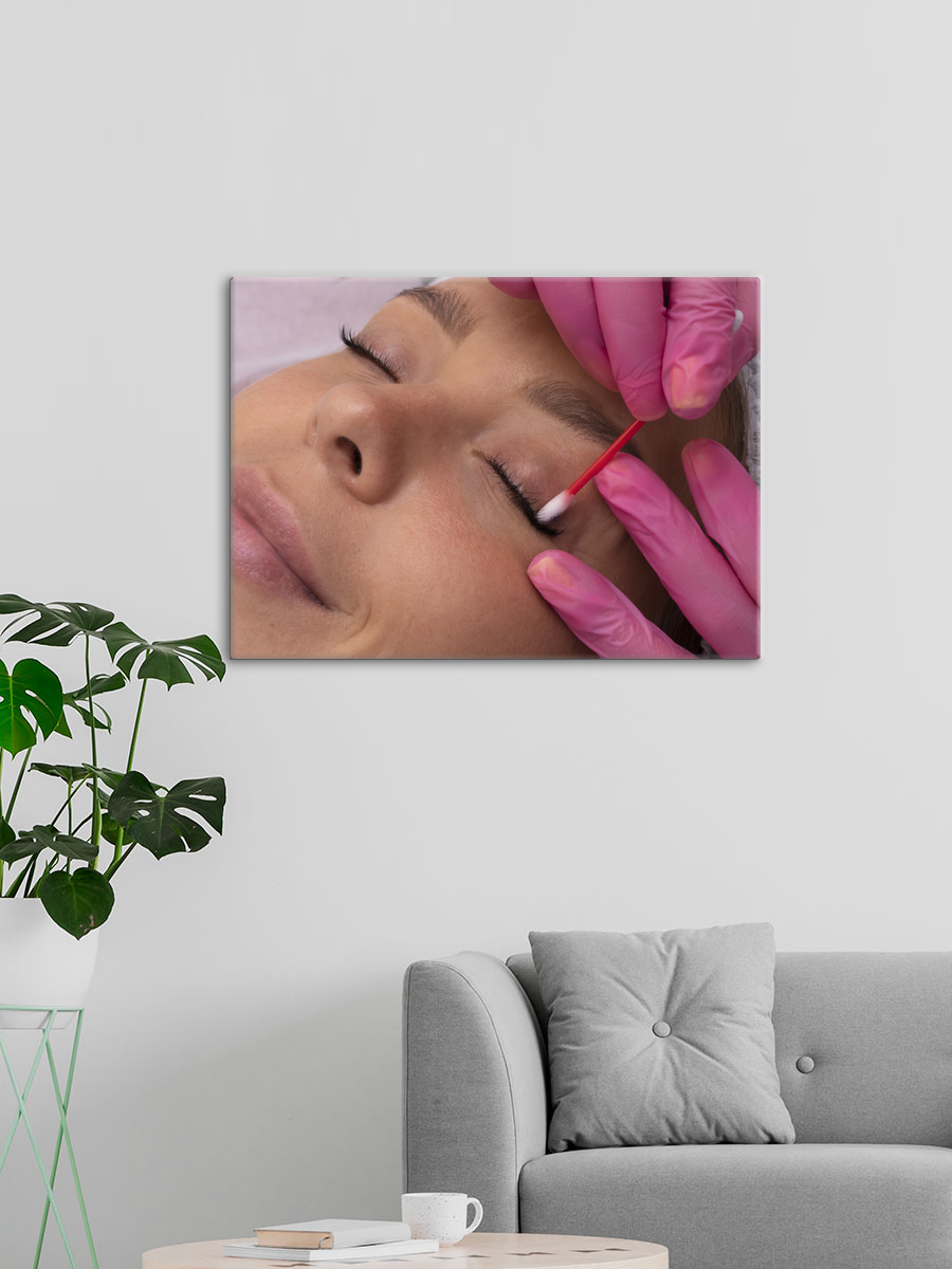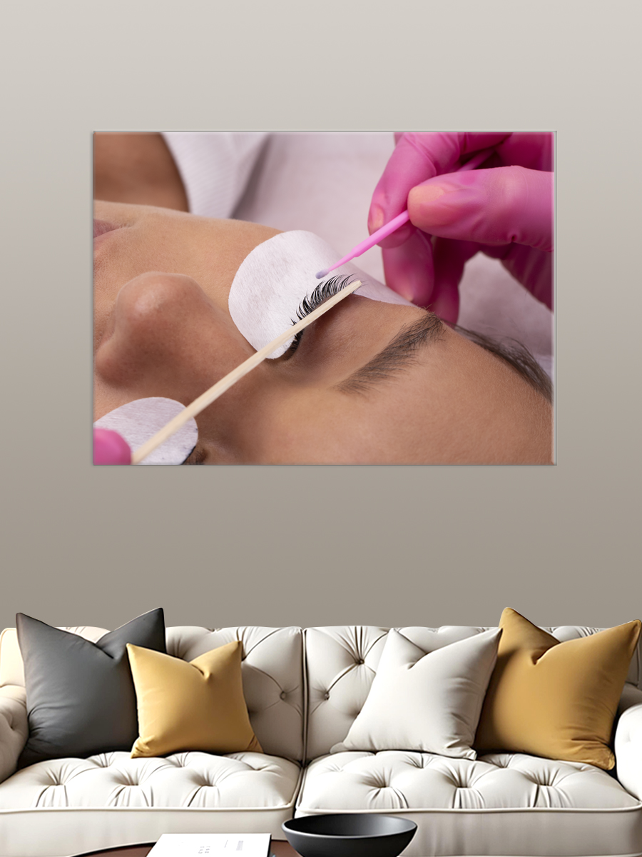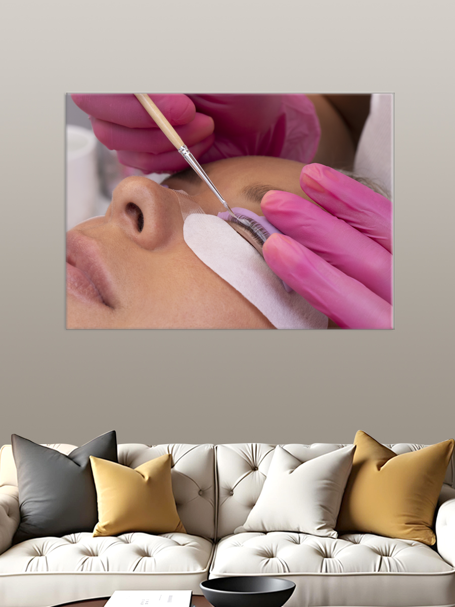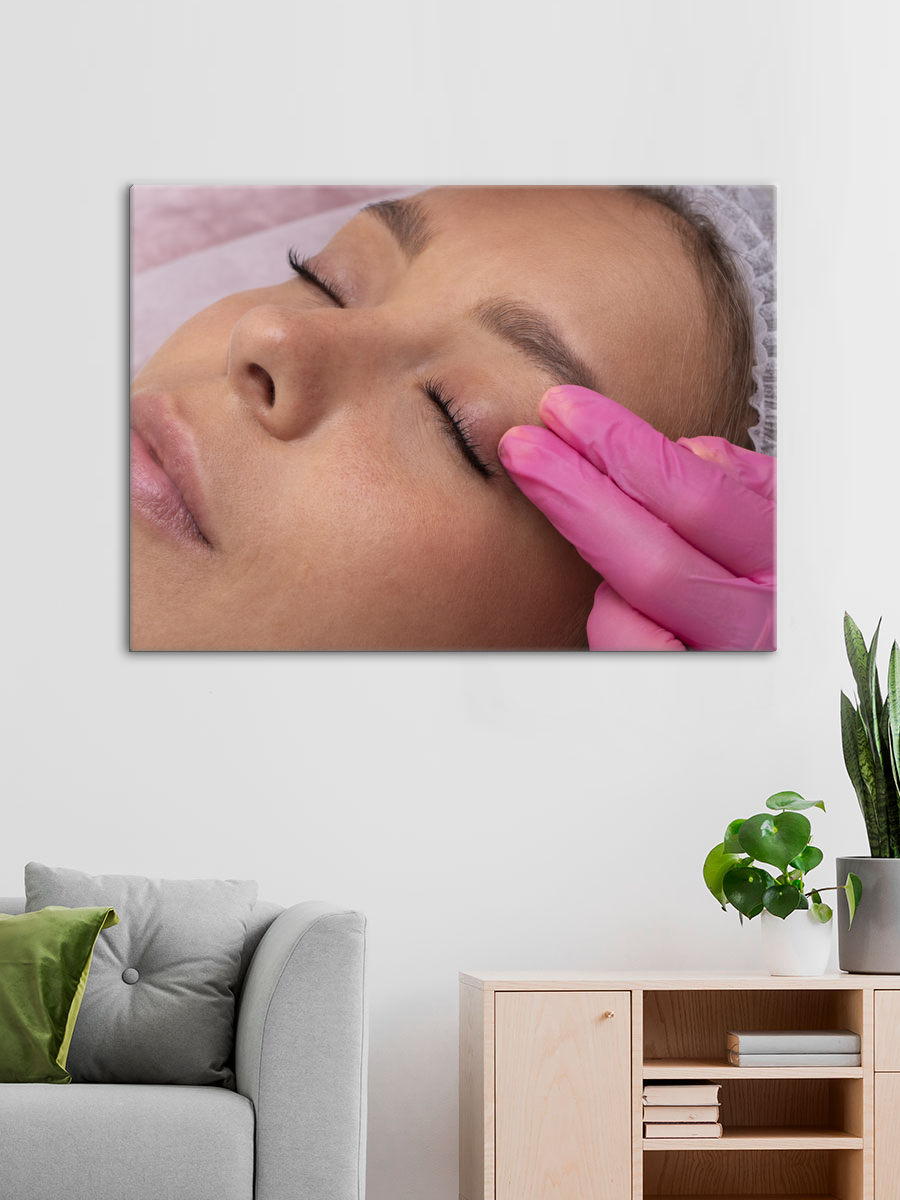 Описание: Картина 50 на 70 "Искусство преображения" – напечатанное на холсте изображение, погружающее зрителя в мир бьюти-процедур. В центре внимания – крупный план лица модели во время процедуры ламинирования ресниц. Это не просто момент ухода, а настоящая медитация красоты, запечатленная через объектив. Уникальность картины в ее контрасте и детализации: ярко-розовые перчатки мастера выступают динамичным акцентом на фоне спокойного серого фона и нежной бежевой кожи. Фиолетовые валики и белые патчи подчеркивают кропотливую работу, направленную на создание совершенного изгиба. Картина вызывает чувство расслабления, доверия и ожидания чуда, которое происходит, пока модель отдыхает с закрытыми глазами. Этот шедевр идеально подойдет для интерьера салона красоты, студии ламинирования ресниц или наращивания, а также для современного домашнего пространства, оформленного в стилях минимализм, лофт или хай-тек, где он станет ярким, мотивирующим и стильным элементом декора. Это отличный способ показать профессионализм и эстетику бьюти-индустрии.