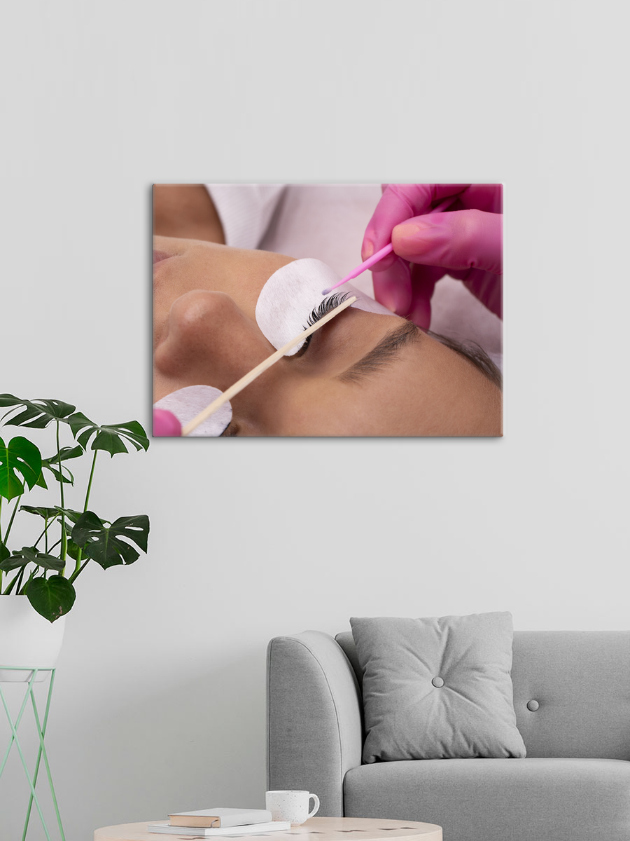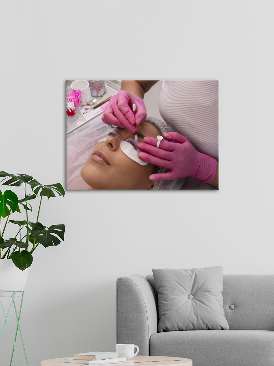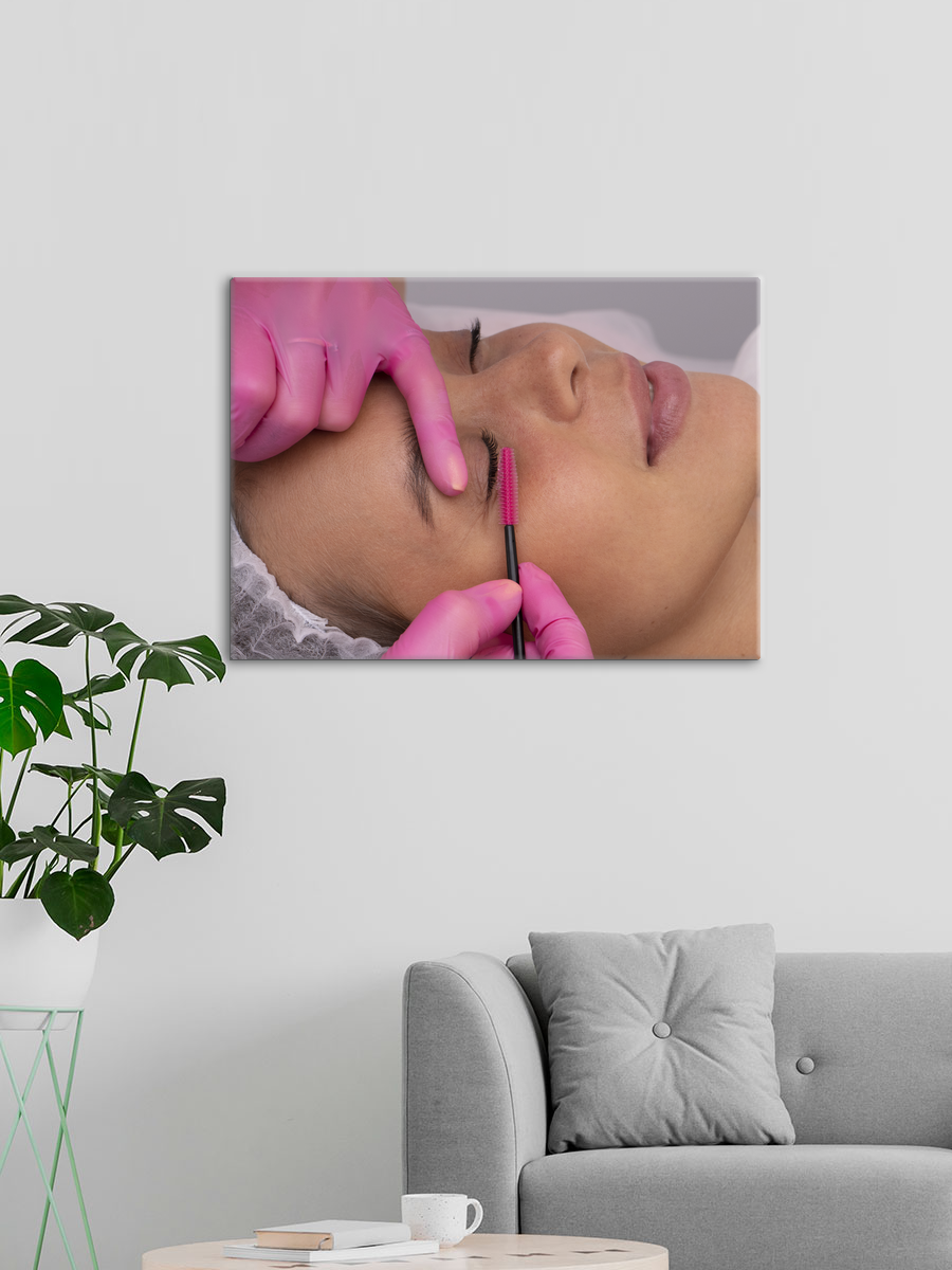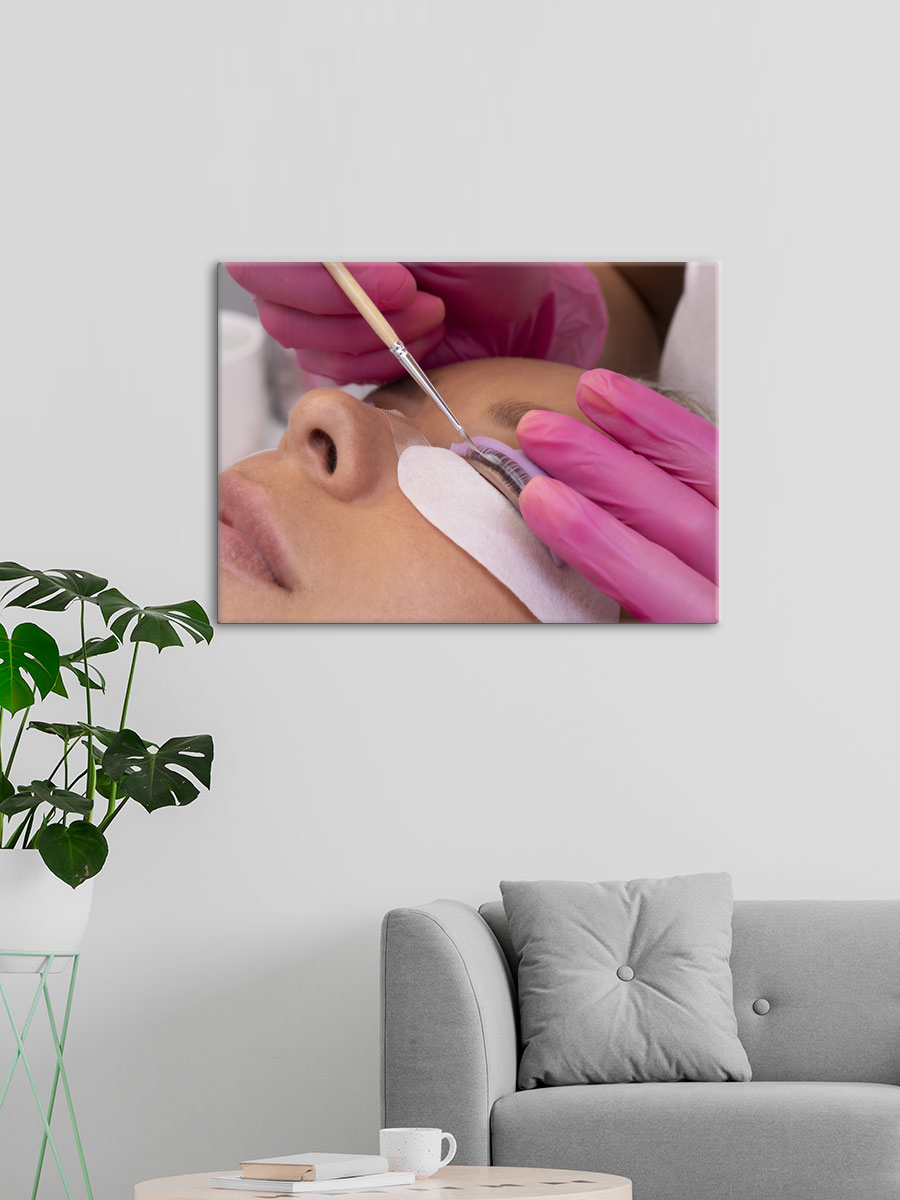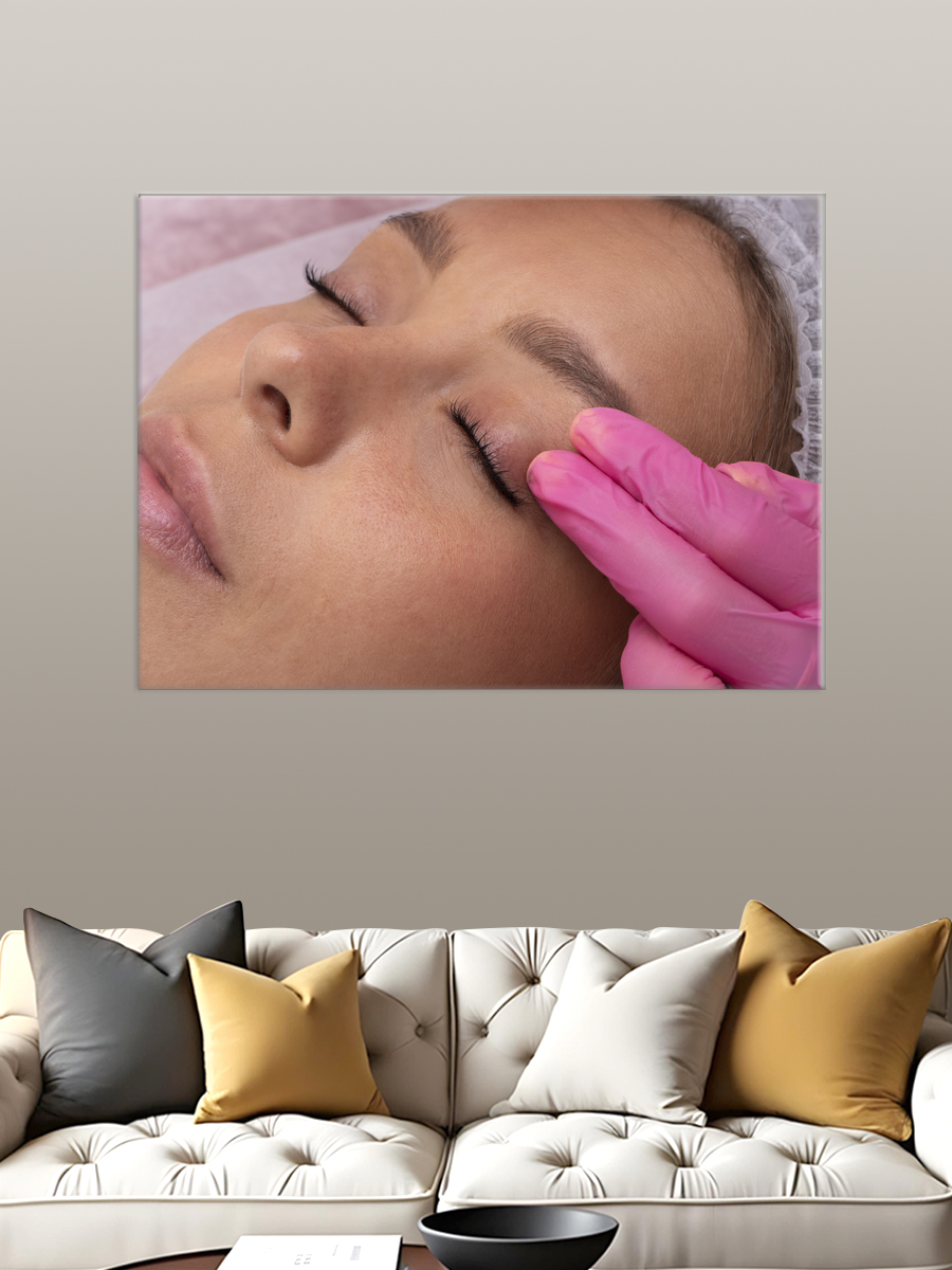 Описание: Картина 50 на 70 "Искусство преображения" – напечатанное на холсте изображение, погружающее зрителя в мир бьюти-процедур. В центре внимания – крупный план лица модели во время процедуры ламинирования ресниц. Это не просто момент ухода, а настоящая медитация красоты, запечатленная через объектив. Уникальность картины в ее контрасте и детализации: ярко-розовые перчатки мастера выступают динамичным акцентом на фоне спокойного серого фона и нежной бежевой кожи. Фиолетовые валики и белые патчи подчеркивают кропотливую работу, направленную на создание совершенного изгиба. Картина вызывает чувство расслабления, доверия и ожидания чуда, которое происходит, пока модель отдыхает с закрытыми глазами. Этот шедевр идеально подойдет для интерьера салона красоты, студии ламинирования ресниц или наращивания, а также для современного домашнего пространства, оформленного в стилях минимализм, лофт или хай-тек, где он станет ярким, мотивирующим и стильным элементом декора. Это отличный способ показать профессионализм и эстетику бьюти-индустрии.