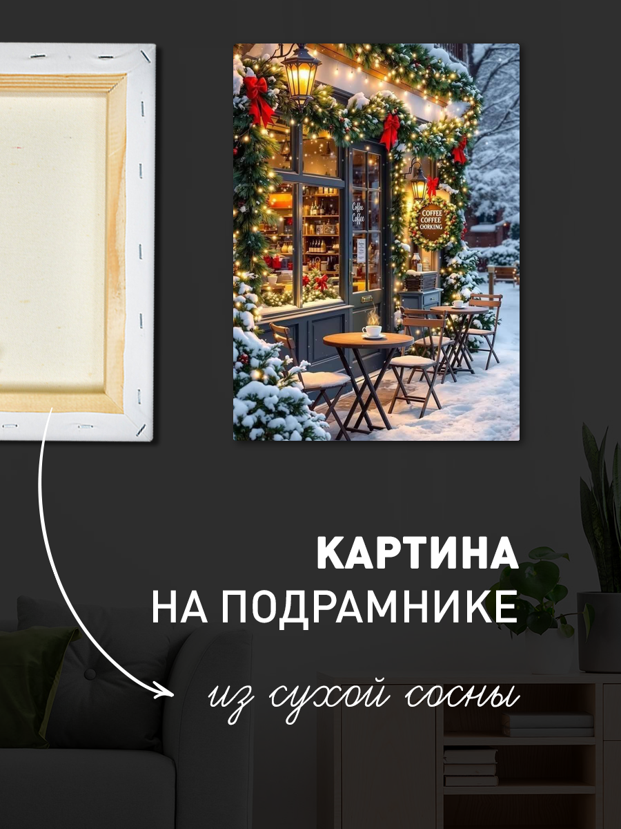 Описание: Картина 50 на 70 "Зимний уют" – напечатанное на холсте изображение, которое изображает уютную кофейню, утопающую в зимней сказке. На переднем плане видны столики, уставленные чашечками горячего напитка, а вокруг них красиво оформленные еловые ветви, украшенные яркими красными лентами и огнями. Эта картина передает атмосферу теплоты и нежности зимне-осеннего вечера, когда хочется собраться с близкими за чашкой ароматного кофе и наслаждаться моментом. В ней чувствуется приглашение к общению и отдыху, создавая ощущение уюта и спокойствия даже в самый холодный день. "Зимний уют" отлично впишется в интерьеры кафе, гостиной или кухни, придавая пространству живость и тепло. Эта картина станет центром внимания в любом оформлении и будет радовать глаз, создавая ощущение домашнего уюта и счастья.