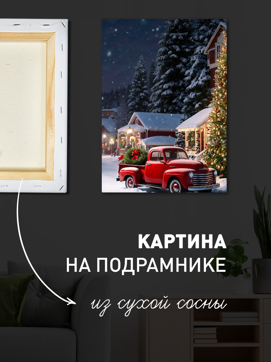 Описание: Картина 50 на 70 "Зимняя сказка" – напечатанное на холсте изображение, которое переносит зрителя в мир зимней идиллии. На ней изображен старинный грузовик ярко-красного цвета, припаркованный на заснеженной улице, окруженный величественными соснами и украшенными рождественскими огнями домами. Эта картина вызывает теплые воспоминания о праздниках, семейных встречах и уютных зимних вечерах. Белоснежный фон, контрастирующий с яркими цветами грузовика и новогодних украшений, создает атмосферу радости и волшебства, напоминая о том, как важно быть со своими близкими. "Зимняя сказка" прекрасно впишется в любой интерьер, добавив нотку уюта и праздничного настроения. Она станет отличным дополнением к гостиной или кабинету, а также отлично подойдет для оформления пространств, связанных с зимой и праздниками. Картину можно повесить на стену рядом с рождественской елкой или камином, чтобы создать настоящую атмосферу теплоты и радости в зимний период.