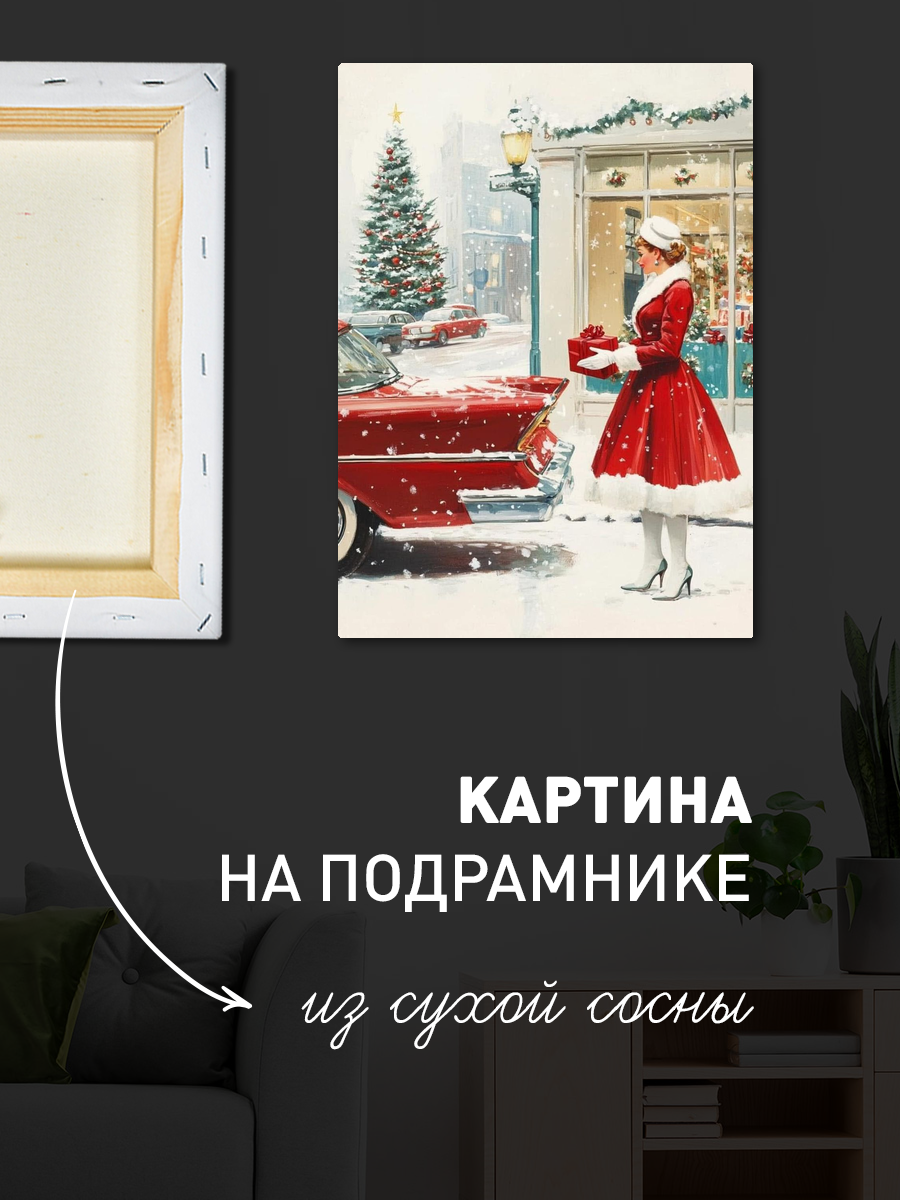 Описание: Картина 50 на 70 "Зимняя сказка" – это напечатанное на холсте изображение, которое переносит зрителя в волшебный мир зимнего праздника. На ней изображена женщина в роскошном красном платье с белым мехом, держащая красную коробку с подарком, на фоне снежного городского пейзажа с рождественской елкой. Эта картина вызывает теплые и радостные чувства, ассоциирующиеся с уютом зимних праздников, любовью и подарками. Нежный снег, который падает из облаков, придает картине атмосферу волшебства, а яркие цвета создают настроение счастья и радости. "Зимняя сказка" идеально подойдет для вашего домашнего интерьера, ведь она станет замечательным акцентом в любой комнате, будь то гостиная, спальня или коридор. Ее можно повесить над камином или на стене, где она будет радовать вас и ваших гостей каждый день, напоминая о том, что даже в зимнюю пору может царить тепло и радость.