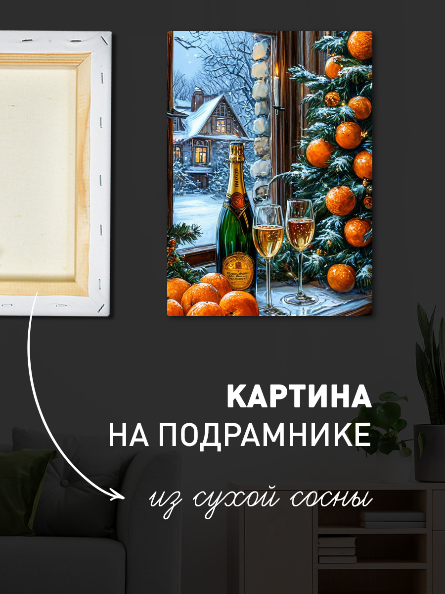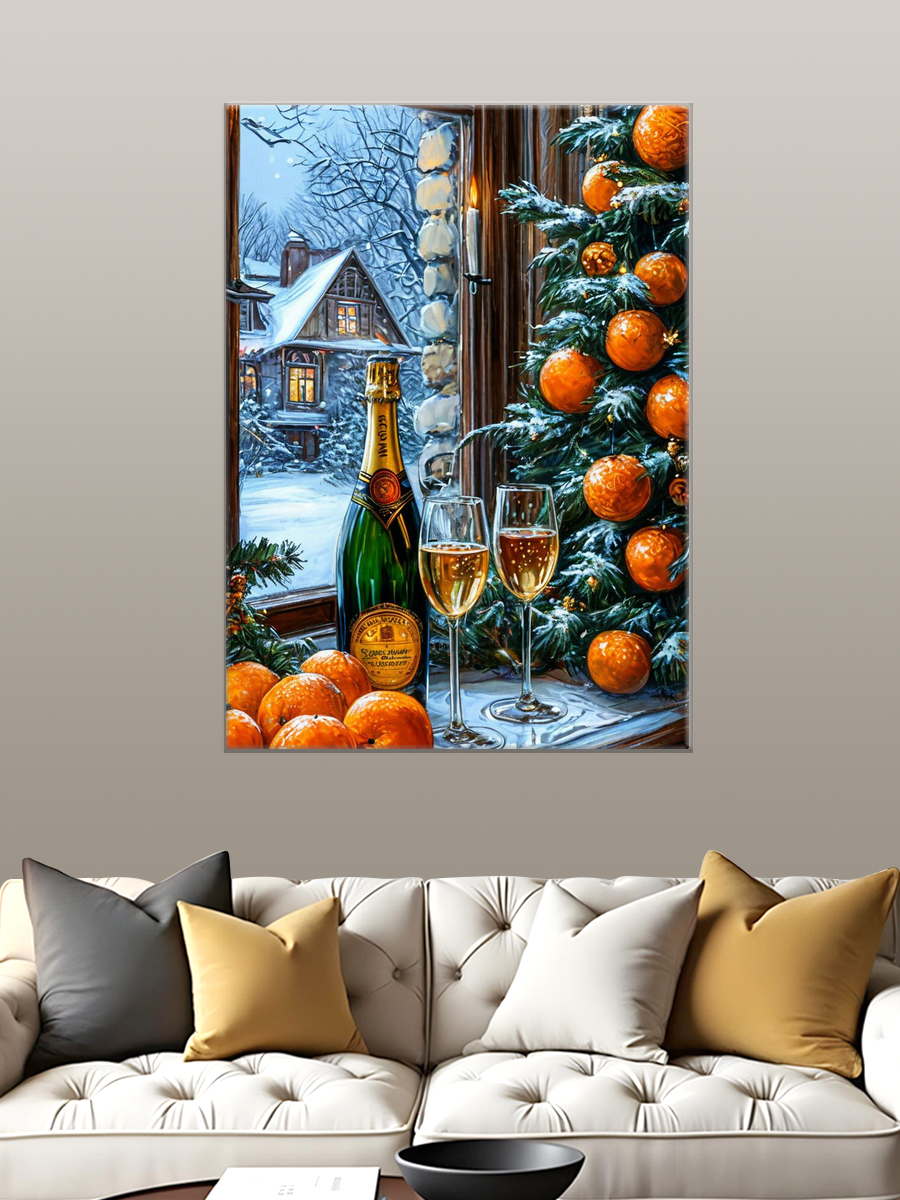 Описание: Картина 50 на 70 "Новогодний вечер" – напечатанное на холсте изображение, которое погружает зрителя в атмосферу праздника и уюта. На ней изображен зимний пейзаж, который можно наблюдать из окна: снежный вечер, украшенная елка с оранжевыми шарами и блестящая бутылка шампанского на подоконнике, рядом с бокалами, полными искрящегося напитка. Эта картина вызывает теплые чувства радости, ожидания и семейного тепла. Яркие оранжевые шары контрастируют со снежной белизной, создавая праздничное настроение и напоминая о важности дружбы, любви и хороших моментов, проведенных с близкими. Картина идеально подойдет для украшения гостиной или столовой, где она станет центральным элементом любой новогодней декорации. Она также может быть использована в офисе, чтобы создать атмосферу легкости и радости в рабочем пространстве, или в любом месте, где хочется добавить нотки праздника и уютного домашнего тепла.