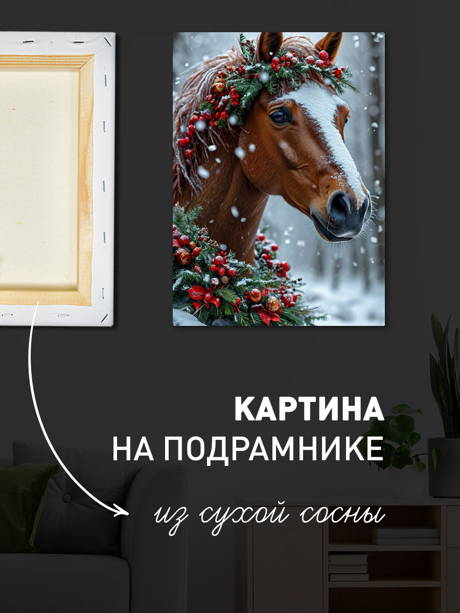 Описание: Картина 50 на 70 "Зимняя гармония" – напечатанное на холсте изображение, которое передает атмосферу зимнего праздника и тепла. На картине изображена красивая лошадь, украшенная венком из зелени и ярких ягод, стоящая на фоне снежного леса, где падает снег. Эмоции, выражаемые лошадью, передают спокойствие и благородство. Эта картина вызывает радость и умиротворение, напоминая о чудесах зимы. Зритель чувствует себя вовлеченным в магию момента, создавая атмосферу уюта и праздника. Яркие цвета венка, контрастирующие с белоснежным фоном, делают картину особенно выразительной. "Зимняя гармония" отлично подойдет для декора интерьеров в любом стиле – от классического до современного. Ее можно разместить в гостиной, кабинете или даже в детской комнате, чтобы каждый день напоминать о красоте природы и радостных мгновениях зимы.
