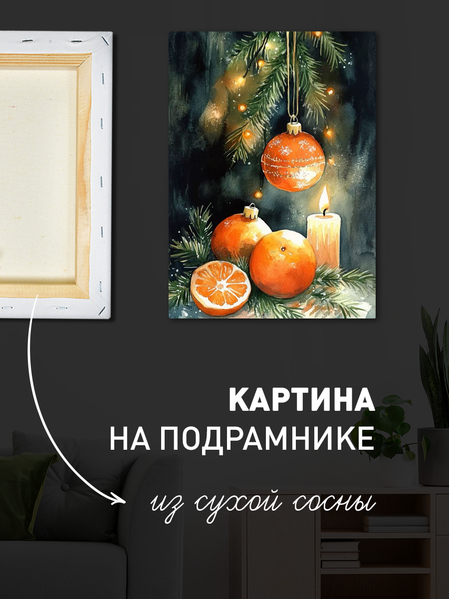 Описание: Картина 50 на 70 "Зимняя сказка" – напечатанное на холсте изображение, запечатлевающее красоту зимних праздников. На картине изображены яркие мандарины, рождественские игрушки и свеча, создающие атмосферу теплоты и уюта. | В этой композиции сочетаются натуральные элементы, такие как еловые ветви, с яркостью оранжевых фруктов и теплым светом свечи. Эта картина вызывает чувство радости, спокойствия и ностальгии, погружая зрителя в приятные воспоминания о зимнем празднике. Каждый элемент, от мандарины до мерцающих огоньков, создает неповторимую атмосферу волшебства, которая будет идеальным дополнением к вашему интерьеру. "Зимняя сказка" идеально впишется в рождественское убранство, дополнив атмосферу праздника, или станет ярким акцентом в уютной комнате. Картина прекрасно подходит для размещения в гостиной, кухне или даже спальне, где она сможет каждый день напоминать о волшебных моментах зимы.
