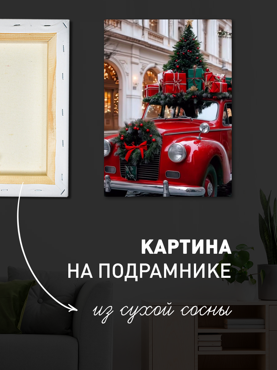 Описание: Картина 50 на 70 "Рождественское настроение" – уникальное напечатанное на холсте изображение, которое перенесет вас в атмосферу предвкушения праздников. На картине изображен старинный автомобиль, украшенный зелеными еловыми ветками и ярко-красными подарками, расположенными на крыше. В центре внимания стоит великолепная рождественская елка, приподнятая на верхушке авто, которая с гордостью демонстрирует сверкающую звезду и красный шар, символизирующий радость и праздник. Эта картина наполнена светом и счастливыми эмоциями, вызывая теплые воспоминания о семейных праздниках и встречах с близкими. Яркие цвета, такие как красный и зеленый, создают настроение уюта и радости, а детали, такие как подарки и еловые украшения, вызывают чувство ностальгии и счастья. "Рождественское настроение" идеально дополнит ваш интерьер в зимний период, будет прекрасно смотреться на стенах гостиной, столовой или коридора, наполняя пространство атмосферой тепла и уюта в эти волшебные праздники. Это произведение искусства станет не только чудесным украшением, но и отличным центром внимания для гостей, вызывая радостные эмоции и подчеркивая дух Рождества.