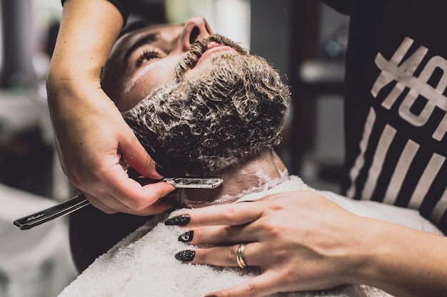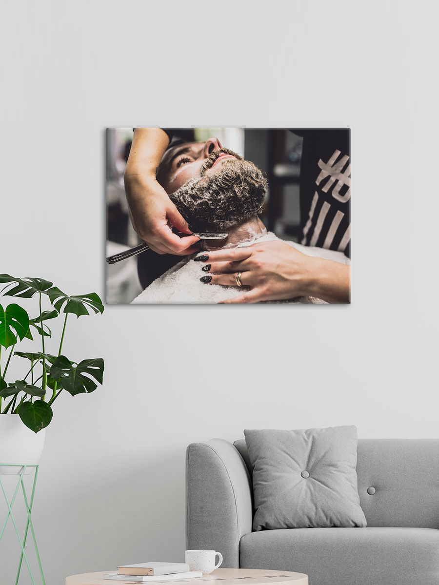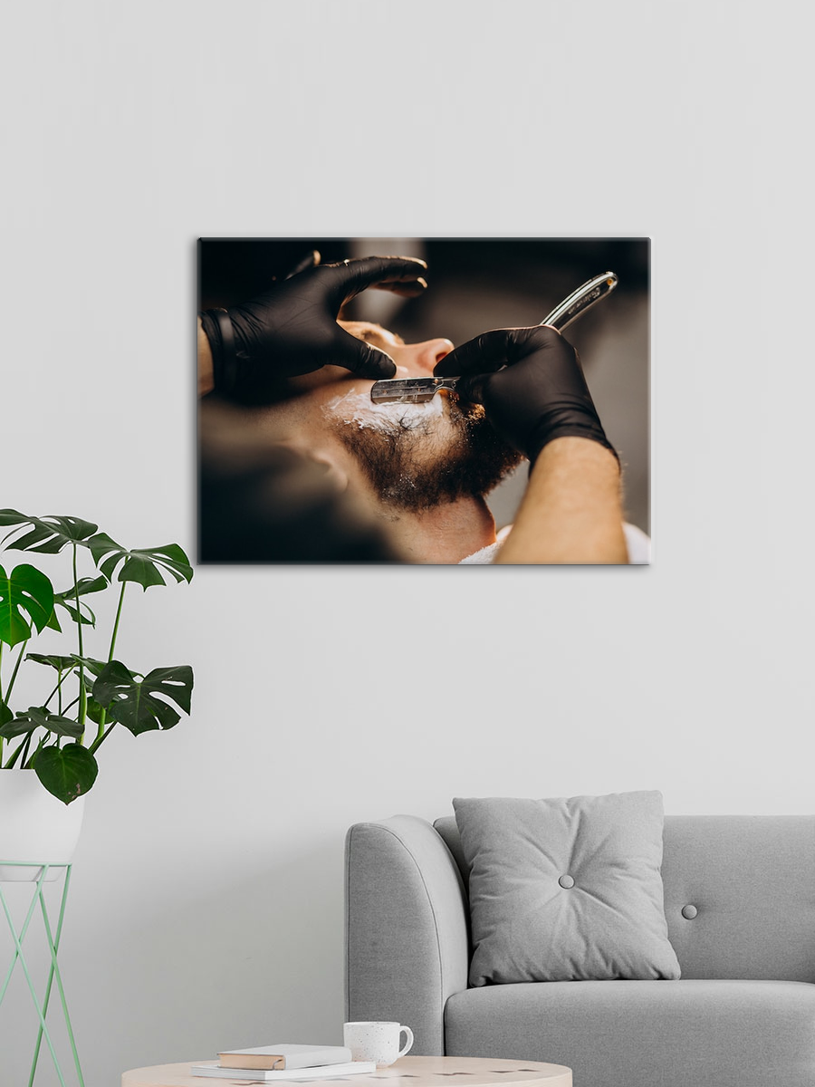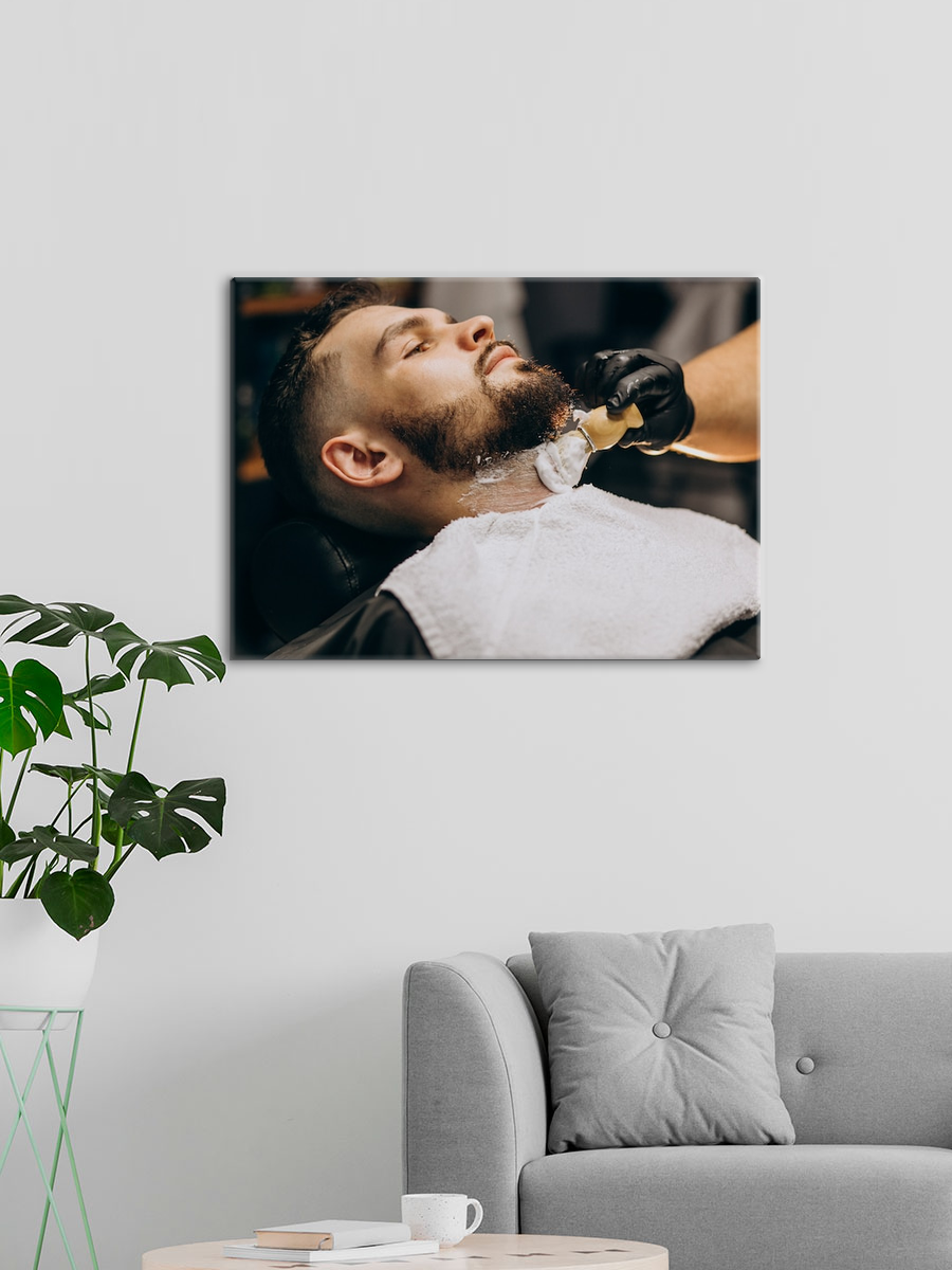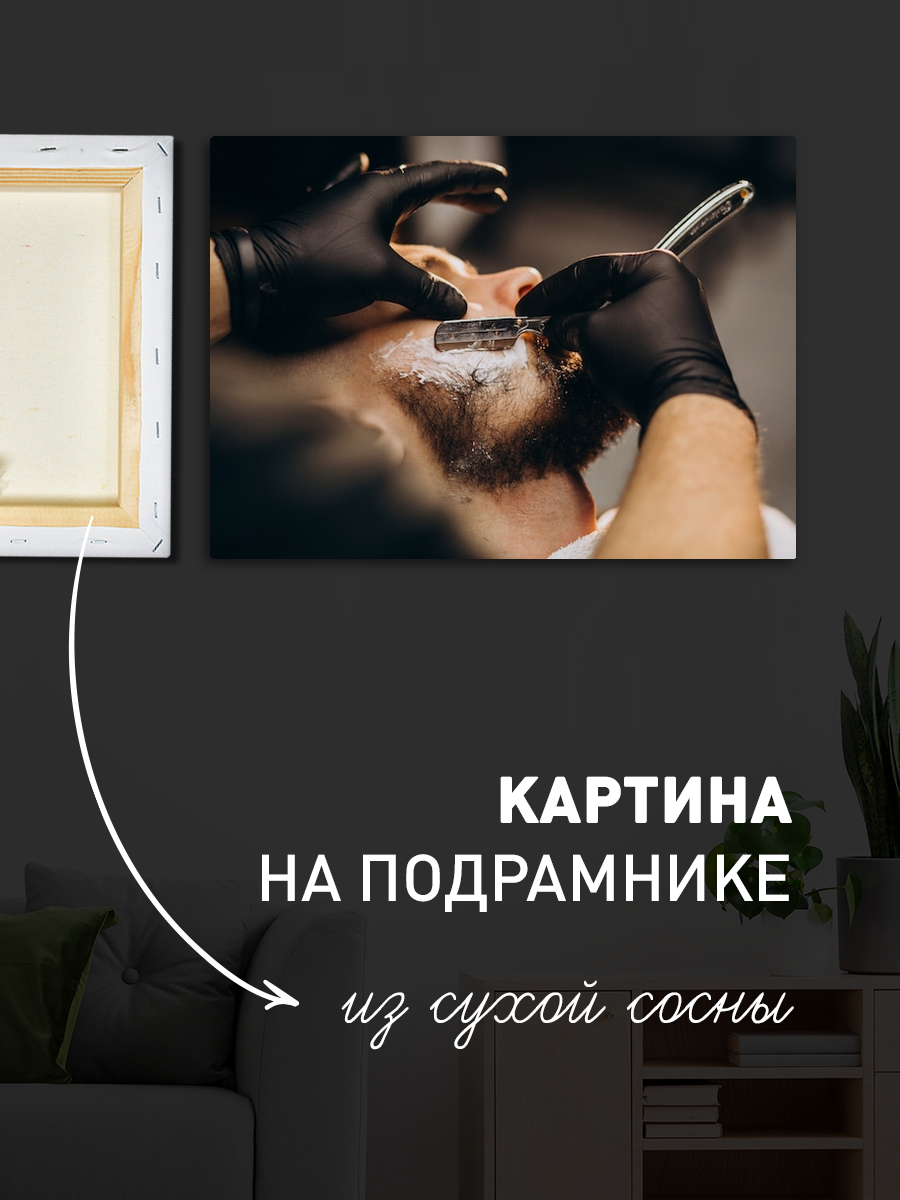 Описание: Картина 50 на 70 'Уход за бородой' представляет собой захватывающее изображение процесса бритья, запечатленного в моменте полного расслабления и мужской заботы о себе. На холсте изображен молодой мужчина, который с доверчивым выражением лица наслаждается процедурой подстрижки бороды. Мастера, облаченного в черные перчатки, аккуратно наносят крем, что символизирует внимание и профессионализм. Эта картина уникальна своей способностью передать атмосферу уюта и спокойствия, а также подчеркнуть важность ухода за собой в современном мире. Эмоции, которые вызывает данное произведение, — это чувство расслабления и заботы о себе. Она напоминает о том, что каждый из нас заслуживает времени для себя и своего внешнего вида. Взгляд на эту картину способен вызывать тепло и умиротворение, создавая приятное настроение в любом интерьере. Картина прекрасно впишется в интерьер современного кабинета, мужской спальни или барбершопа, добавляя нотку стиля и элегантности. Она станет отличным акцентом на стене, создавая атмосферу комфорта и уюта. Также это отличный подарок для мужчин, ценящих стиль и уход за собой. В этом произведении искусства заключена не только эстетика, но и философия заботы о себе, что делает его особенно привлекательным для широкой аудитории.