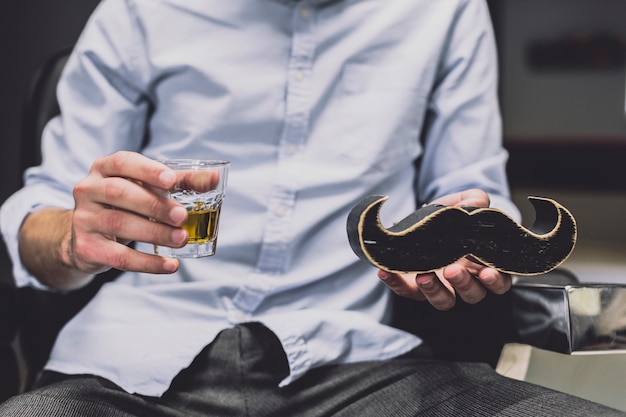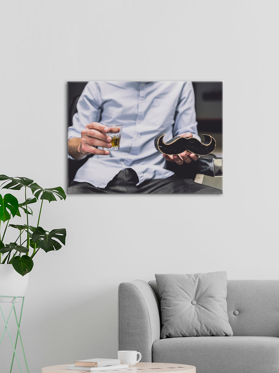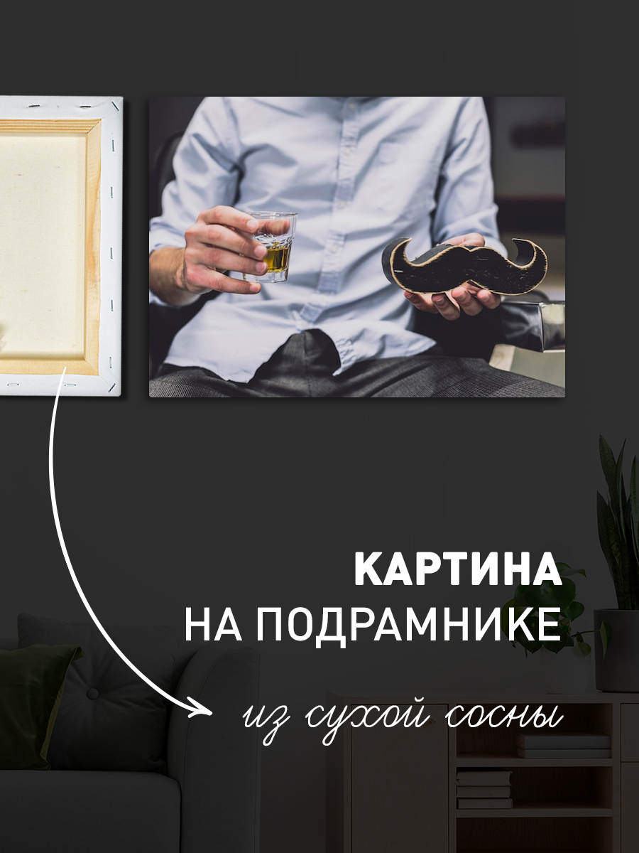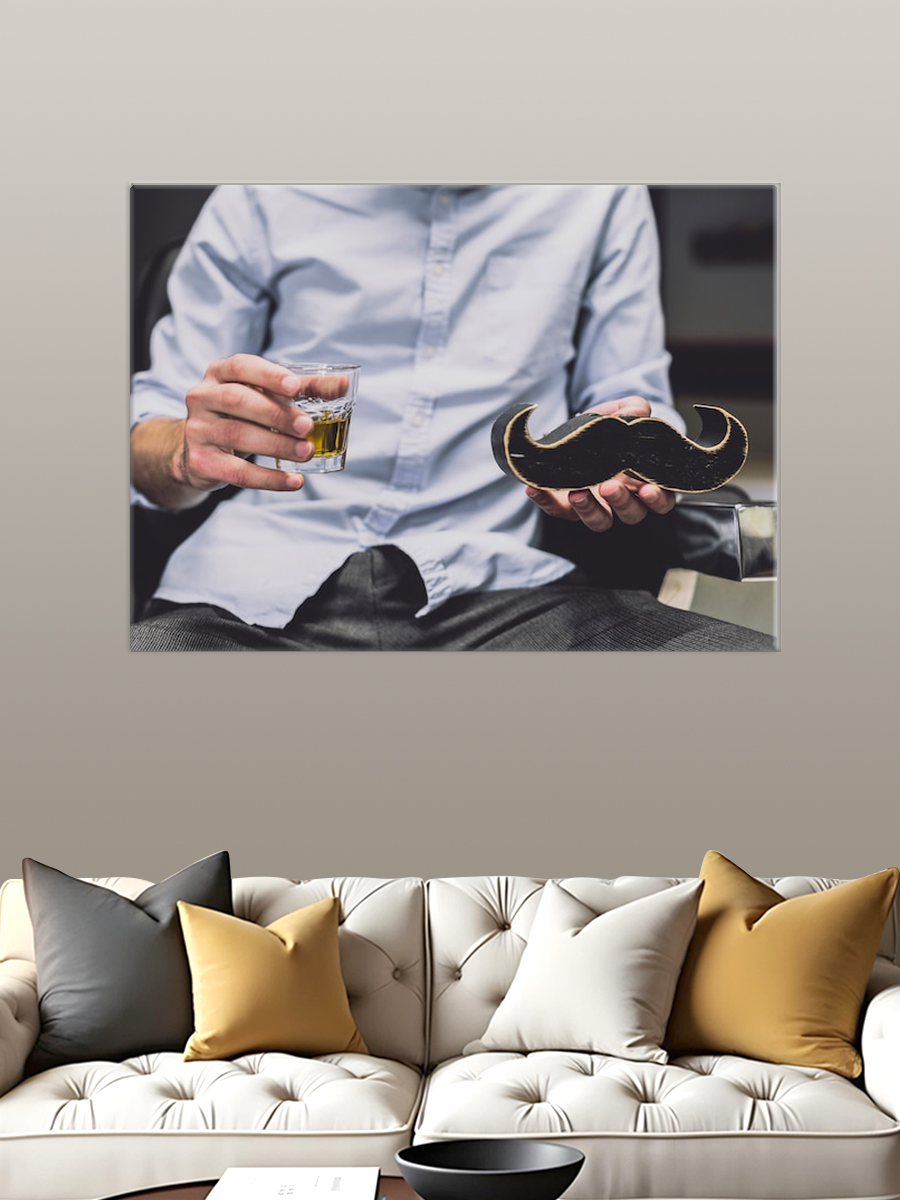 Описание: Картина 50 на 70 "Мужской стиль" изображает элегантного мужчину в светлой рубашке, держащего в одной руке стакан с виски, а в другой – оригинальный элемент декора в виде усов. Основная идея картины заключается в сочетании классического стиля и игривого настроения, что делает её уникальной. Эта работа вызывает чувство уверенности и стиля, приглашая зрителя ощутить атмосферу уюта и расслабленности. Картина прекрасно впишется в интерьер современного кабинета, домашнего бара или стильной гостиной, добавляя нотку мужского шика и оригинальности. Она станет отличным акцентом на стене, привлекая внимание и подчеркивая индивидуальность вашего пространства.