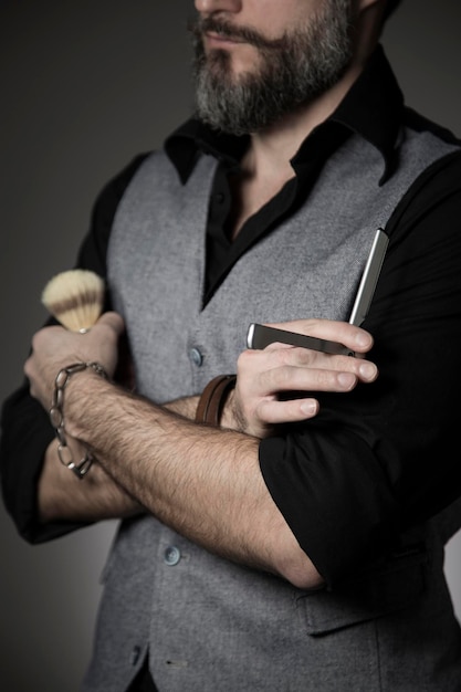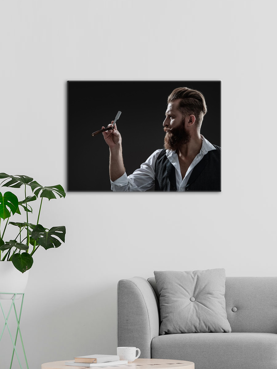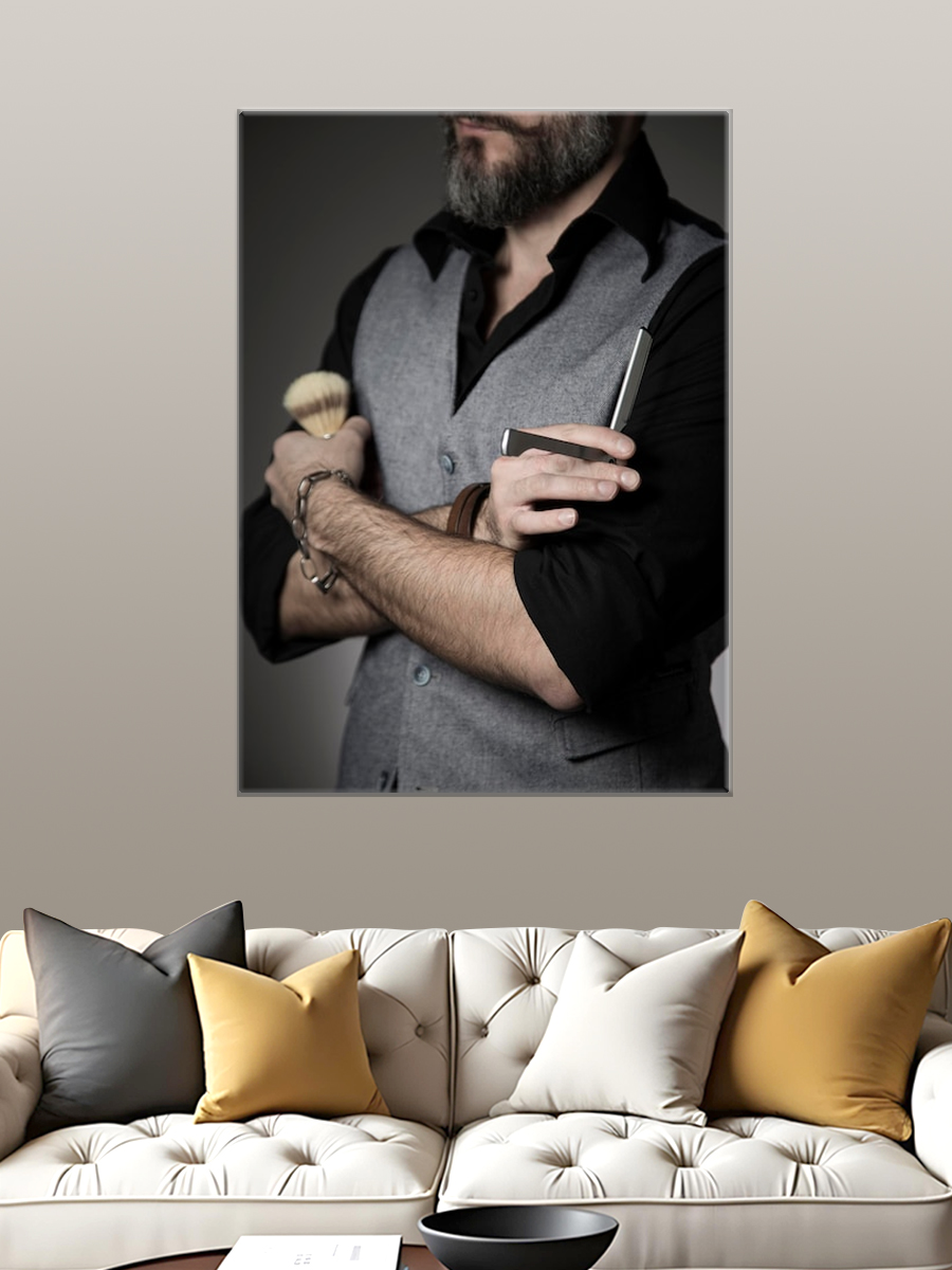 Описание: Картина 50 на 70 "Мужская элегантность" изображает стильного мужчину с ухоженной бородой, держащего в руках барберские инструменты – кисточку и бритву. Эта работа погружает зрителя в атмосферу ухода за собой и мужской красоты, подчеркивая уникальность и элегантность современного мужчины. Основная идея картины заключается в важности заботы о себе и самовыражении через стиль. Эмоции, которые вызывает данное произведение, — это уверенность, спокойствие и чувство стиля. Каждый раз, глядя на эту картину, можно ощутить атмосферу уюта и мужского шарма, которая будет вдохновлять и поднимать настроение. Она как будто напоминает о том, что забота о себе — это не только необходимость, но и искусство. Эта картина прекрасно впишется в различные интерьеры: от мужского кабинета или студии до уютного уголка в гостиной или спальне. Она станет отличным акцентом в минималистичном или современном интерьере, подчеркивая индивидуальность владельца. "Мужская элегантность" — идеальный выбор для тех, кто ценит стиль и хочет добавить в своё пространство нотки утончённости и силы.