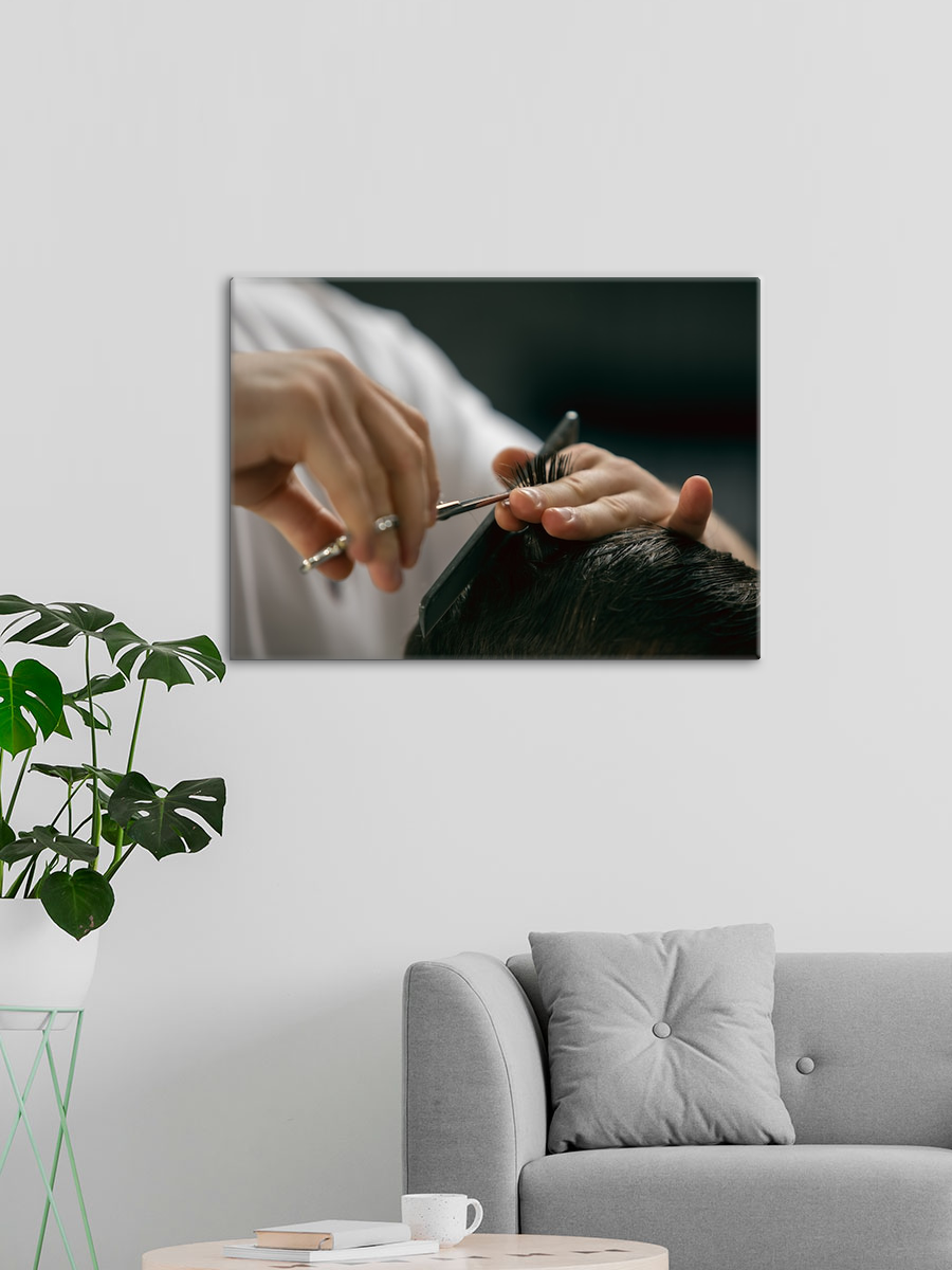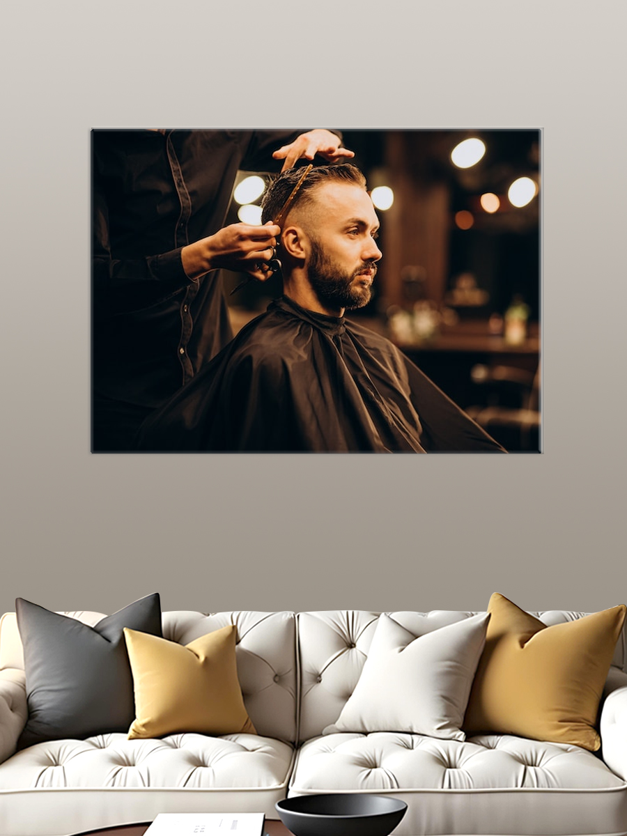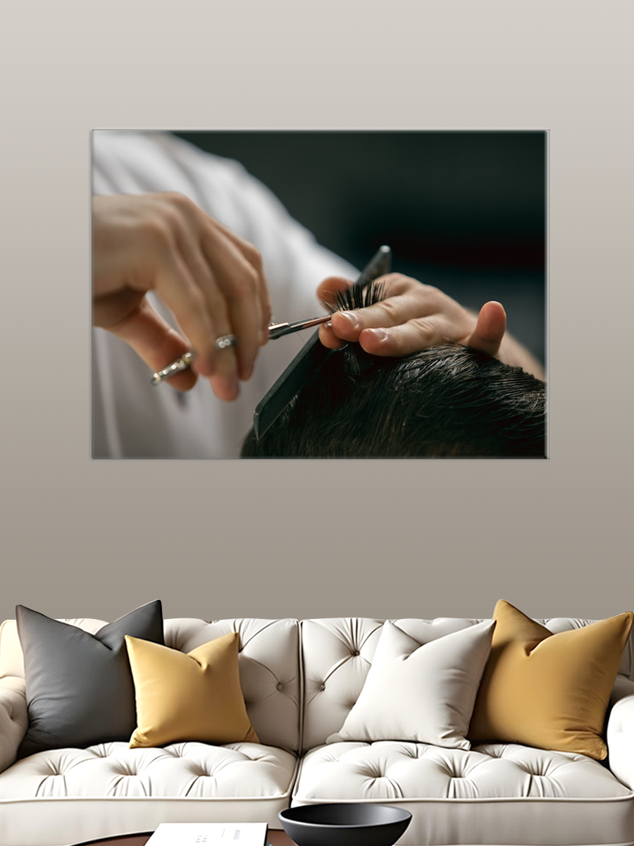 Описание: Картина 50 на 70 'Стрижка' представляет собой захватывающий момент из жизни, запечатленный на холсте. На изображении мы видим мастера, который с вниманием и мастерством стрижет волосы клиенту. Эта работа передает атмосферу уюта и доверия, царящую в парикмахерской, благодаря вниманию к деталям и динамике процесса. Основная идея картины заключается в том, чтобы показать, как важен процесс заботы о себе, и как мастерство парикмахера преобразует не только внешний вид, но и внутреннее состояние человека. Картина вызывает чувства спокойствия и уверенности, заставляя зрителя задуматься о значении личной заботы и превращения. Эта картина станет отличным дополнением к любому интерьеру, особенно в таких пространствах, как парикмахерские, салоны красоты или даже современные гостиные, где она сможет добавить изысканности и стиля. Ее можно повесить на стену рядом с зеркалом или в зоне отдыха, где она будет напоминать о важности самопрезентации и заботы о себе. 'Стрижка' — это не просто картина, это эмоция, которая будет вдохновлять и радовать каждый день.