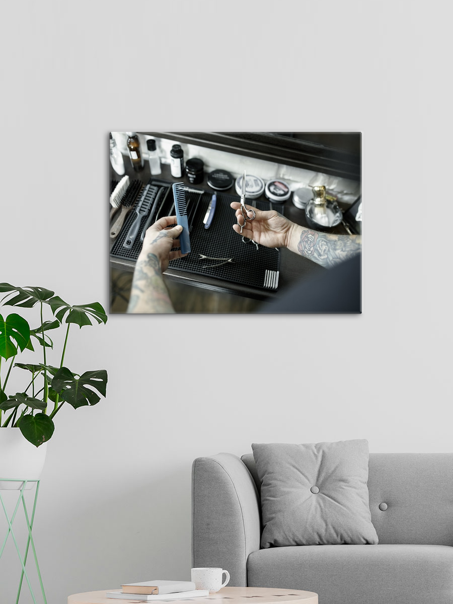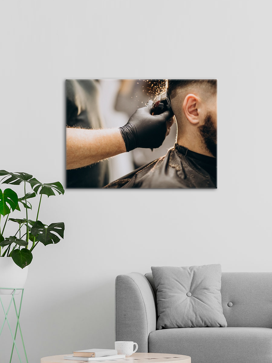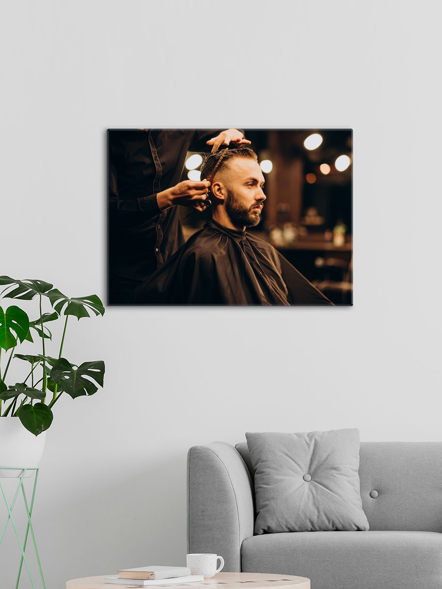 Описание: Картина 50 на 70 'Стрижка' представляет собой захватывающий момент из жизни, запечатленный на холсте. На изображении мы видим мастера, который с вниманием и мастерством стрижет волосы клиенту. Эта работа передает атмосферу уюта и доверия, царящую в парикмахерской, благодаря вниманию к деталям и динамике процесса. Основная идея картины заключается в том, чтобы показать, как важен процесс заботы о себе, и как мастерство парикмахера преобразует не только внешний вид, но и внутреннее состояние человека. Картина вызывает чувства спокойствия и уверенности, заставляя зрителя задуматься о значении личной заботы и превращения. Эта картина станет отличным дополнением к любому интерьеру, особенно в таких пространствах, как парикмахерские, салоны красоты или даже современные гостиные, где она сможет добавить изысканности и стиля. Ее можно повесить на стену рядом с зеркалом или в зоне отдыха, где она будет напоминать о важности самопрезентации и заботы о себе. 'Стрижка' — это не просто картина, это эмоция, которая будет вдохновлять и радовать каждый день.