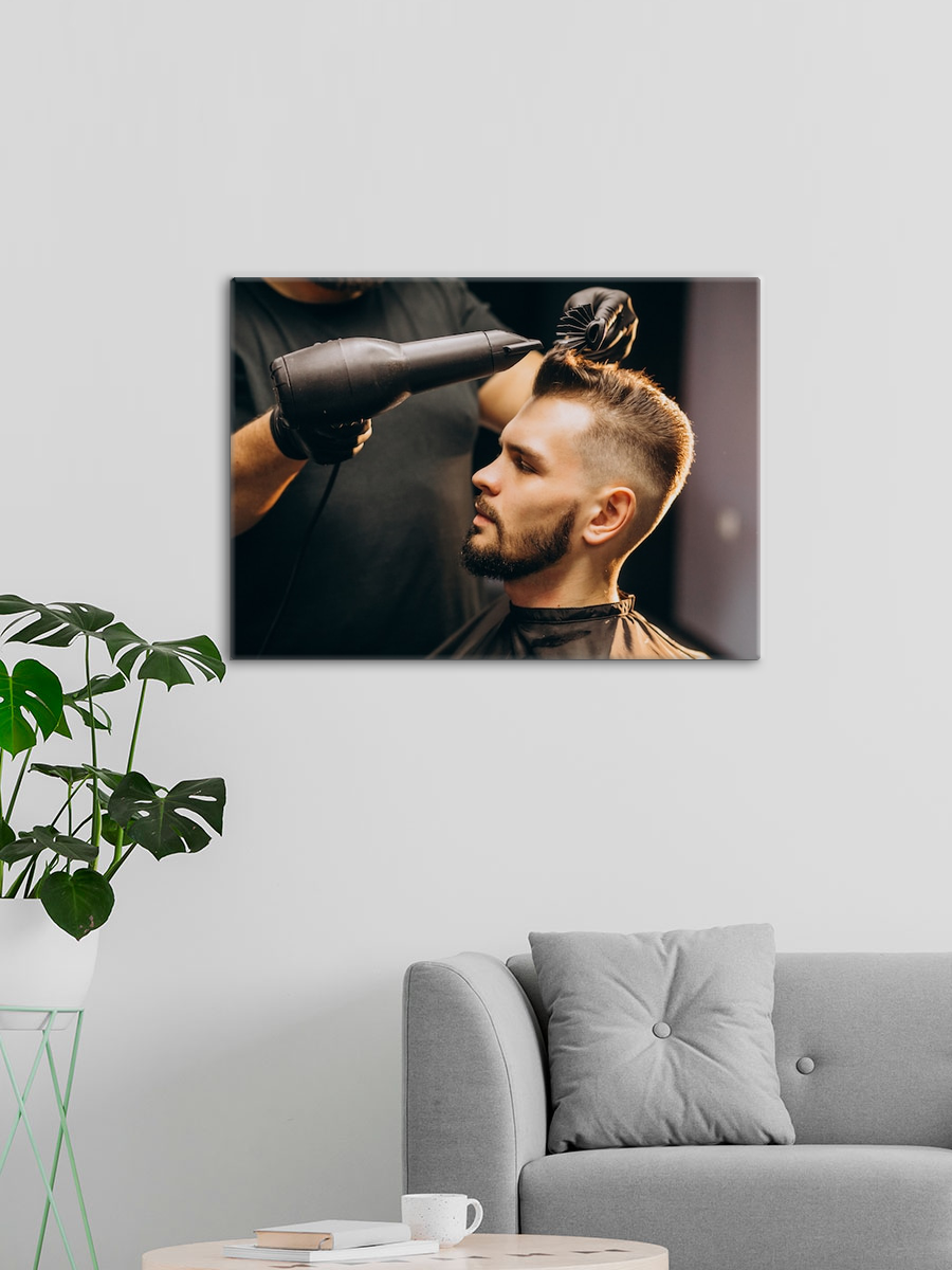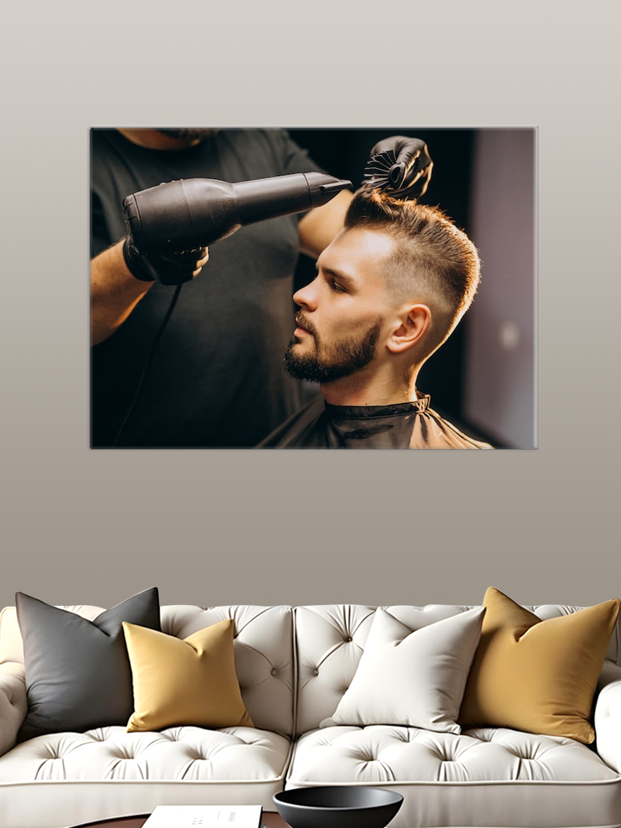 Описание: Картина 50 на 70 "Стрижка в салоне" изображает момент, когда мастер укладывает волосы клиента с помощью фена. Это произведение искусства передает атмосферу современного салона красоты, создавая ощущение уюта и профессионализма. Уникальность картины заключается в детальной проработке текстуры волос и фона, что делает её живой и реалистичной. Картина вызывает чувство спокойствия и уверенности, погружая зрителя в мир ухода за собой и стиля. Она идеально подойдет для интерьера стильного современного дома, салона красоты или парикмахерской, придавая пространству нотки элегантности и современности. Разместив эту картину на стене, вы сможете создать атмосферу, способствующую расслаблению и вдохновению.