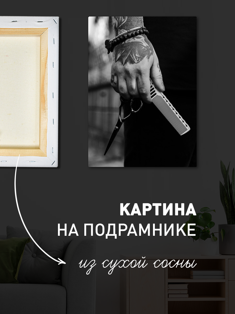 Описание: Картина 50 на 70 "Мастера своего дела". На этом произведении изображен мастер-барбер, который с вниманием и заботой стрижёт клиента. Основная идея картины – передать атмосферу уюта и профессионализма, которая царит в барбершопе. Уникальность картины заключается в детализированном изображении процесса стрижки, что позволяет зрителю почувствовать себя частью этого момента. Эта картина вызывает чувство спокойствия и уверенности, ведь она олицетворяет мастерство и заботу. Зритель может ощутить, как в воздухе витает аромат стрижки и звуки ножниц, что добавляет реалистичности и погружает в атмосферу барбершопа. Картина прекрасно подойдет для интерьеров, оформленных в стиле лофт, современного минимализма или даже классики. Она станет отличным акцентом в комнате, где вы проводите время с друзьями, или в офисе для создания непринужденной и стильной атмосферы. Повесьте ее на стену в зоне ожидания или около кресел для создания уютного пространства, где каждый сможет насладиться атмосферой стрижки и стиля.