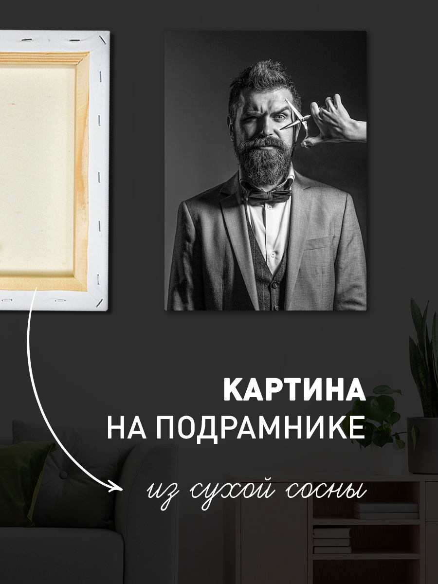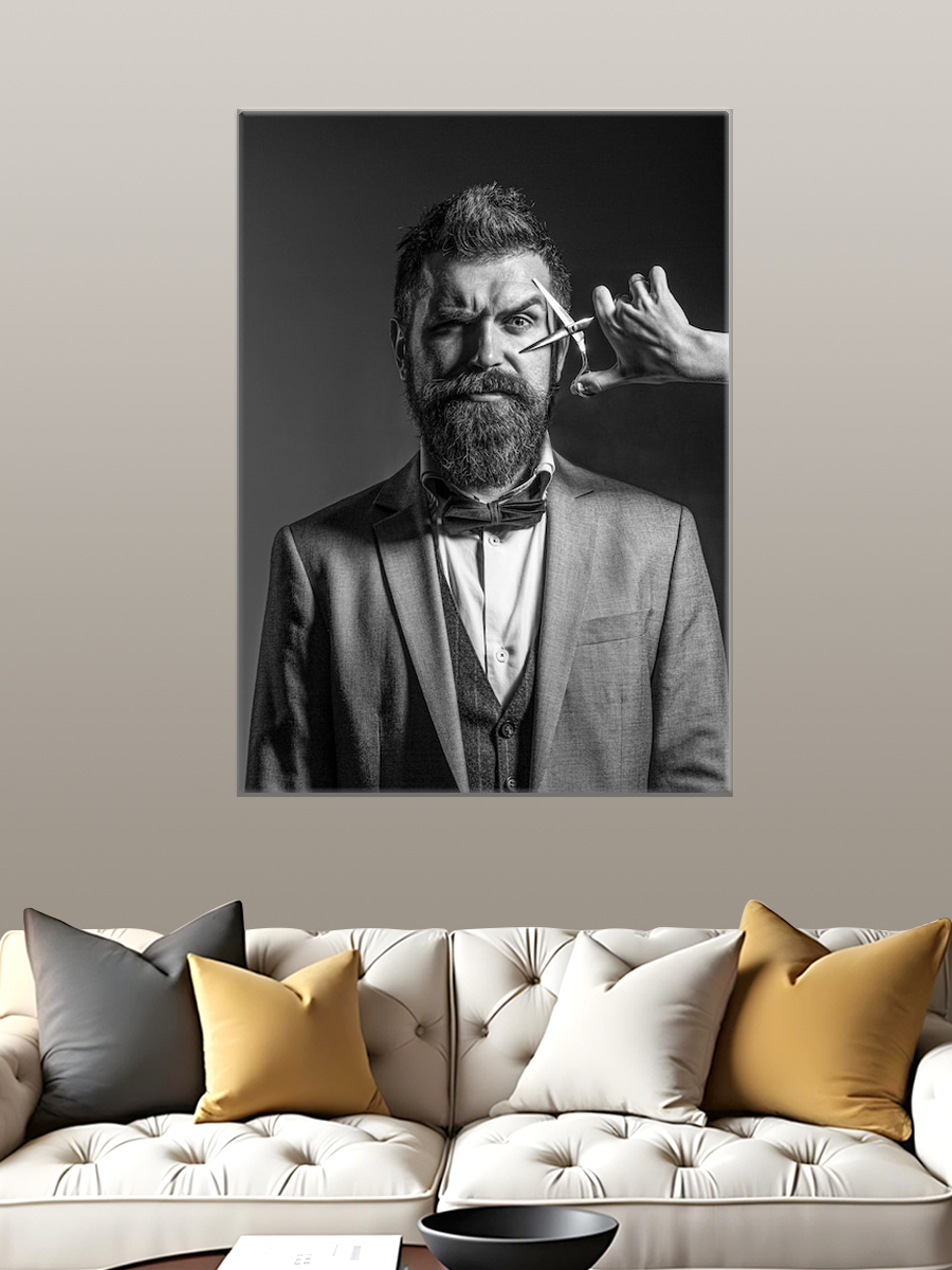 Описание: Картина 50 на 70 "Стрижка с характером" изображает выразительного мужчину с бородой, который стоит с серьезным лицом, в то время как рука с ножницами приближается к его волосам. Это произведение искусства передает уникальную идею о столкновении стиля и эмоций, а также о том, как внешность может отражать внутренний мир человека. Картина вызывает смешанные чувства: от юмора до глубоких размышлений о самовыражении и восприятии себя в обществе. Эта работа станет отличным акцентом в любом интерьере, будь то современный кабинет, барbershop или гостинная, где ценят индивидуальность и креативность. Её черно-белая палитра идеально впишется в минималистичный или индустриальный стиль, придавая пространству стильный и утонченный вид. Картина станет не только украшением, но и темой для обсуждения среди гостей, вызывая улыбки и восхищение. Добавьте "Стрижку с характером" в ваше пространство, чтобы создать атмосферу уверенности и стиля, а также напомнить о важности самовыражения в нашем внешнем виде.