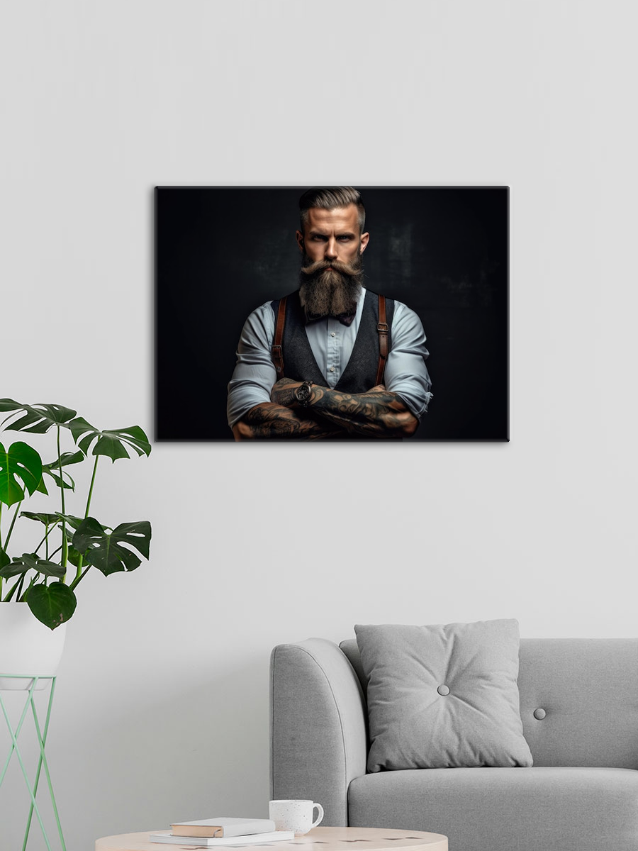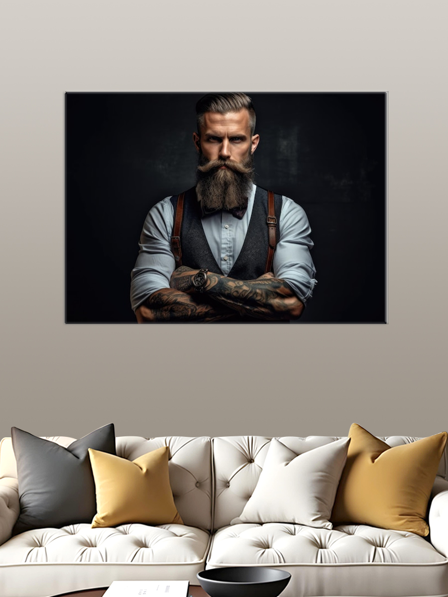 Описание: Картина 50 на 70 "Мужчина с бородой" представляет собой впечатляющий портрет уверенного в себе мужчины с выразительной бородой и татуировками. Он запечатлён на фоне темной текстуры, что подчеркивает его мужественность и индивидуальность. Основная идея картины заключается в передаче силы и харизмы, которые излучает этот человек. Уникальность картины заключается в её способности сочетать элементы традиционного портрета с современным стилем, создавая атмосферу загадки и притяжения. Эта картина вызывает сильные эмоции — восхищение, уважение и даже лёгкую ностальгию о времени, когда мужчины были символами силы. Она может стать отличным акцентом в любом интерьере, добавляя ему характер и стиль. Подходит для офисных пространств, кабинетов, а также для гостиных или личных студий. Представьте, как эта картина будет гармонично смотреться на стене вашего кабинета, вдохновляя вас на новые свершения, или в уютной гостиной, где она станет темой для разговоров с вашими гостями. "Мужчина с бородой" — это не просто картина, это произведение искусства, которое способно изменить атмосферу вашего пространства.