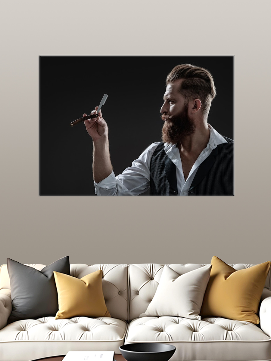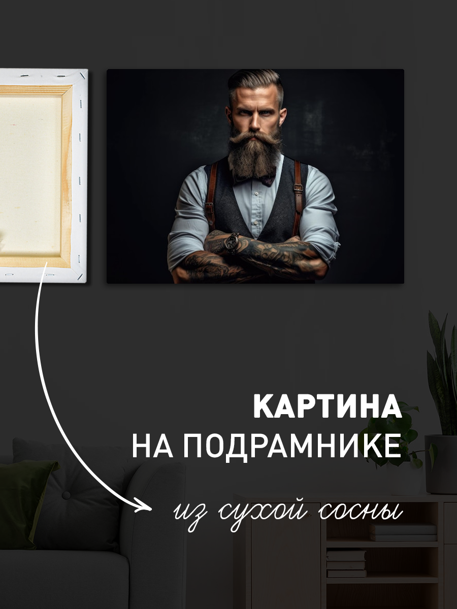 Описание: Картина 50 на 70 "Мастерство барберов" представляет собой захватывающее изображение мужчины с ухоженной бородой и стильной прической, держащего опасную бритву. Эта работа передает уникальную атмосферу мужской эстетики и искусства ухода за собой. Основная идея картины заключается в том, чтобы подчеркнуть важность традиционного мастерства в современном мире, что делает её особенно актуальной для ценителей истинного стиля. Эта картина вызывает эмоции уверенности и стиля, погружая зрителя в мир, где каждый штрих и движение имеют значение. Она вдохновляет на заботу о себе и своем внешнем виде, что делает её отличным дополнением к любому пространству, где ценится индивидуальность и стиль. Подходит для интерьеров в стиле лофт, минимализм или современный. Она отлично впишется в барбершопы, мужские клубы, а также в домашние кабинеты или гостиные, добавляя изысканности и характер. Эта картина станет не только украшением, но и источником вдохновения для всех, кто стремится к самосовершенствованию и гармонии в жизни.