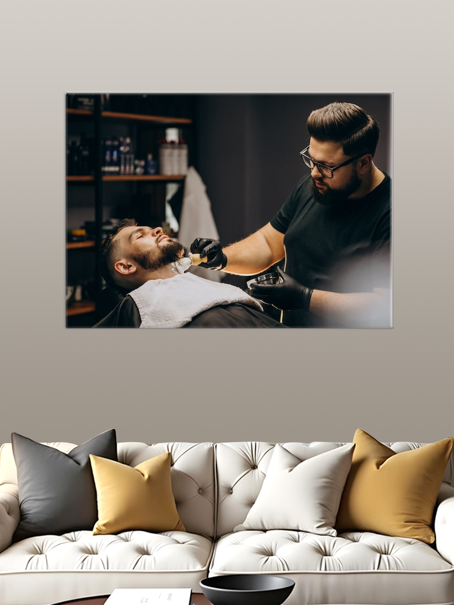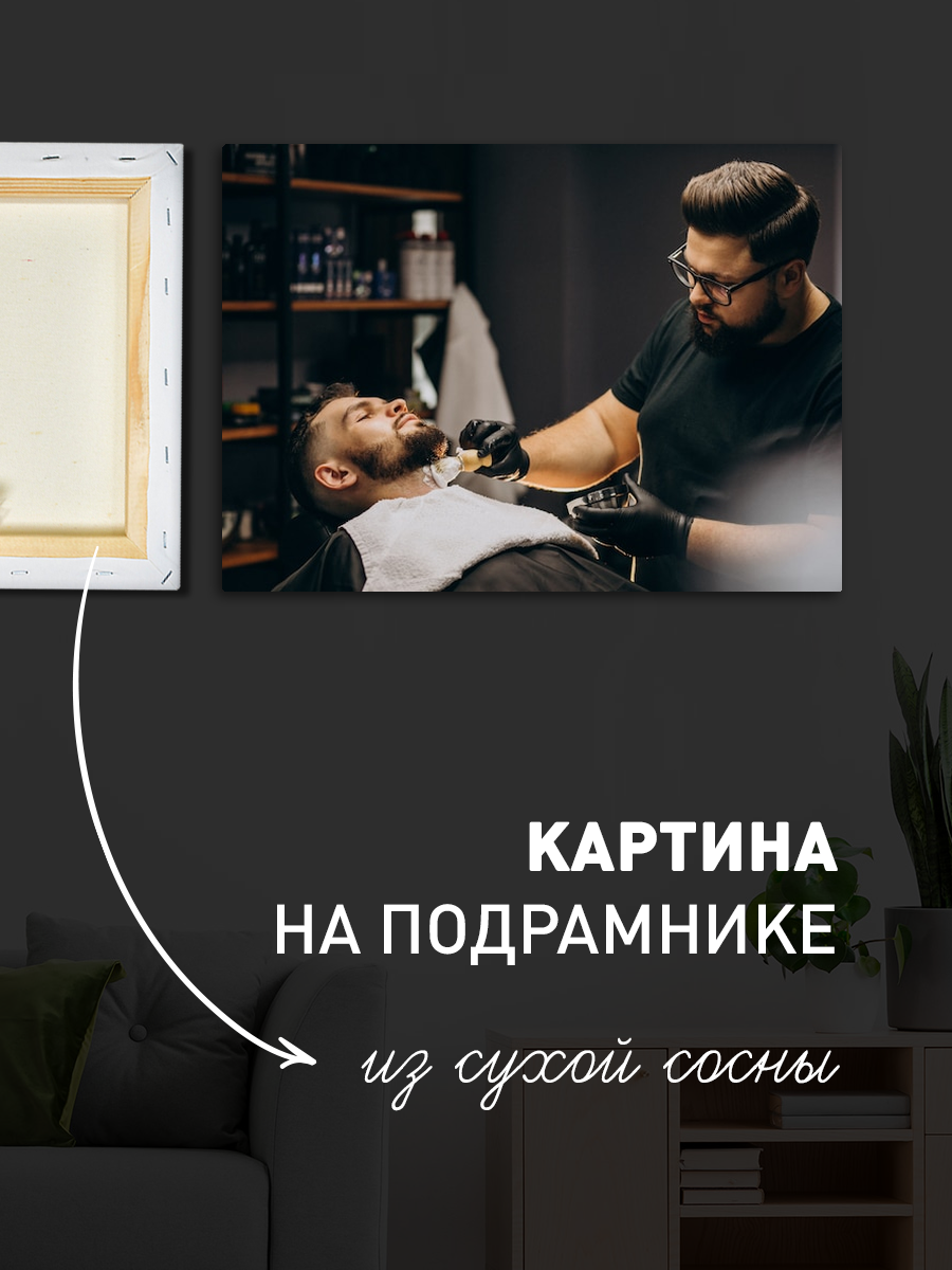 Описание: Картина 50 на 70 "Мастерская барбера". На этом произведении изображен момент стрижки бороды, где мастер с заботой и вниманием работает над образом клиента. Эмоциональная глубина сцены передает атмосферу уюта и доверия, что делает картину уникальной. Она вызывает чувство расслабления и спокойствия, погружая зрителя в мир заботы о себе и личной гигиены. Эта картина станет отличным дополнением для интерьеров, оформленных в современном или индустриальном стиле. Она подойдет для барбершопов, салонов красоты или даже домашних пространств, таких как гостиные или кабинеты, где ценят атмосферу стиля и комфорта. Повесьте её на стену, и она станет центром притяжения для ваших гостей, создавая теплую и дружелюбную атмосферу.