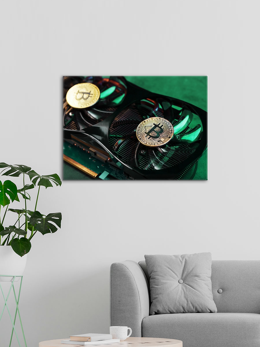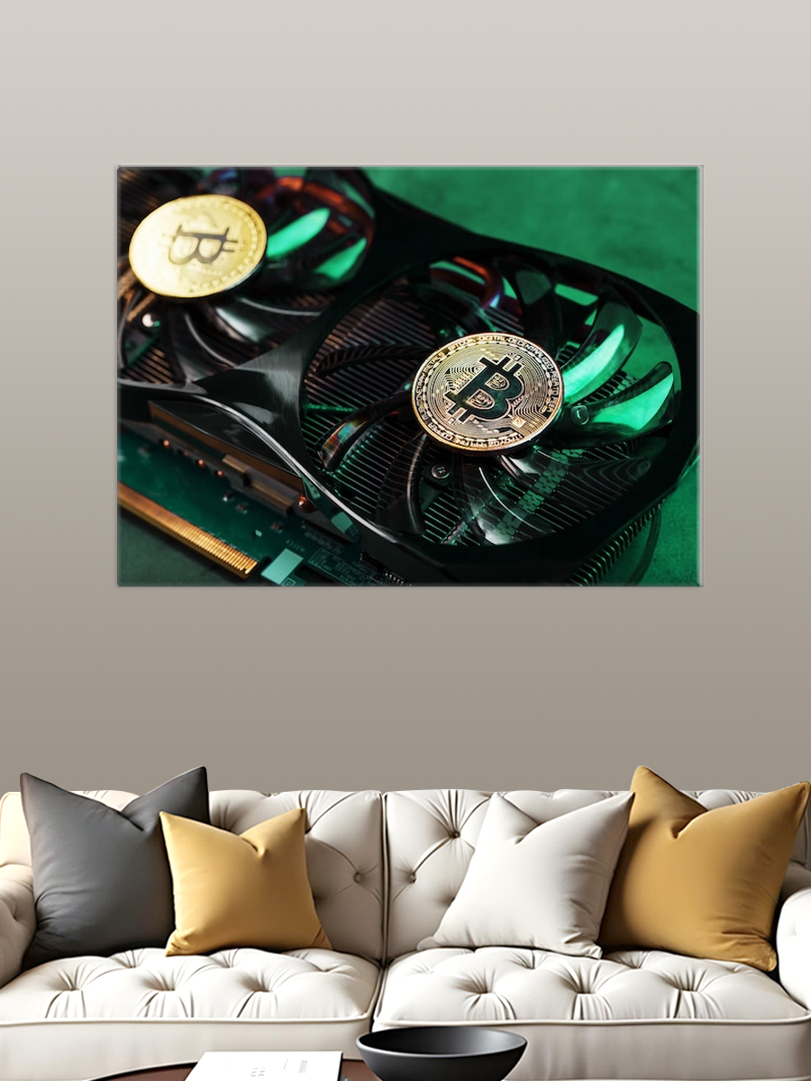 Описание: Картина 50 на 70 "Технология и Природа" изображает уникальное сочетание элементов цифрового мира и природы. На холсте представлены мощные видеокарты с яркими золотыми монетами биткойна, которые символизируют современную эпоху технологий и финансовых инноваций. Основная идея картины заключается в гармонии между искусственным интеллектом и природным миром, что делает её особенно актуальной в наше время. Эта картина вызывает ощущение динамики и прогресса, погружая зрителя в мир высоких технологий и возможностей. Золотые монеты на фоне черных и зеленых элементов создают контраст, который привлекает внимание и вызывает интерес. Каждая деталь картины пронизана энергией, что делает её идеальным акцентом в любом интерьере. "Технология и Природа" отлично подойдет для современных офисов, креативных пространств или домашних кабинетов, где важно вдохновение и новая энергия. Она также станет замечательным подарком для тех, кто интересуется технологиями и криптовалютами. Повесив эту картину на стену, вы добавите в своё пространство нотки современности и стиля, что не только украсит интерьер, но и станет темой для обсуждения среди гостей.