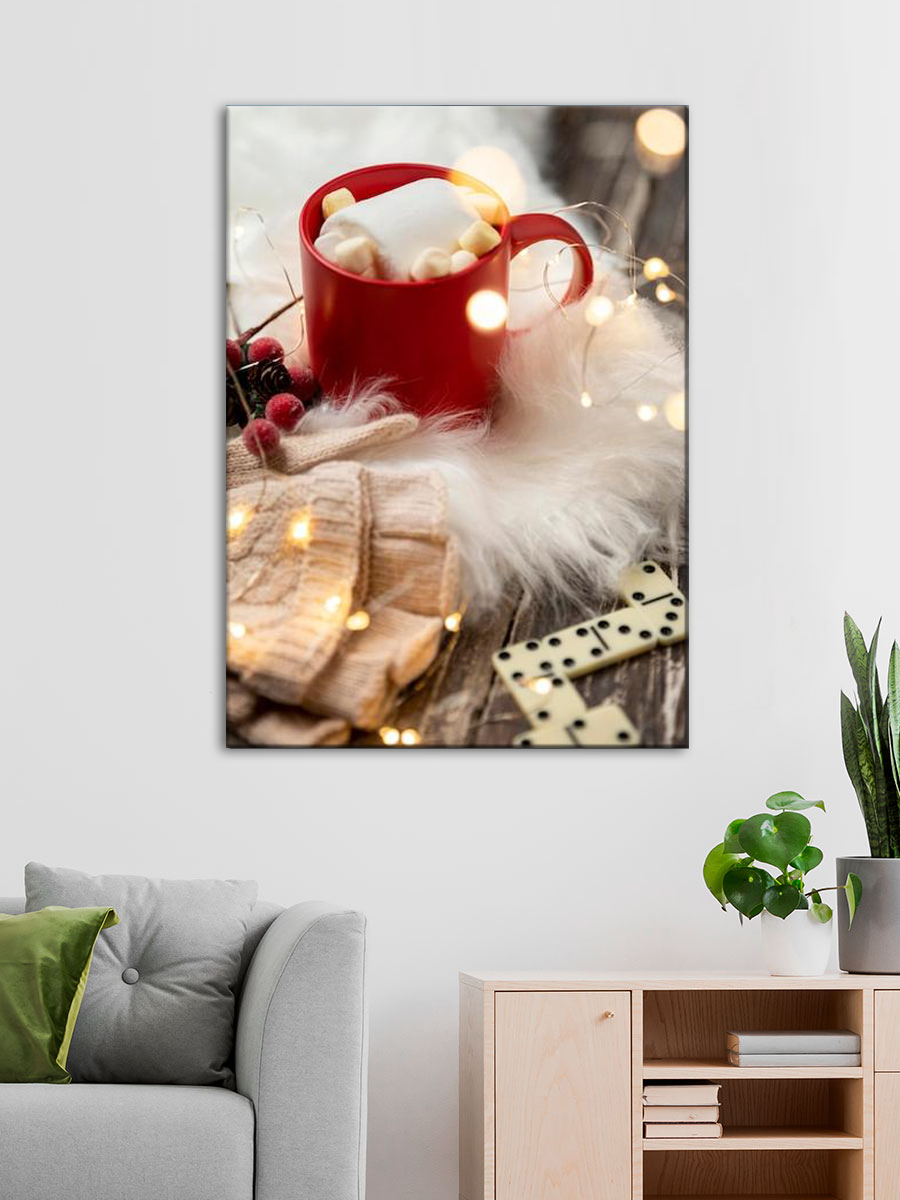 Описание: Картина 50 на 70 "Зимний уют" изображает теплую атмосферу зимнего вечера. На полотне красный кружка с горячим шоколадом, украшенная зефирками, окружена мягкими текстурами и уютными элементами, создающими ощущение домашнего тепла. Мягкие огоньки и натуральные материалы добавляют в композицию нотки уюта и спокойствия. Эта картина вызывает приятные эмоции и воспоминания о зимних вечерах, когда хочется укутаться в плед и насладиться горячим напитком. Она напомнит зрителю о важности остановиться и насладиться моментом, создавая атмосферу расслабления и комфорта. "Зимний уют" отлично впишется в интерьер гостиной, спальни или кухни, добавляя тепло и элегантность в любое пространство. Ее можно повесить в зоне отдыха, где семья собирается для общения, или в кухне, чтобы создать атмосферу уюта во время приготовления пищи. Эта картина станет прекрасным дополнением к вашему дому, напоминая о радостных моментах зимнего времени.