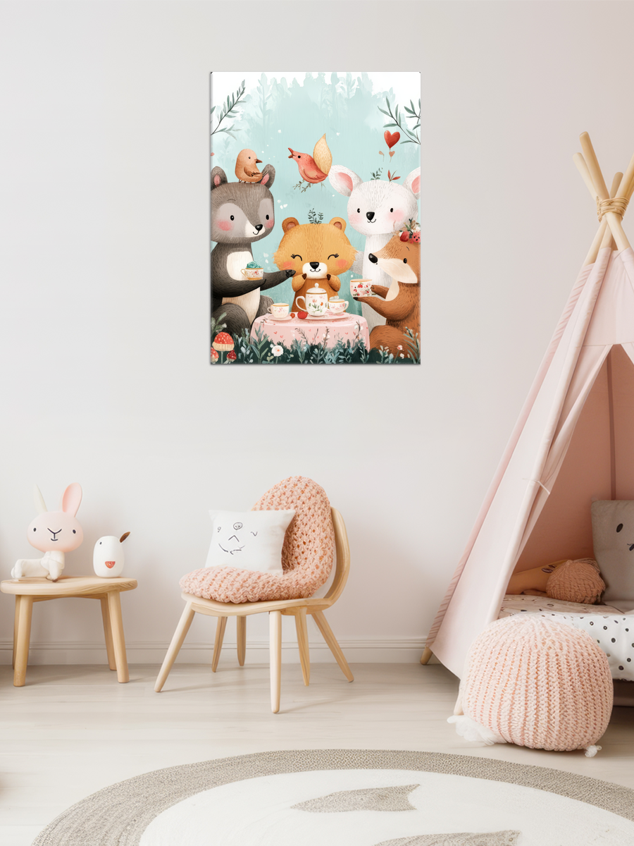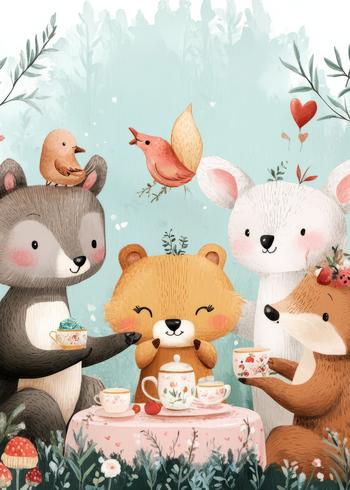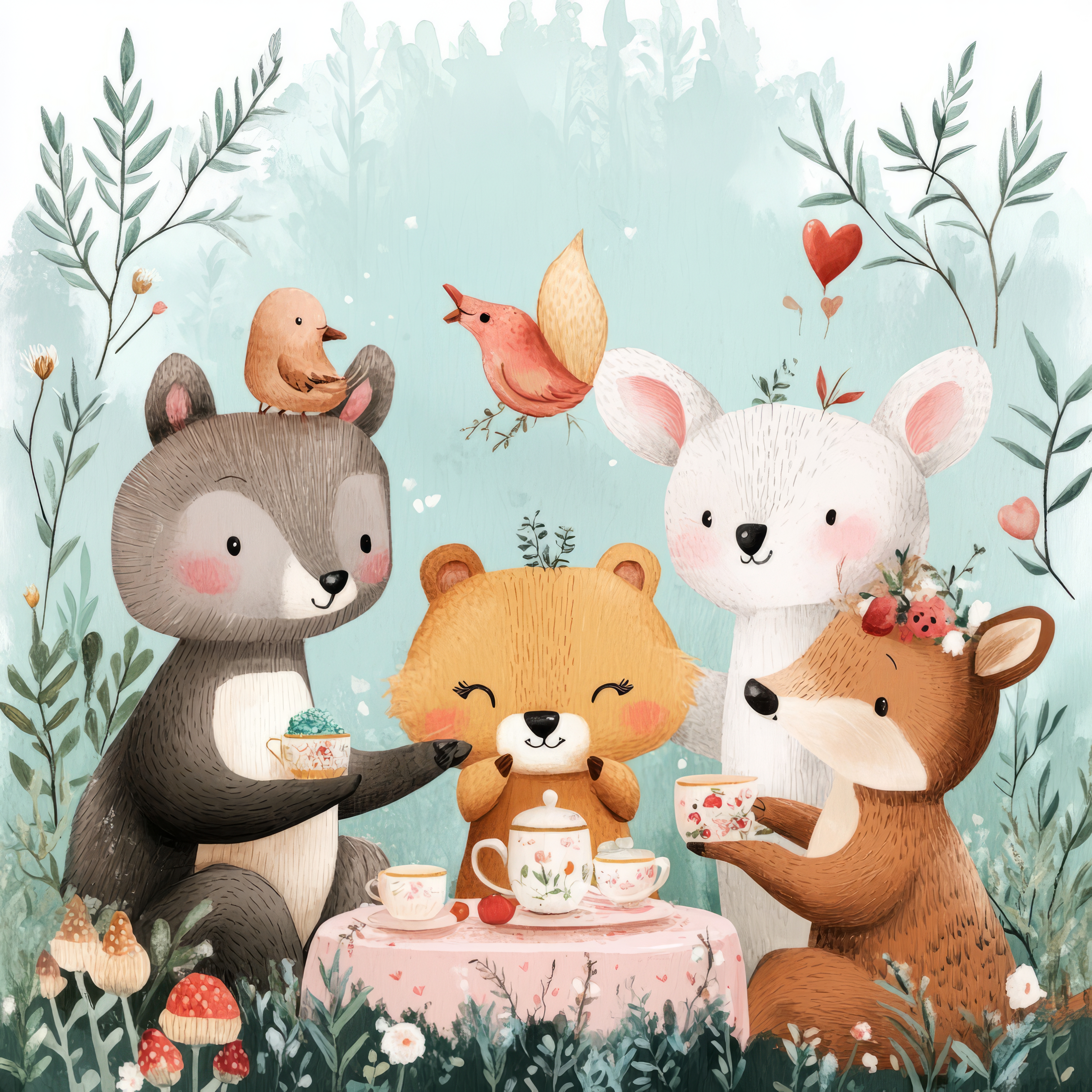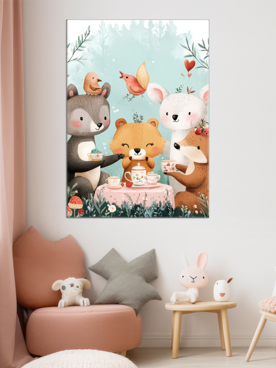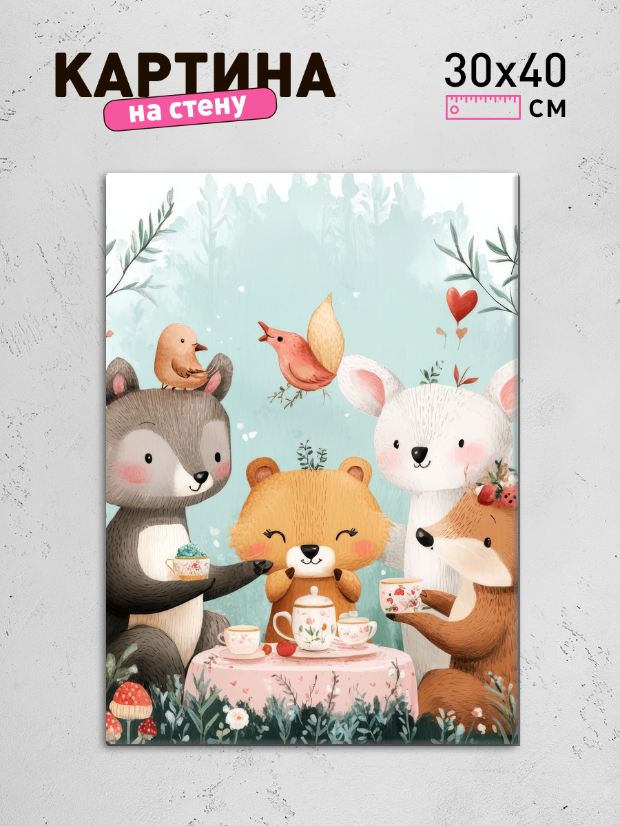 Описание: Картина 50 на 70 "Чаепитие лесных друзей" изображает милую сцену, где четыре очаровательных животных—медведь, лиса, заяц и маленький медвежонок—собрались за столом на пикник. Они наслаждаются чаем, окруженные зелеными растениями и яркими ягодами, что создает атмосферу уюта и дружбы. Основная идея картины заключается в том, чтобы показать важность дружбы и простых радостей жизни, таких как совместные моменты за чаем на природе. Эта картина вызывает теплые и радостные эмоции. Она напоминает о детских воспоминаниях, о свободе и беззаботности, пробуждая желание провести время с близкими. Яркие цвета и милые персонажи создают ощущение счастья и безмятежности, что делает её идеальной для создания уютной атмосферы в вашем доме. Картина отлично впишется в интерьер детской комнаты, добавив игривости и тепла. Она также подойдет для гостиной или кухни, особенно если вы хотите создать пространство, наполненное радостью и позитивом. "Чаепитие лесных друзей" станет прекрасным акцентом на стене и привлечет внимание гостей, вызвав улыбки и приятные воспоминания.