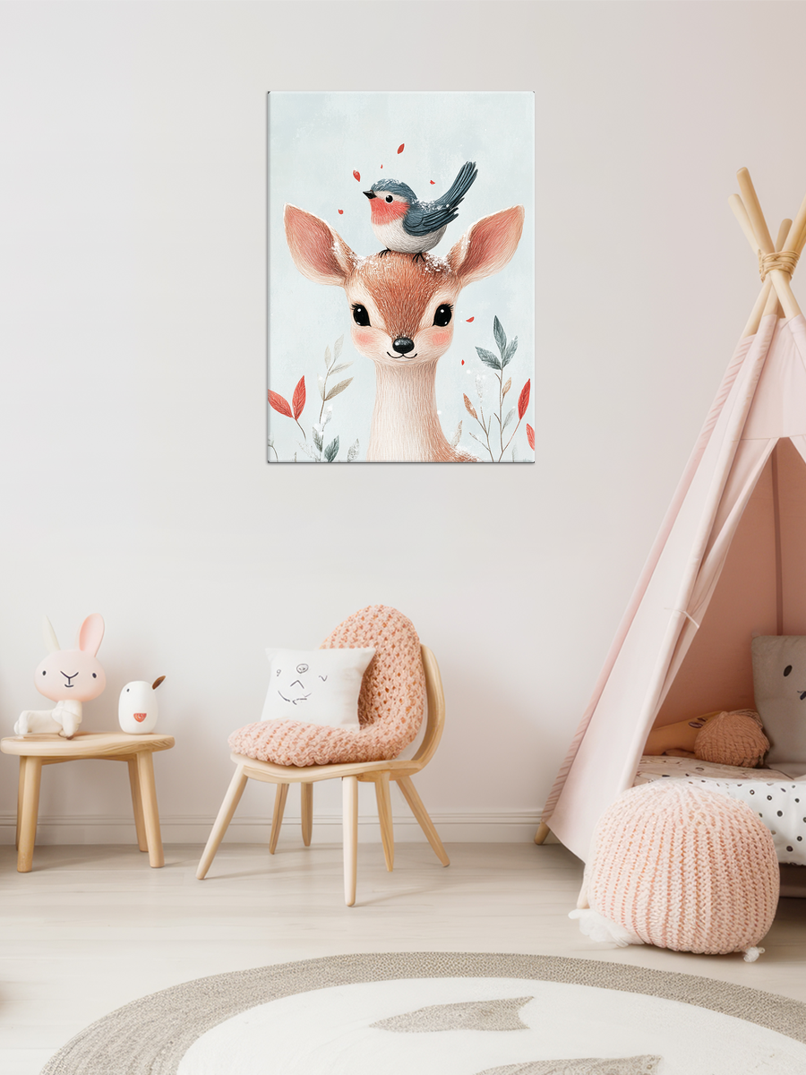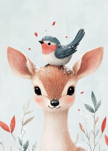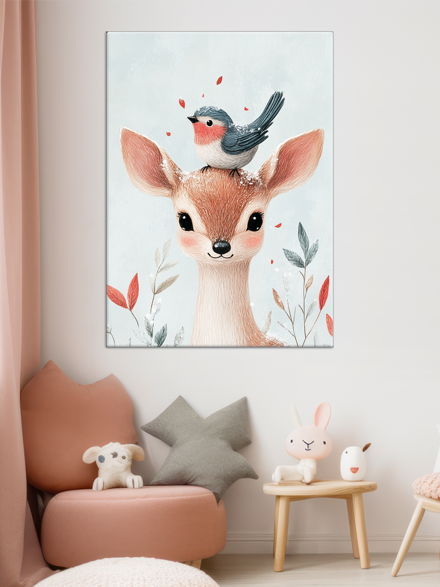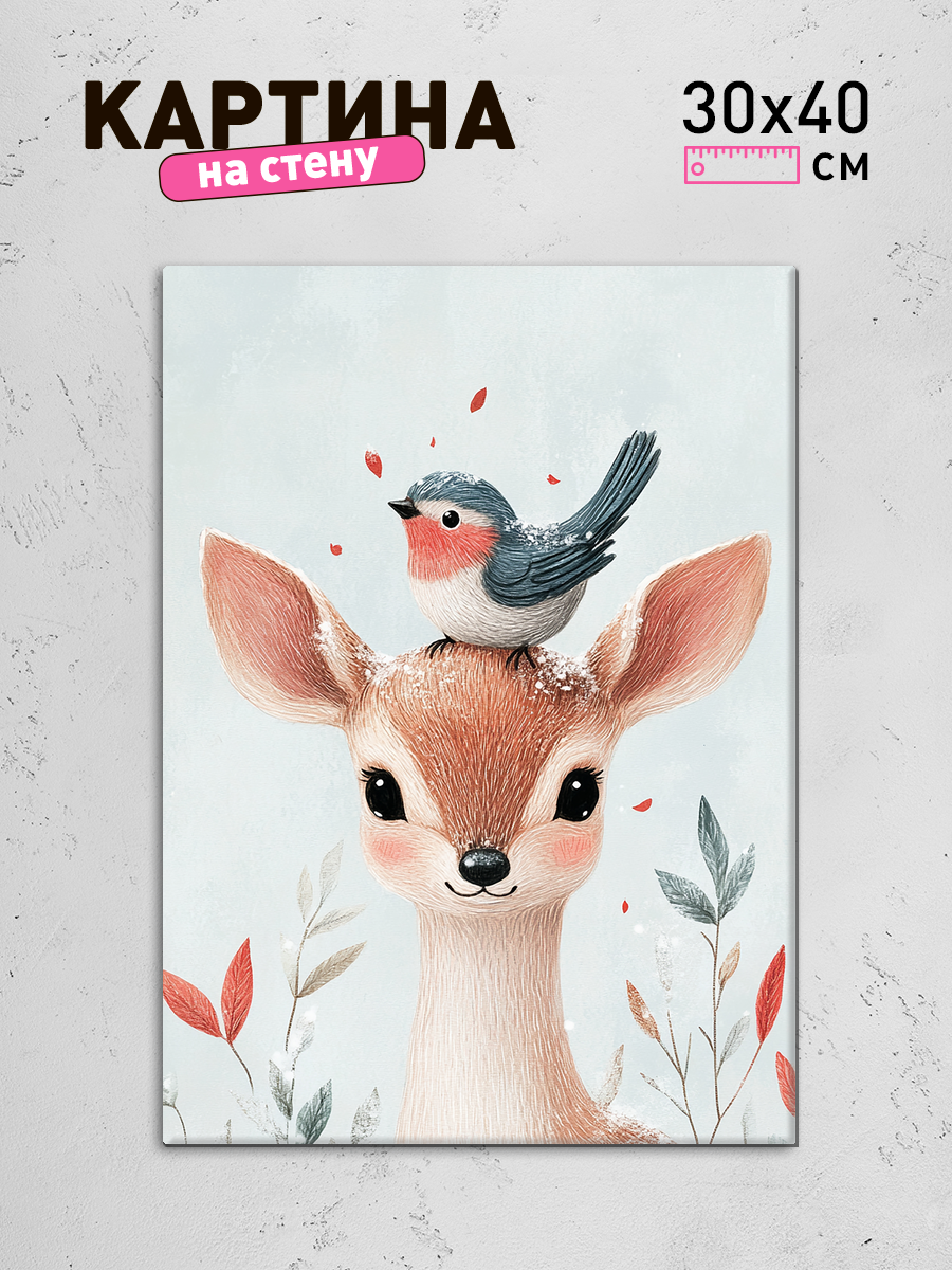 Описание: Картина 50 на 70 "Сказочный лес" прекрасно передает атмосферу волшебного мира, где нежное олененок и милый птичка становятся символами дружбы и невинности. На фоне голубого неба, олененок с большими, выразительными глазами смотрит на зрителя, а птичка, уютно устроившись на его голове, словно делится с ним секретами леса. Эта картина вызывает теплые и радостные эмоции, погружая зрителя в мир детских сказок и беззаботного счастья. Она напоминает о простых радостях жизни, о дружбе и гармонии с природой. Каждый раз, глядя на это произведение, вы будете ощущать легкость и умиротворение. Картина идеально подойдет для детской комнаты, создавая атмосферу уюта и волшебства. Она также станет замечательным акцентом в гостиной или на кухне, добавляя в интерьер нотки нежности и радости. "Сказочный лес" станет не только украшением вашего дома, но и источником вдохновения и положительных эмоций для всей семьи.