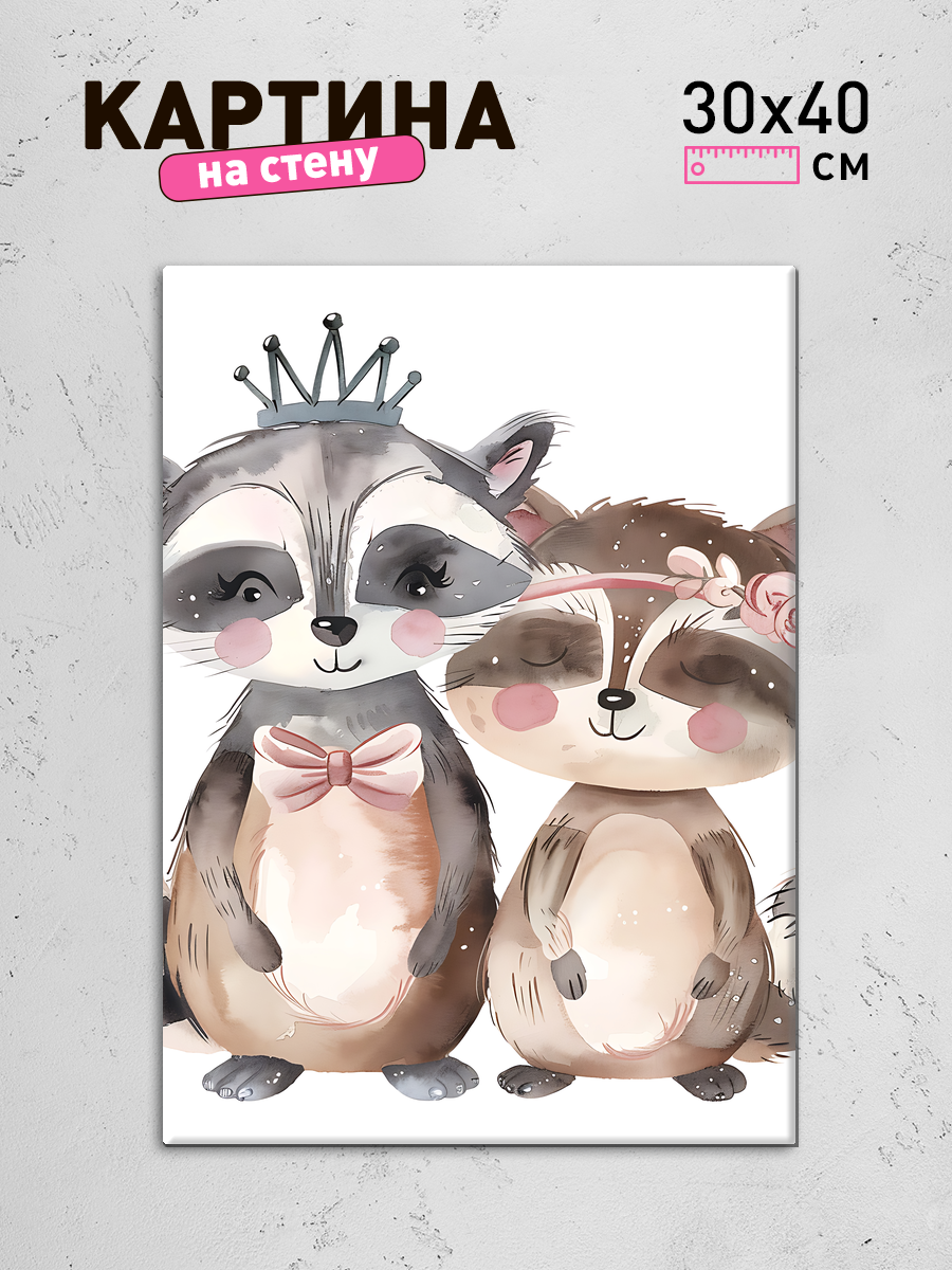 Описание: Картина 50 на 70 "Очарование енотов" изображает двух милых енотов, которые смотрят на зрителя с нежностью и добротой. Один из них, в короне и с бантом на груди, символизирует игривость и радость, а другой, с цветочной повязкой, излучает спокойствие и умиротворение. Эта картина передает уникальную атмосферу дружбы и тепла, которая способна украсить любое пространство. Смотря на эту картину, вы ощущаете лёгкость и позитив, словно попадаете в мир, где царит гармония и детская радость. Эти персонажи вызывают улыбку и умиление, заставляя забыть о повседневных заботах. Их дружеский взгляд наполняет комнату светом и теплом, создавая уютную атмосферу. Картина идеально впишется в интерьер детской комнаты, добавив в него нотку игривости и волшебства. Также она станет отличным акцентом в гостиной, придавая пространству индивидуальность и уют. Благодаря своей универсальности, её можно разместить на стене в любом уголке вашего дома — будь то холл, спальня или даже офис. "Очарование енотов" — это не просто картина, а настоящая находка для тех, кто ценит искренние эмоции и уникальный стиль.