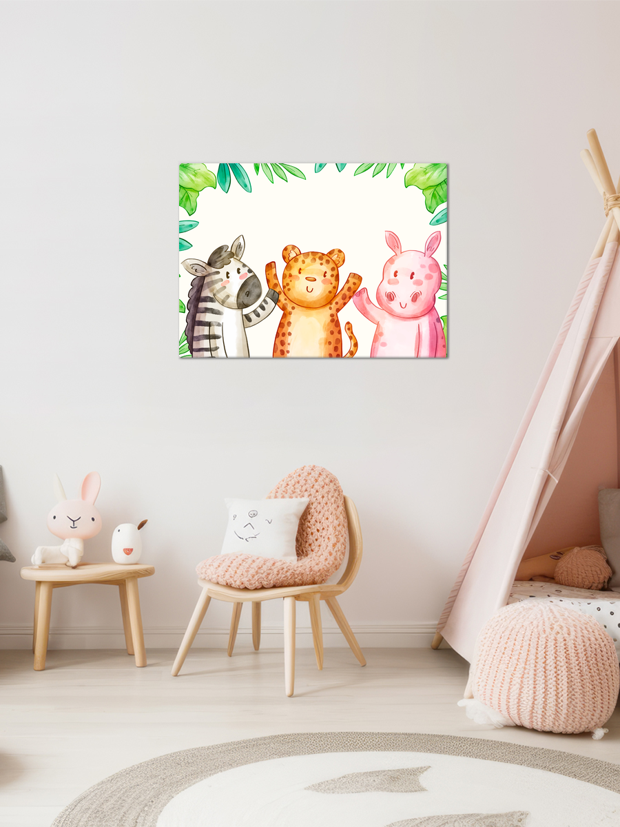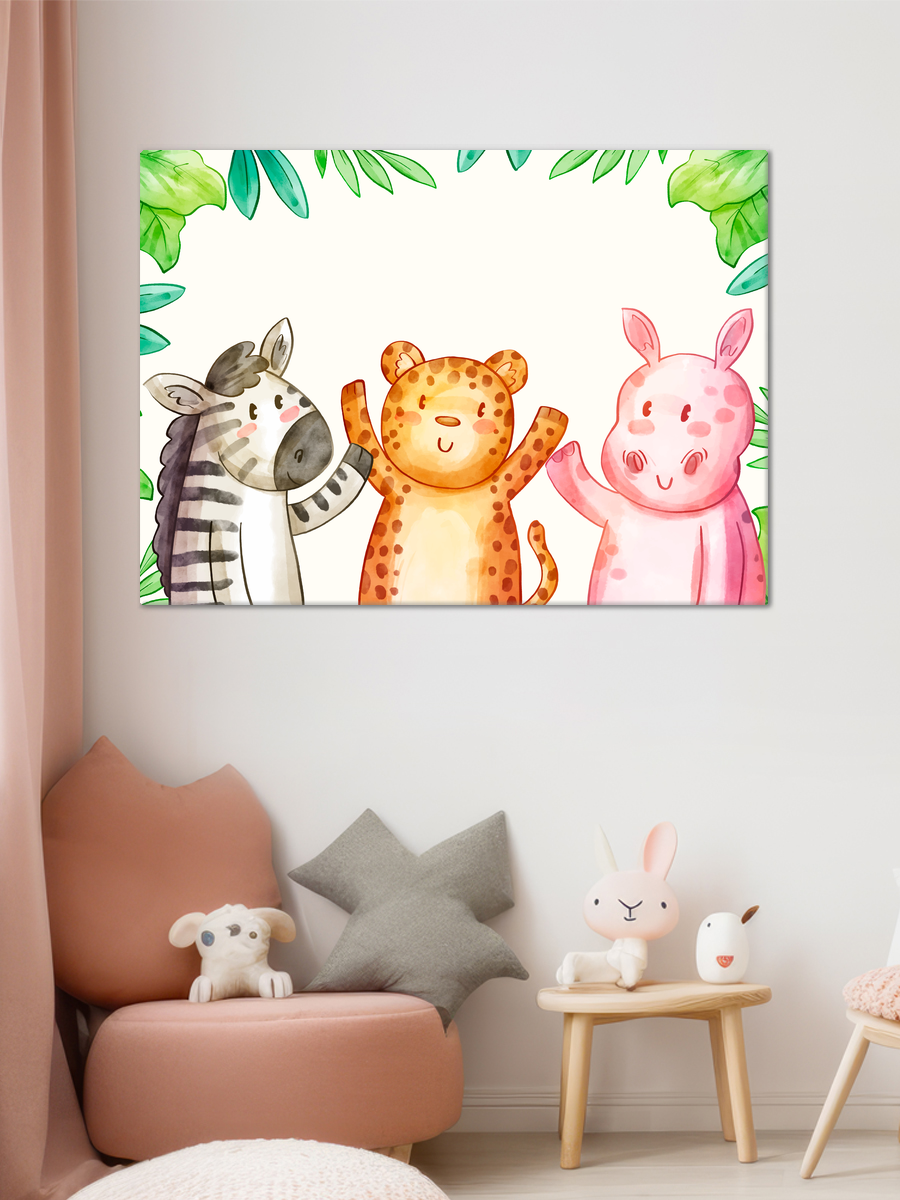 Описание: Картина 50 на 70 "Друзья в джунглях" представляет собой яркое и жизнерадостное изображение трех милых животных: зебры, леопарда и гиппопотама, которые весело позируют среди зелени тропических листьев. Уникальность этой картины заключается в её игривой и дружелюбной атмосфере, которая наполняет пространство теплотой и радостью. Каждое животное изображено с любовью и детализацией, что делает картину привлекательной для всех возрастов. Эмоции, которые вызывает данное произведение, - это беззаботность и счастье. Оно способно поднять настроение и добавить позитив в любой интерьер. Яркие цвета и милые персонажи делают эту картину идеальной для детской комнаты или игровой зоны, где она станет центром внимания. Однако она также сможет легко вписаться в уютную гостиную или кухню, придавая им атмосферу тепла и дружбы. Эта картина будет замечательным подарком для любителей животных и природы, а также для тех, кто хочет добавить в своё пространство немного игривости и радости. Повесьте её на стену, и она станет не только украшением, но и источником положительных эмоций для вас и ваших близких.
