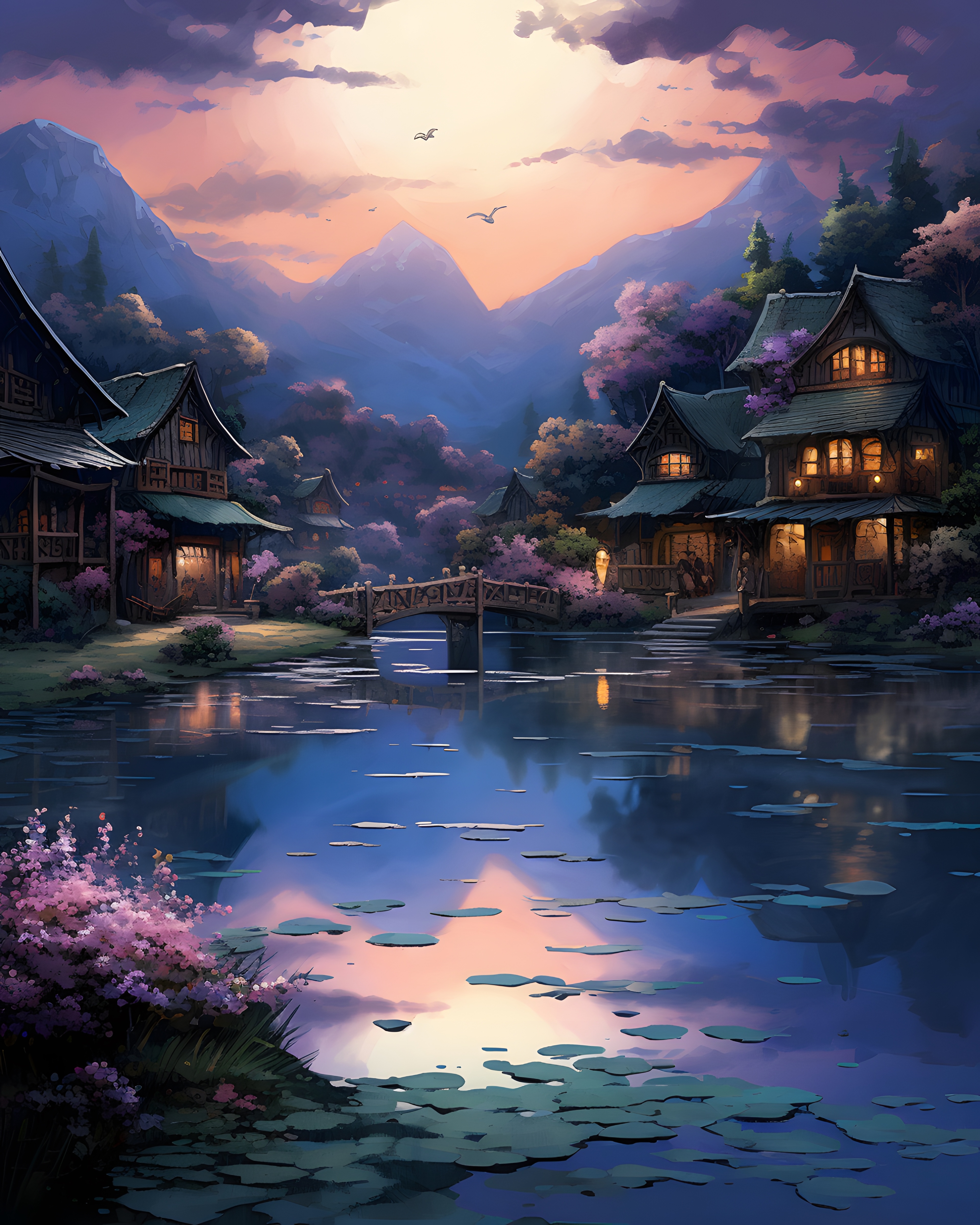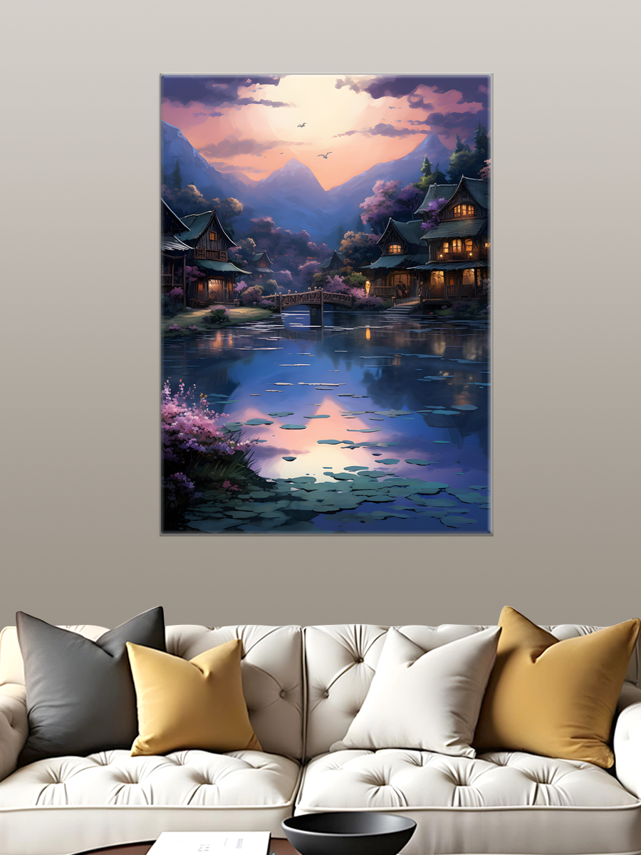 Описание: Картина 50 на 70 'Утренний мир' изображает живописный пейзаж, где уютные домики с яркими окнами расположены вдоль спокойной реки, окруженной цветущими деревьями и величественными горами. Основная идея картины — передать атмосферу умиротворения и гармонии с природой, создавая ощущение уединения и спокойствия. Уникальность картины заключается в её ярких цветах и детализированной проработке, которая позволяет зрителю погружаться в волшебный мир. Эта картина вызывает теплые и приятные эмоции, наполняя пространство уютом и светом. Она словно приглашает нас остановиться на мгновение, насладиться красотой природы и забыть о суете повседневной жизни. Каждый взгляд на 'Утренний мир' пробуждает чувство радости и спокойствия, что делает её идеальным украшением для вашего дома или офиса. Картина отлично подойдет для оформления интерьеров в стиле прованс, кантри или скандинавском направлении. Она будет великолепно смотреться на стене в гостиной, спальне или даже в кабинете, добавляя нотку тепла и уюта. Также 'Утренний мир' станет прекрасным подарком для тех, кто ценит красоту природы и ищет вдохновение в повседневной жизни.