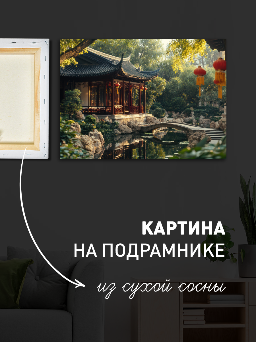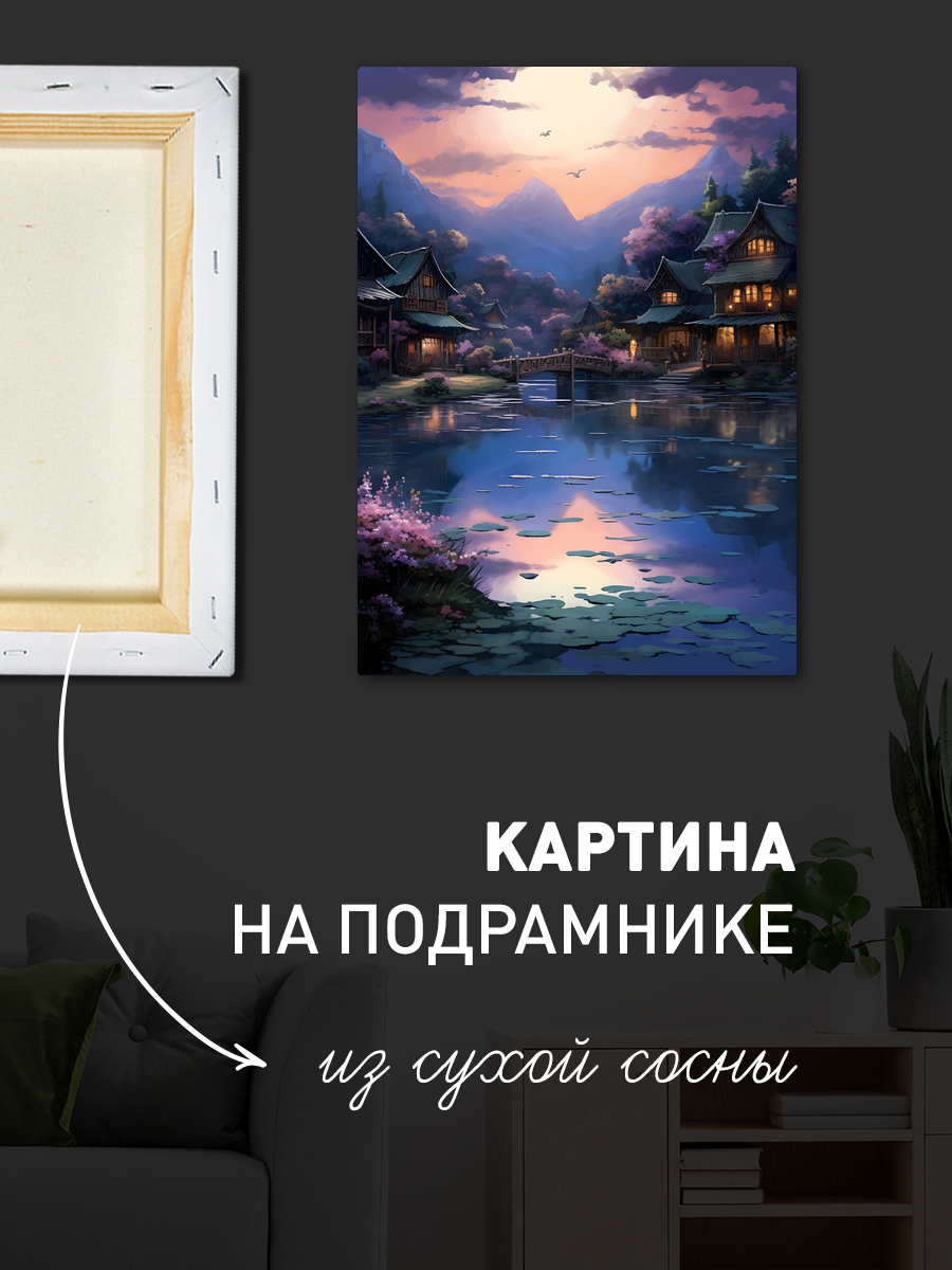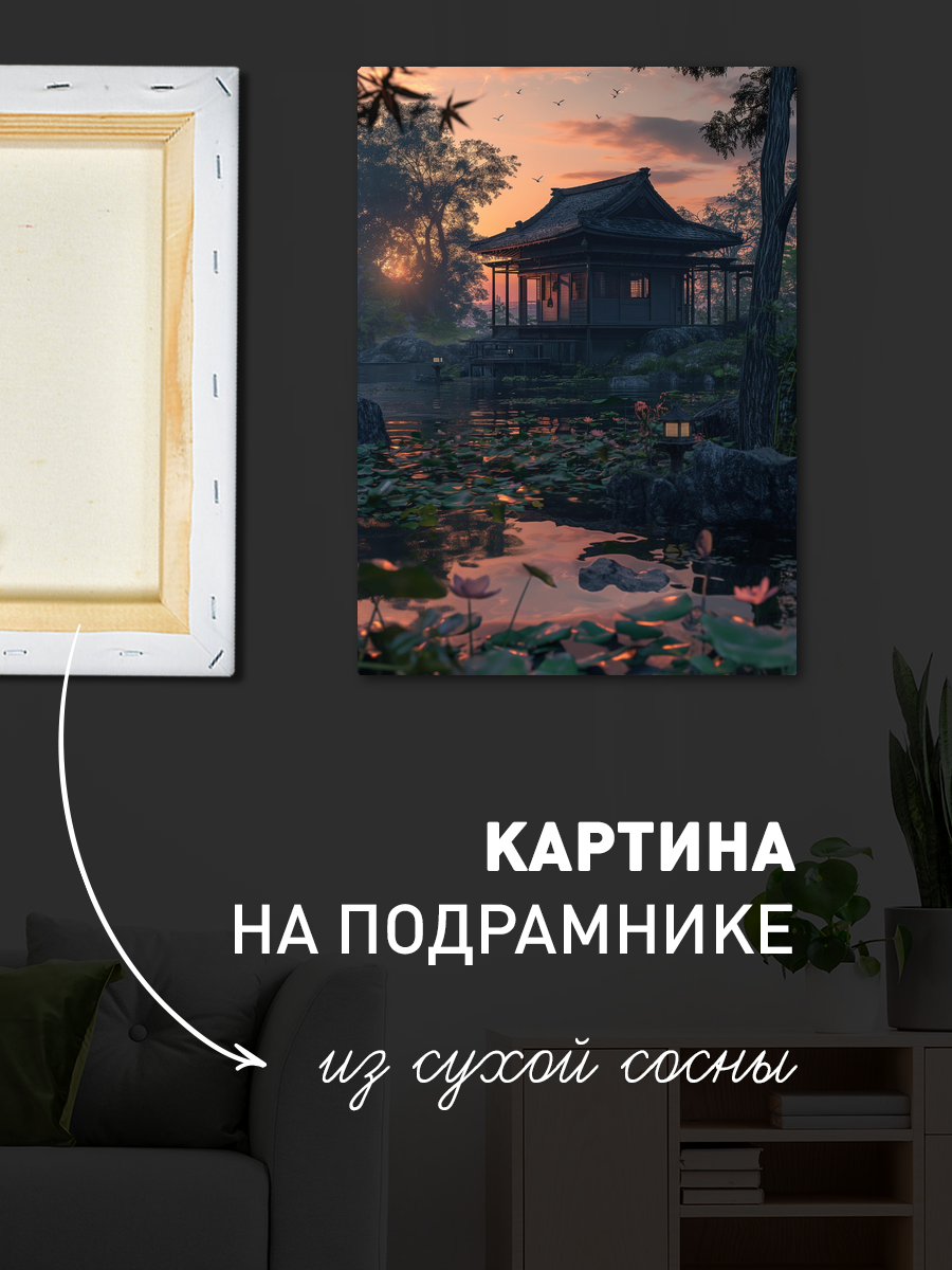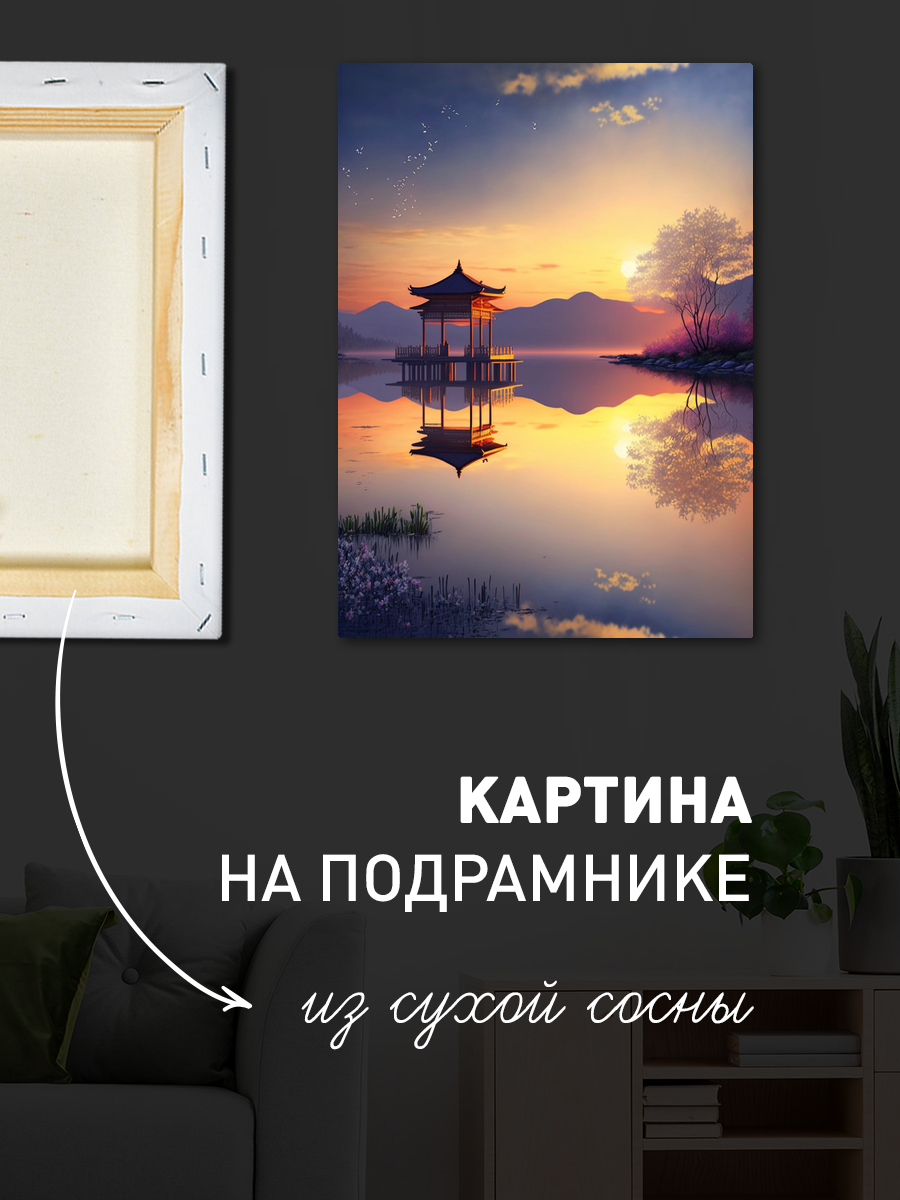 Описание: Картина 50 на 70 "Утренний покой" изображает живописный пейзаж с традиционным восточным домиком, который уютно расположился на берегу спокойного пруда. На фоне нежного оранжевого заката, отражающегося в воде, картина передает атмосферу умиротворения и гармонии. Уникальность этой работы заключается в сочетании ярких и мягких оттенков, которые создают эффект волшебного утра, когда природа пробуждается от сна. Эмоции, которые вызывает эта картина, — это спокойствие, радость и вдохновение. Она словно приглашает вас на прогулку по этому живописному уголку, где время останавливается, и вы можете насладиться красотой окружающего мира. Каждый взгляд на картину наполняет душу теплом и светом, позволяя забыть о повседневной суете. Картина идеально подойдет для оформления интерьера в любом стиле — от классического до современного. Она станет замечательным акцентом в гостиной, спальне или кабинете, а также украсит холл или коридор, создавая атмосферу уюта и спокойствия. Поставьте её на видное место, чтобы каждый день наслаждаться её красотой и вдохновением, которое она приносит.