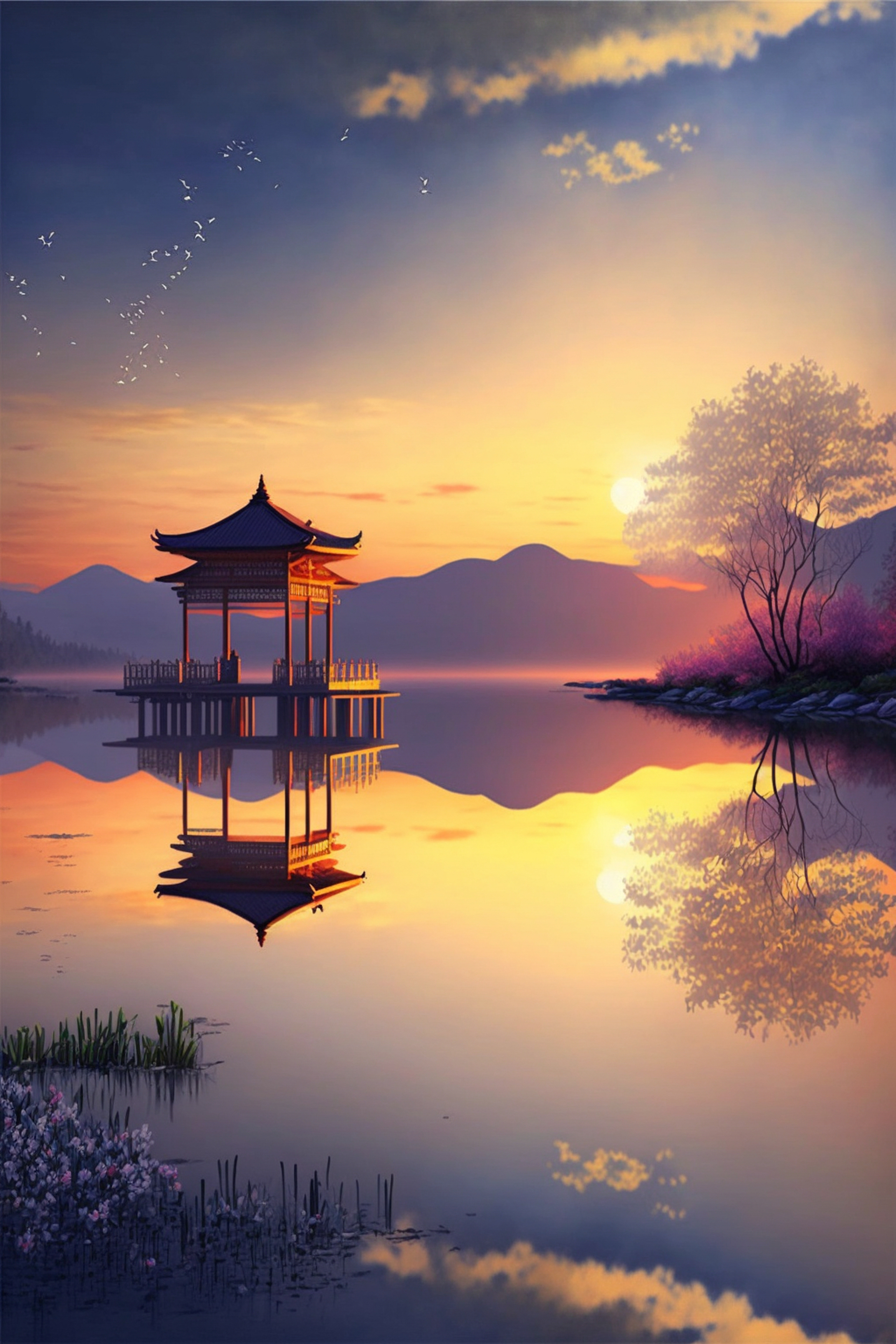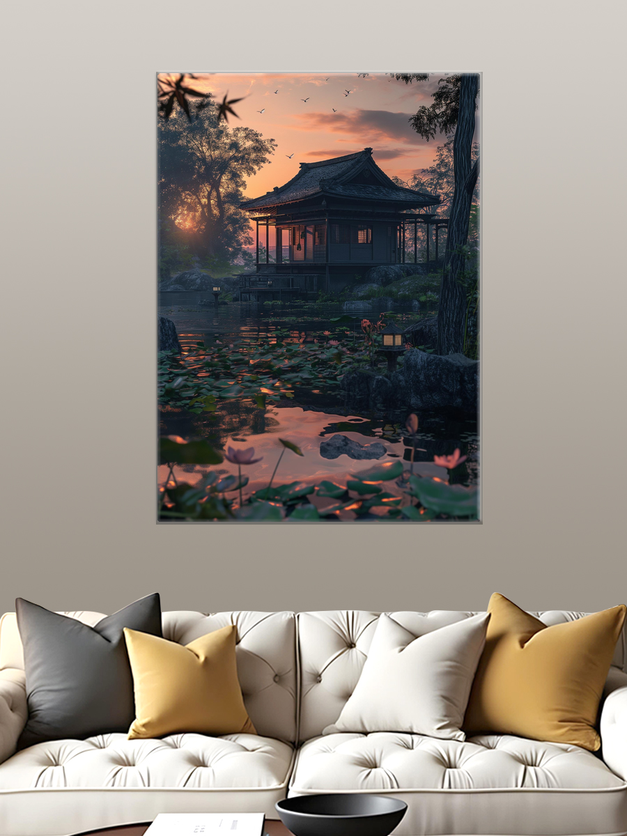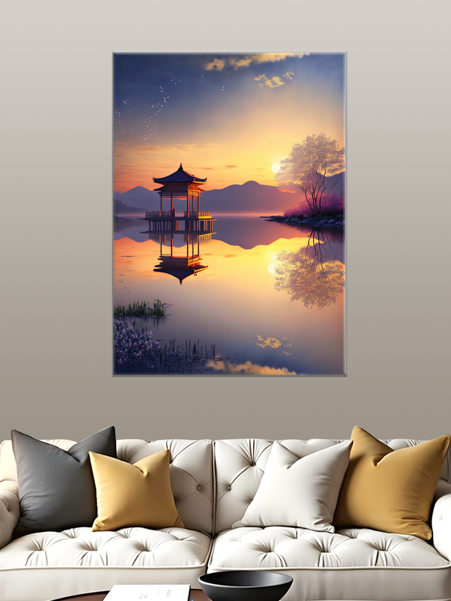 Описание: Картина 50 на 70 "Утренний покой" изображает живописный пейзаж с традиционным восточным домиком, который уютно расположился на берегу спокойного пруда. На фоне нежного оранжевого заката, отражающегося в воде, картина передает атмосферу умиротворения и гармонии. Уникальность этой работы заключается в сочетании ярких и мягких оттенков, которые создают эффект волшебного утра, когда природа пробуждается от сна. Эмоции, которые вызывает эта картина, — это спокойствие, радость и вдохновение. Она словно приглашает вас на прогулку по этому живописному уголку, где время останавливается, и вы можете насладиться красотой окружающего мира. Каждый взгляд на картину наполняет душу теплом и светом, позволяя забыть о повседневной суете. Картина идеально подойдет для оформления интерьера в любом стиле — от классического до современного. Она станет замечательным акцентом в гостиной, спальне или кабинете, а также украсит холл или коридор, создавая атмосферу уюта и спокойствия. Поставьте её на видное место, чтобы каждый день наслаждаться её красотой и вдохновением, которое она приносит.