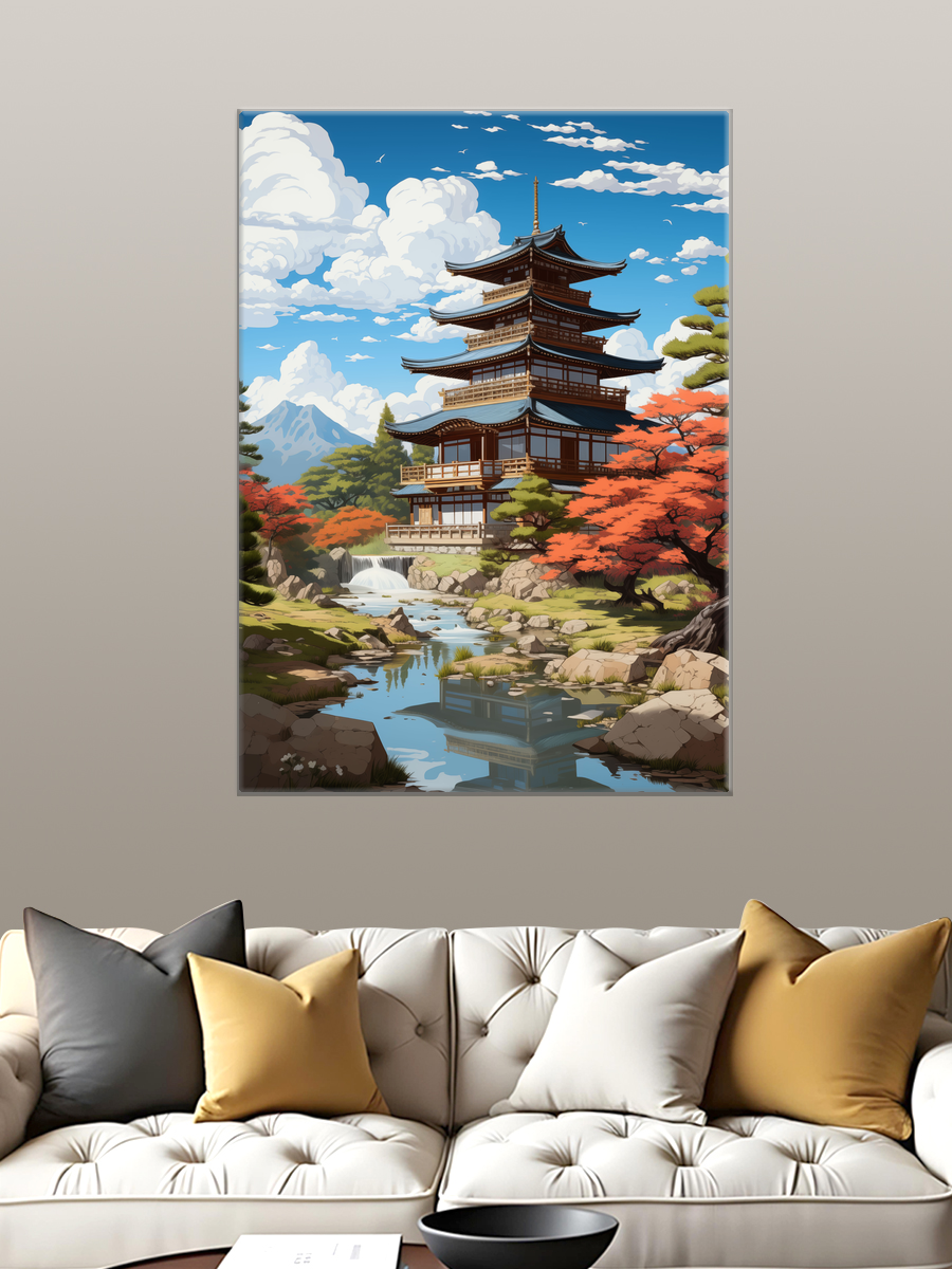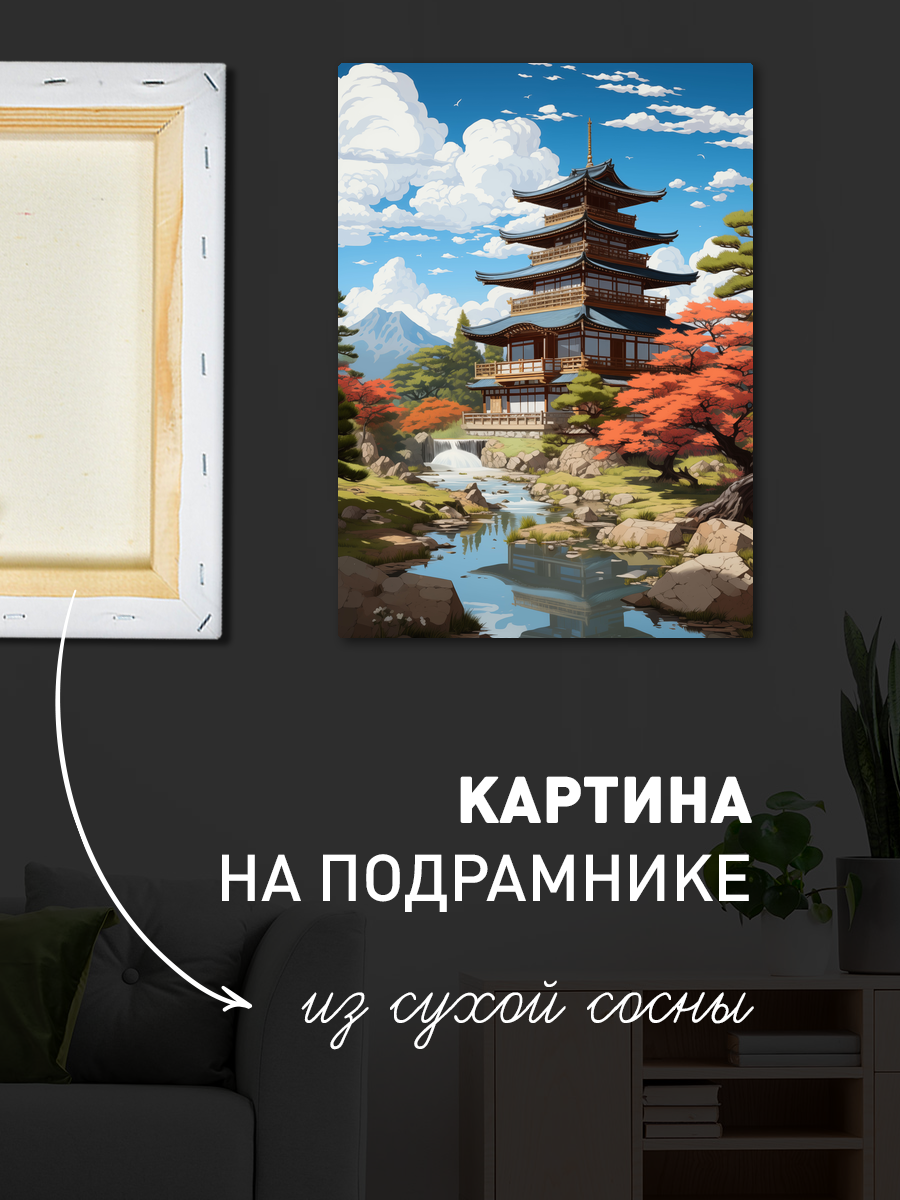 Описание: Картина 50 на 70 'Японский пейзаж' переносит зрителя в мир гармонии и красоты восточной природы. На картине изображен великолепный японский храм, окруженный живописным ландшафтом с яркими красными кленами и спокойной рекой, отражающей облачное небо. Уникальность этой работы заключается в сочетании традиционной архитектуры и естественной красоты, что создает атмосферу умиротворения и спокойствия. Эта картина вызывает теплые чувства и восторг, погружая зрителя в чувство умиротворения и вдохновения. Она словно наполняет пространство светом и жизнью, позволяя каждому, кто на нее смотрит, на мгновение забыть о повседневной суете и насладиться красотой природы. 'Японский пейзаж' идеально подойдет для интерьеров в стиле минимализм, скандинавском или восточном. Ее можно повесить в гостиной, спальне или кабинете, где она будет не только украшением, но и источником вдохновения для владельца. Эта картина станет настоящим акцентом вашего интерьера, привнося в него атмосферу спокойствия и гармонии.