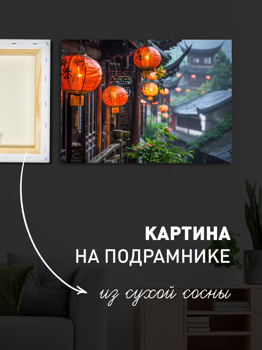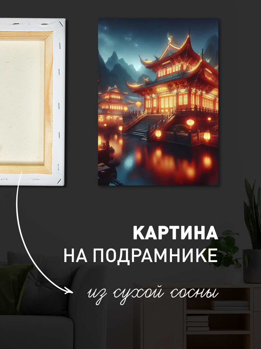 Описание: Картина 50 на 70 'Тайна вечернего города' переносит зрителя в волшебный мир восточной архитектуры. На изображении запечатлены нежно светящиеся фонари, которые освещают узкую улочку, окруженную традиционными зданиями с изогнутыми крышами. Тёплые оттенки красного и оранжевого создают атмосферу уюта и спокойствия, а зелень растительности добавляет свежести и жизни в картину. Эта работа уникальна своей способностью передать ощущение глубокой связи с культурой и природой. Эмоции, которые вызывает эта картина, варьируются от ностальгии до вдохновения. Каждый взгляд на неё пробуждает желание исследовать новые горизонты и погружаться в атмосферу романтики и таинственности. Она словно приглашает зрителя прогуляться по тихим улочкам и насладиться мгновением покоя, когда вечерняя тишина обнимает город. Эта картина идеально впишется в интерьер как современного, так и классического стиля. Она станет прекрасным акцентом в гостиной, создавая атмосферу уюта и тепла. Также её можно разместить в кабинете или на кухне, где она будет вдохновлять на творческие идеи и уютные беседы за чашкой чая. 'Тайна вечернего города' — это не просто картина, это источник вдохновения и спокойствия, который украсит ваше пространство и подарит приятные эмоции каждый день.