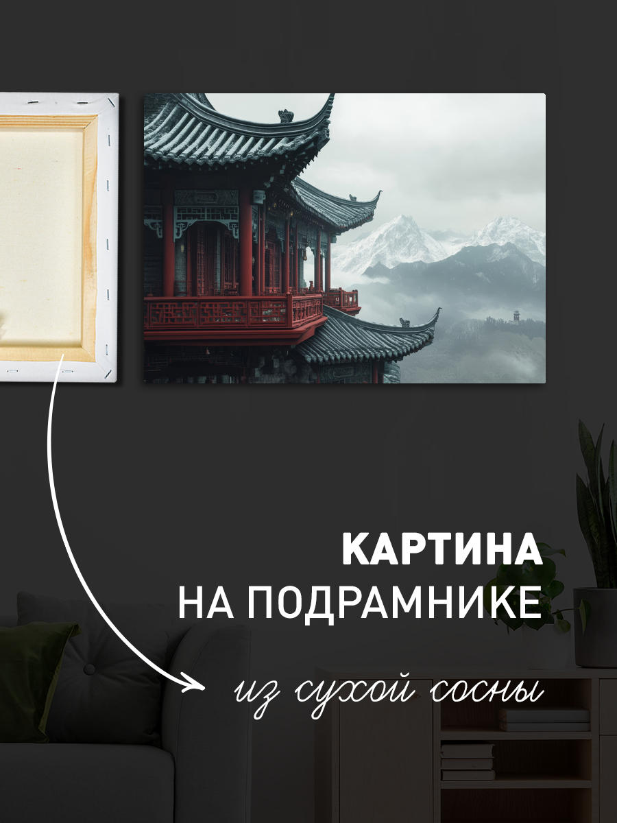 Описание: Картина 50 на 70 'Восточная гармония' представляет собой великолепный пейзаж, где величественные горы с покрытыми снегом вершинами возвышаются над древними восточными зданиями, утопающими в красоте осенних деревьев. Эта картина погружает зрителя в атмосферу спокойствия и умиротворения, воплощая в себе уникальное сочетание природы и архитектуры. Яркие оттенки голубого неба и белоснежных облаков контрастируют с теплым красным и розовым цветами деревьев, создавая гармоничное ощущение баланса. Каждый элемент картины вызывает чувство восхищения и вдохновения, напоминая о красоте мира вокруг нас. Она способна вызвать глубокие эмоции, такие как спокойствие и умиротворение, что делает её идеальным дополнением для вашего домашнего или офисного пространства. Эта картина будет прекрасно смотреться в интерьере, наполненном восточной тематикой, или в современном минималистичном пространстве, где акцент на искусстве создает атмосферу уюта и гармонии. Она может стать центральным элементом декора в гостиной, спальной или даже в офисе, привнося в пространство нотку вдохновения и позитивной энергии. 'Восточная гармония' — это не просто картина, это стиль жизни, который вы можете пригласить в свой дом. Позвольте этой картине стать вашей личной оазисом спокойствия и красоты.