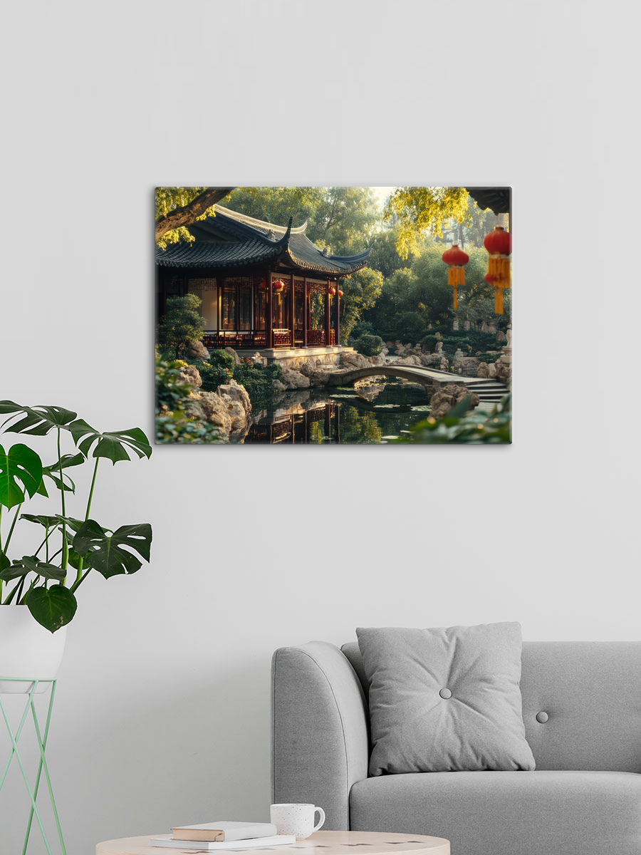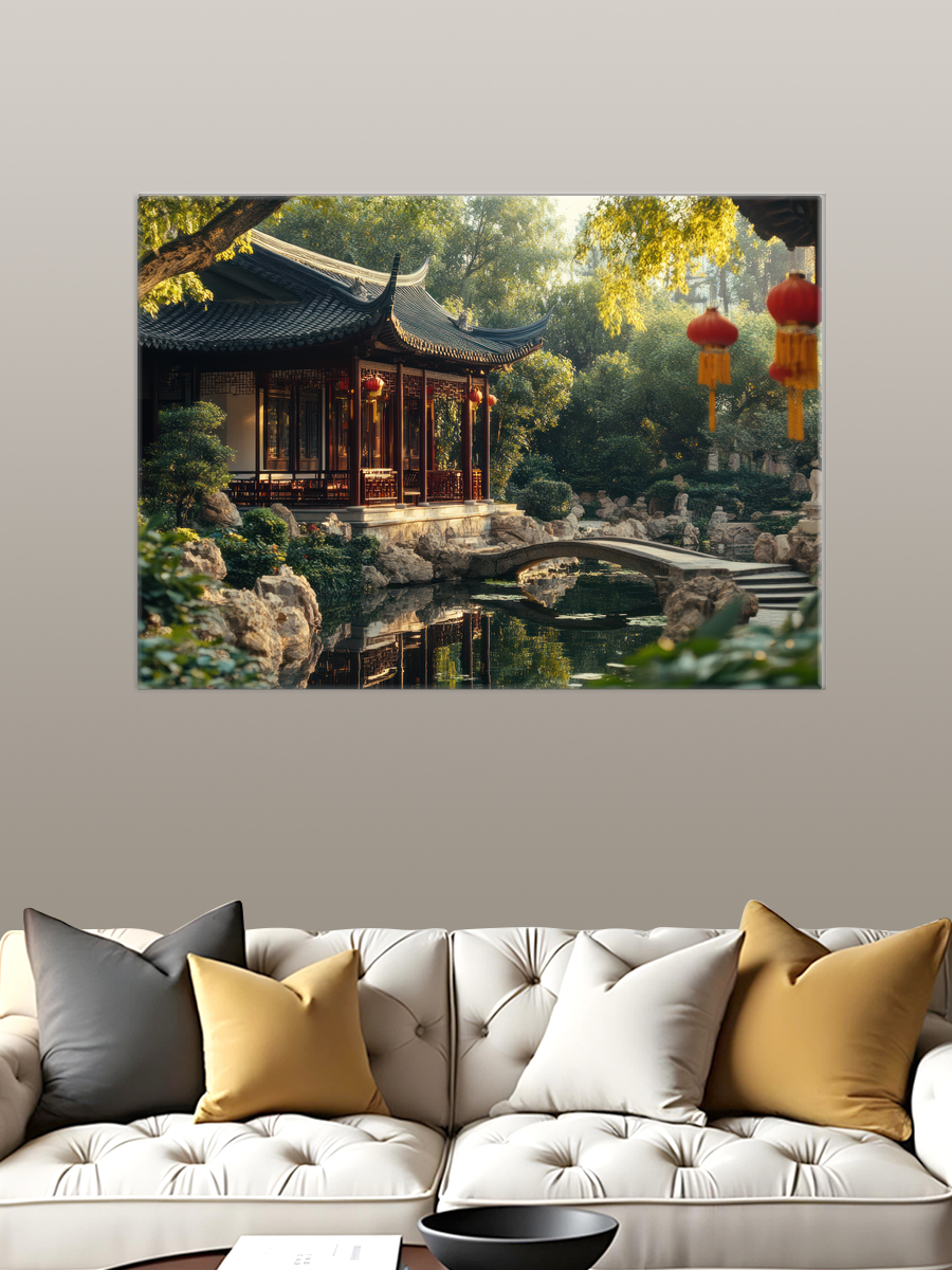 Описание: Картина 50 на 70 "Утренний сад" представляет собой волшебный пейзаж, где гармонично сосуществуют природа и архитектура. На картине изображен изящный восточный павильон, утопающий в зелени сада, окруженный спокойной водой. Уникальность этой работы заключается в ее способности передать атмосферу умиротворения и спокойствия, приглашая зрителя насладиться моментом тишины в сердце природы. Эмоции, которые вызывает "Утренний сад", — это ощущение гармонии и покоя. Яркие оттенки зелени, теплые бежевые и коричневые тона создают уют, а красные фонарики добавляют нотки восточного очарования. Эта картина способна украсить любое пространство, привнося в него тепло и спокойствие. Она станет отличным акцентом в вашем интерьере, оживляя стены гостиной, спальни или кабинета. Постарайтесь представить, как "Утренний сад" будет смотреться на стене вашего дома. Она идеально впишется в стиль минимализма, восточного или экологического дизайна, а также станет ярким акцентом в классическом интерьере. Создайте вокруг нее атмосферу умиротворения, добавив к ней элементы натурального дерева и зелени. Эта картина станет не только украшением вашего дома, но и источником вдохновения и спокойствия в вашем повседневном пространстве.