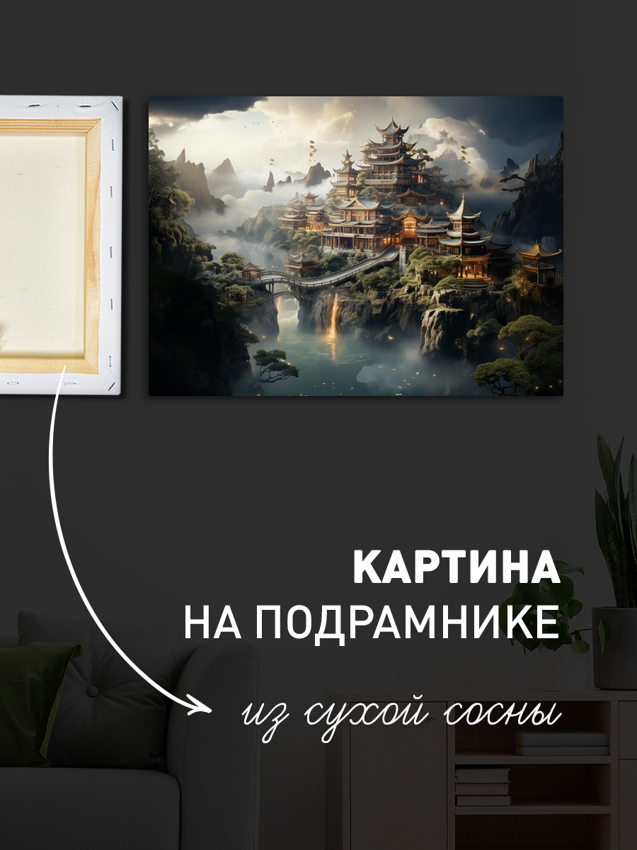 Описание: Картина 50 на 70 "Восход в небесах" - это завораживающее изображение величественного восточного города, утопающего в облаках. На картине изображены элегантные пагоды, окруженные зелеными деревьями и скалистыми горами, создающими атмосферу уединения и покоя. Основная идея картины - передать ощущение гармонии между человеком и природой, а также вдохновить на поиски внутреннего спокойствия. Эта картина вызывает теплые чувства и умиротворение, наполняя пространство светом и надеждой. Яркие цвета и мягкие линии создают ощущение живости, а глубокие оттенки придают глубину и значимость изображению. Каждая деталь картины передает настроение умиротворения и вдохновения, что делает её идеальным выбором для тех, кто ценит красоту восточной культуры и философии. Картина отлично подходит для различных интерьеров: от уютной гостиной до стильного кабинета или спальни. Она станет ярким акцентом, подчеркивающим современный или традиционный стиль, и привлечет внимание ваших гостей. Разместите её над диваном, в коридоре или на стене, где вы проводите время для медитации и отдыха. "Восход в небесах" - это не просто картина, это окно в мир гармонии, которое будет радовать вас каждый день.