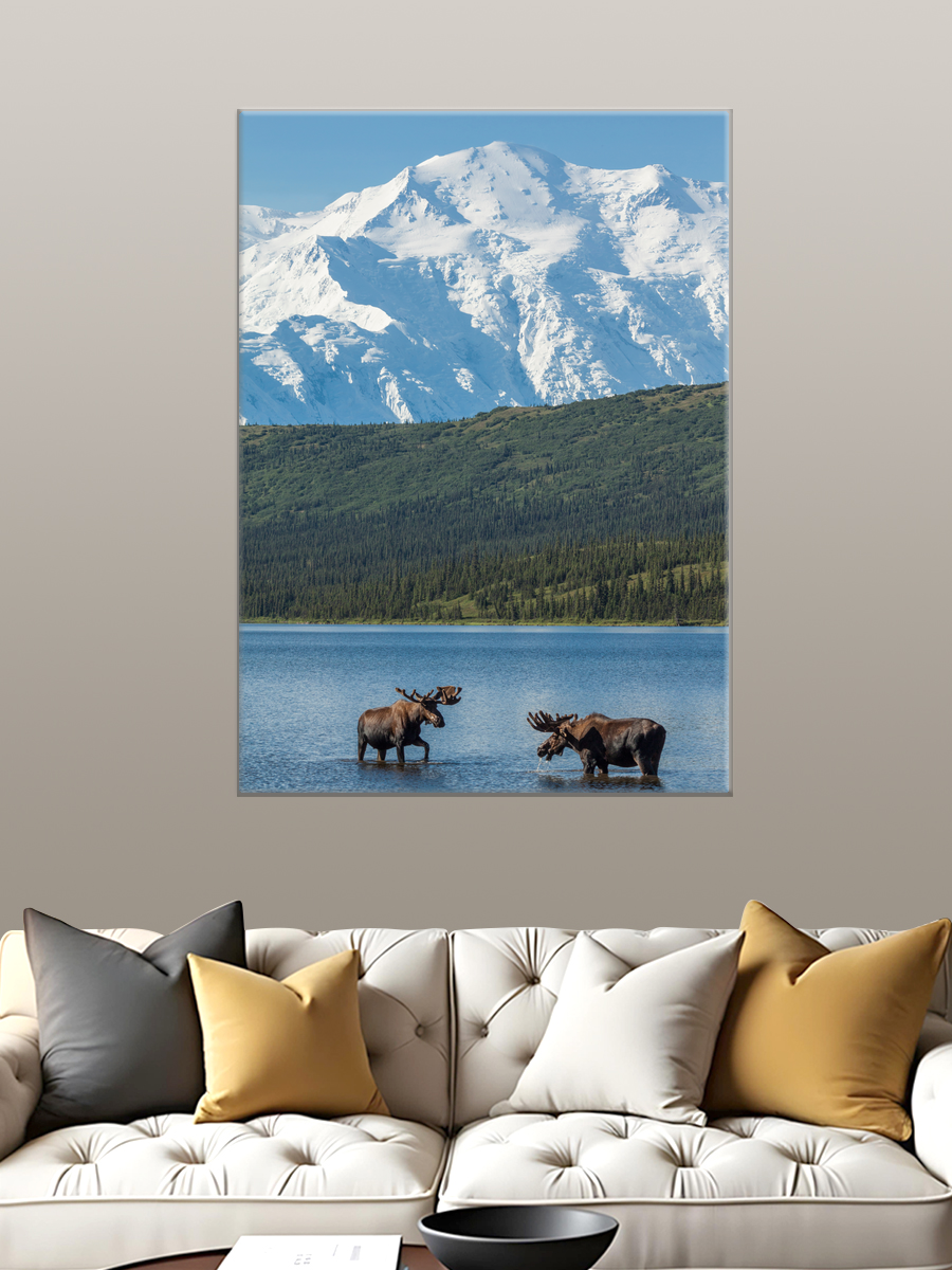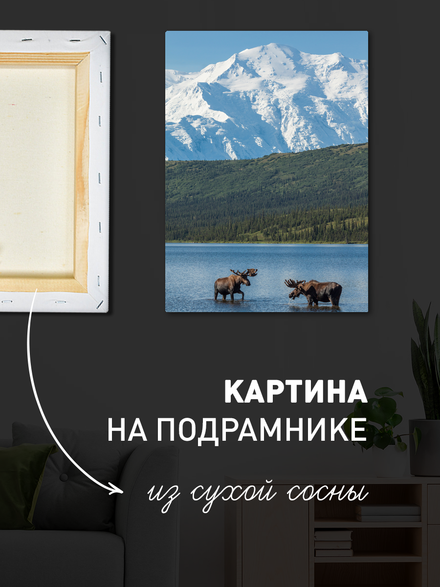 Описание: Картина 50 на 70 "Тишина природы" изображает прекрасный пейзаж с величественными снежными горами на фоне спокойного озера, в котором отражаются окружающие ландшафты. На переднем плане картины можно увидеть двух величественных лосей, мирно пьющее воду — символы природы и её гармонии. Эта картина передает уникальность момента, когда дикая природа встречается с величием гор, создавая атмосферу спокойствия и умиротворения. Эмоции, которые вызывает эта картина, — это чувство свободы и единства с природой. Она погружает зрителя в мир, где царит тишина и гармония, позволяя забыть о повседневной суете. Зритель может ощутить свежесть утреннего воздуха, услышать шорох листвы и увидеть, как свет играет на воде. Эта картина прекрасно впишется в любой интерьер, добавив нотку природной красоты и спокойствия. Она станет отличным акцентом в гостиной, кабинете или спальне, создавая атмосферу умиротворения и вдохновения. Также она будет уместной в загородном доме или на даче, подчеркивая связь с природой. "Тишина природы" — это не просто картина, а настоящая находка для ценителей искусства, которые хотят привнести в своё пространство частичку дикой природы.