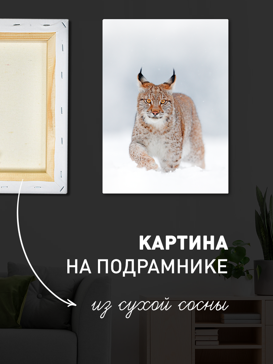 Описание: Картина 50 на 70 "Лесной Линкс" изображает величественного рысь, который грациозно шагает по снежному покрову. Эта работа передает атмосферу зимней сказки, где каждый элемент, от мягкого белого снега до ярких глаз рыси, создаёт уникальную гармонию. Основная идея картины заключается в том, чтобы показать красоту дикой природы и её уязвимость в условиях холодного климата. Каждая деталь, от текстуры меха до легких снежных хлопьев, пробуждает в зрителе чувство спокойствия и восхищения. Эта картина вызывает ощущение умиротворения и созерцания, позволяя погрузиться в атмосферу зимнего леса. "Лесной Линкс" отлично подойдет для современных интерьеров, включая гостиные, кабинеты или даже спальни. Она станет изюминкой вашего пространства, привнося в него природную гармонию и уют. Повесьте её на стену, и вы каждый раз будете ощущать связь с дикой природой, даже находясь в городской среде. Эта картина — идеальный способ выразить свою любовь к природе и добавить характер в ваш дом.