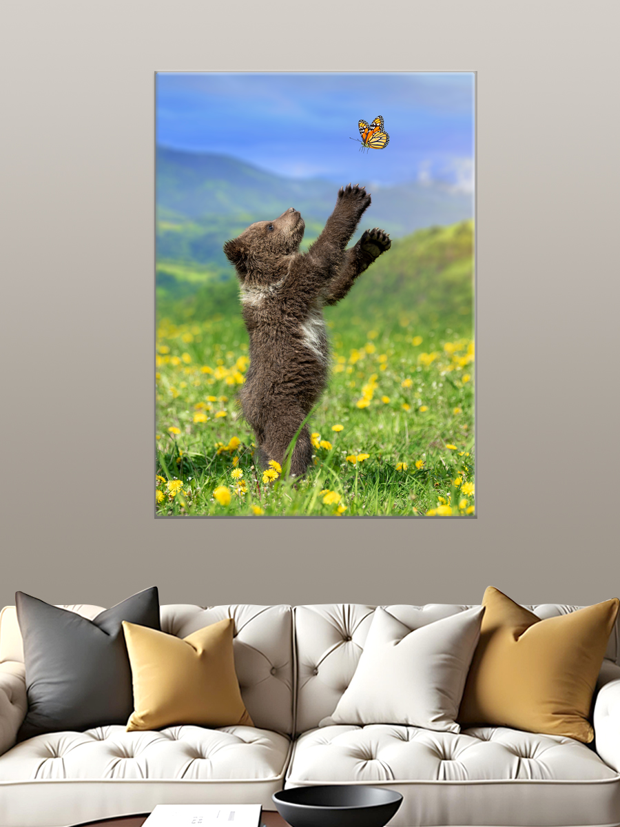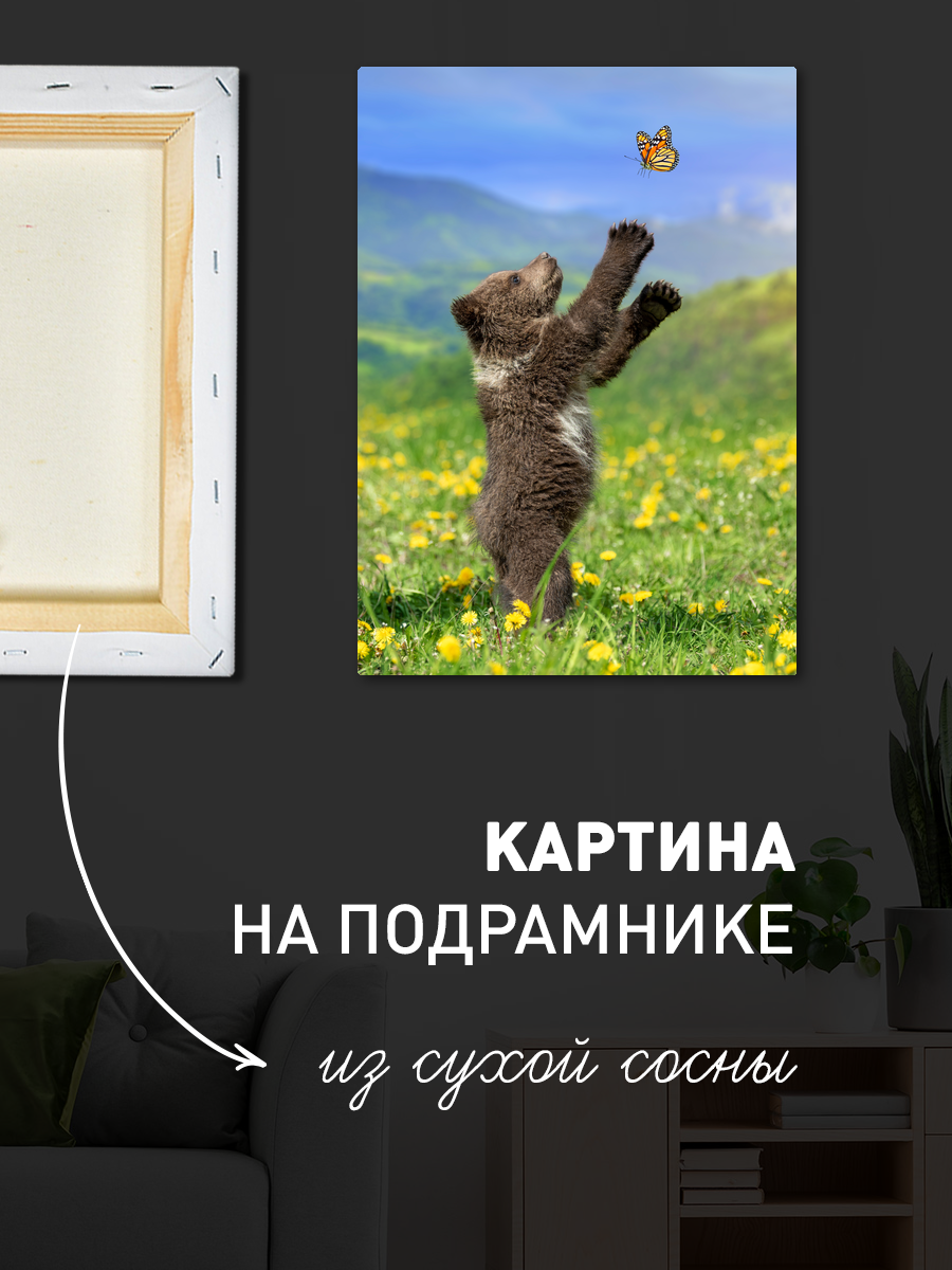 Описание: Картина 50 на 70 "Медвежонок и бабочка" изображает трогательную сцену, где маленький медвежонок тянется к яркой бабочке на фоне живописного ландшафта. Это произведение искусства отражает чистоту и невинность природы, привнося в ваше пространство атмосферу безмятежности и радости. Уникальность картины заключается в том, что она запечатлевает момент любопытства и нежности, который может стать источником вдохновения для каждого зрителя. Эта картина вызывает положительные эмоции, такие как радость и умиротворение, напоминая нам о простых удовольствиях жизни. Она способна добавить яркие оттенки в любое пространство, создавая теплую и дружелюбную атмосферу. Картина идеально подойдет для детской комнаты, где она будет вдохновлять детскую фантазию, или в гостиной, добавляя нотку уюта. Также она гармонично впишется в интерьер загородного дома или дачи, создавая ощущение гармонии с природой. Разместите её на стене, где она будет легко видна, и позволить каждому, кто заходит в помещение, насладиться её красотой и теплом.
