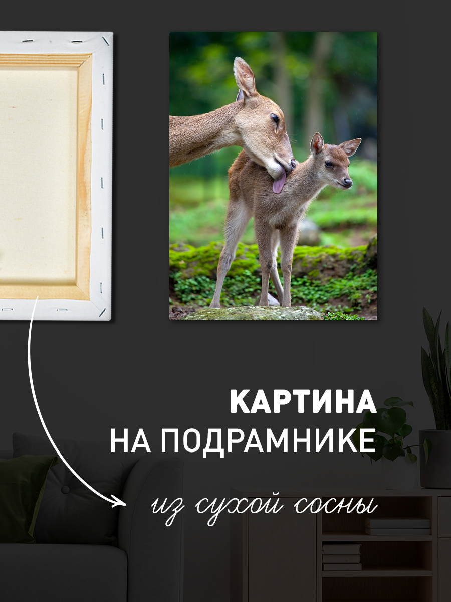 Описание: Картина 50 на 70 "Материнская забота" - это трогательное изображение, на котором мать оленя нежно заботится о своем детеныше. Это произведение искусства передает уникальную связь между матерью и ребенком, напоминая нам о силе любви и заботы в природе. Основная идея картины заключается в том, что материнская привязанность transcends все границы, создавая атмосферу тепла и умиротворения. Каждый раз, глядя на эту картину, вы будете ощущать легкое спокойствие и радость. Она способна вызвать в вас чувство умиротворения и счастья, благодаря тому, как нежно изображены персонажи, и как они взаимодействуют в этом живописном фоне. Эта картина идеально подойдет для интерьеров, оформленных в природных тонах, таких как спальни, гостиные или детские комнаты. Она станет прекрасным акцентом в любом пространстве, добавляя нотки уюта и тепла. Благодаря своему успокаивающему цвету и теме, "Материнская забота" станет идеальным дополнением вашего домашнего декора, создавая атмосферу любви и гармонии.