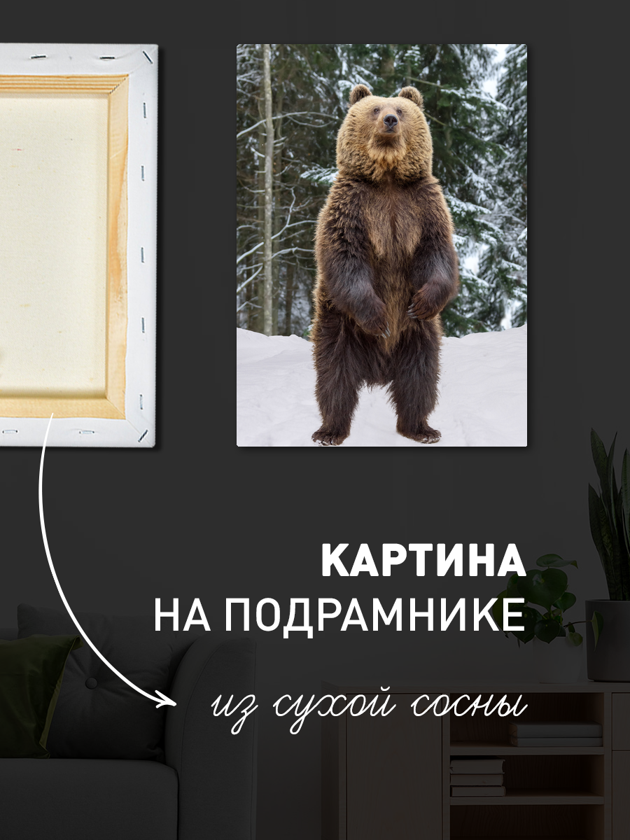 Описание: Картина 50 на 70 "Гармония природы" изображает величественного медведя, стоящего на задних лапах в зимнем лесу, окруженном снежными пейзажами и высокими зелеными деревьями. Уникальность этой картины заключается в ее детализированной передаче природы и жизненной силы животного, что создает ощущение мощи и гармонии. Каждый взгляд на эту картину вызывает чувство восхищения и умиротворения. Она способна перенести зрителя в тихие уголки дикой природы, напоминая о важности сохранения ее красоты. Эмоции, которые вызывает эта работа, разнообразны: от спокойствия и умиротворения до чувства восторга перед могуществом природы. Картина идеально подойдет для украшения гостиной, кабинета или спальни, добавляя нотку природной красоты и силы в любой интерьер. Также она будет великолепно смотреться в загородном доме или на даче, создавая атмосферу уюта и близости к природе. Эта картина станет не только стильным акцентом, но и предметом для обсуждения среди гостей.