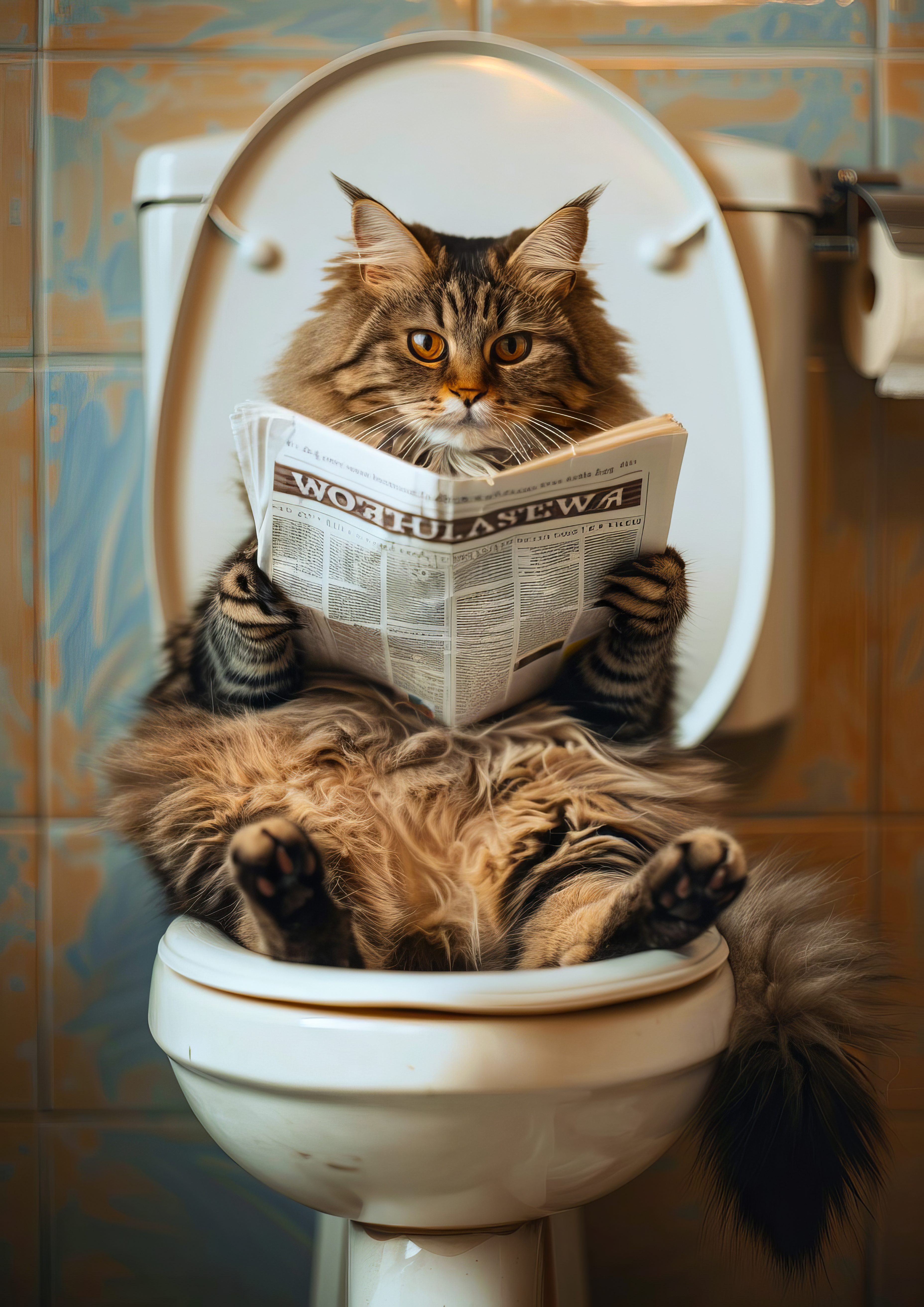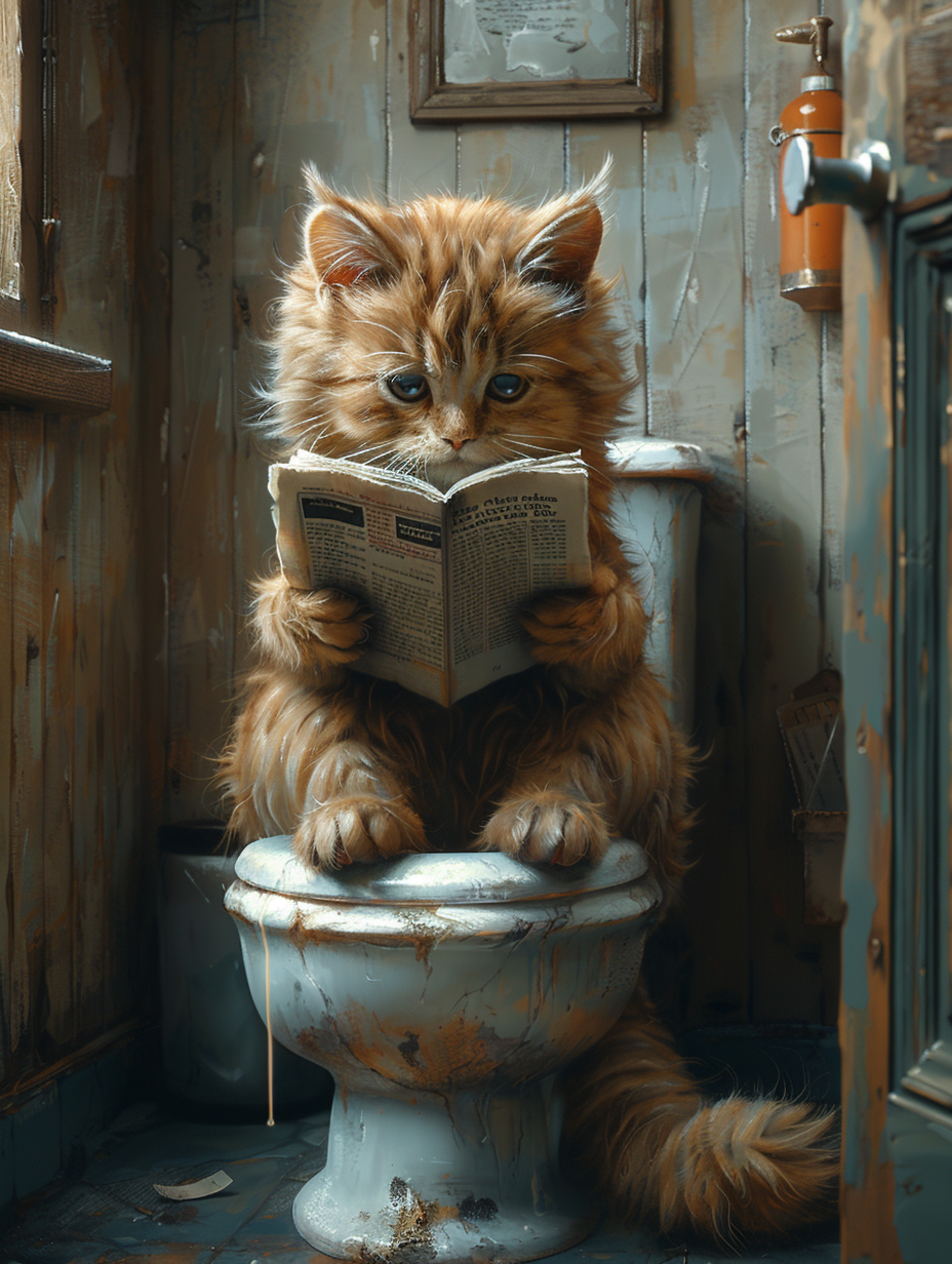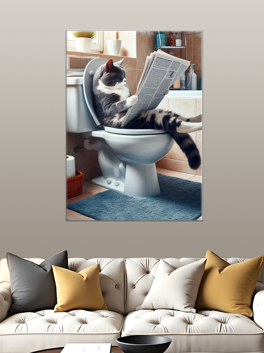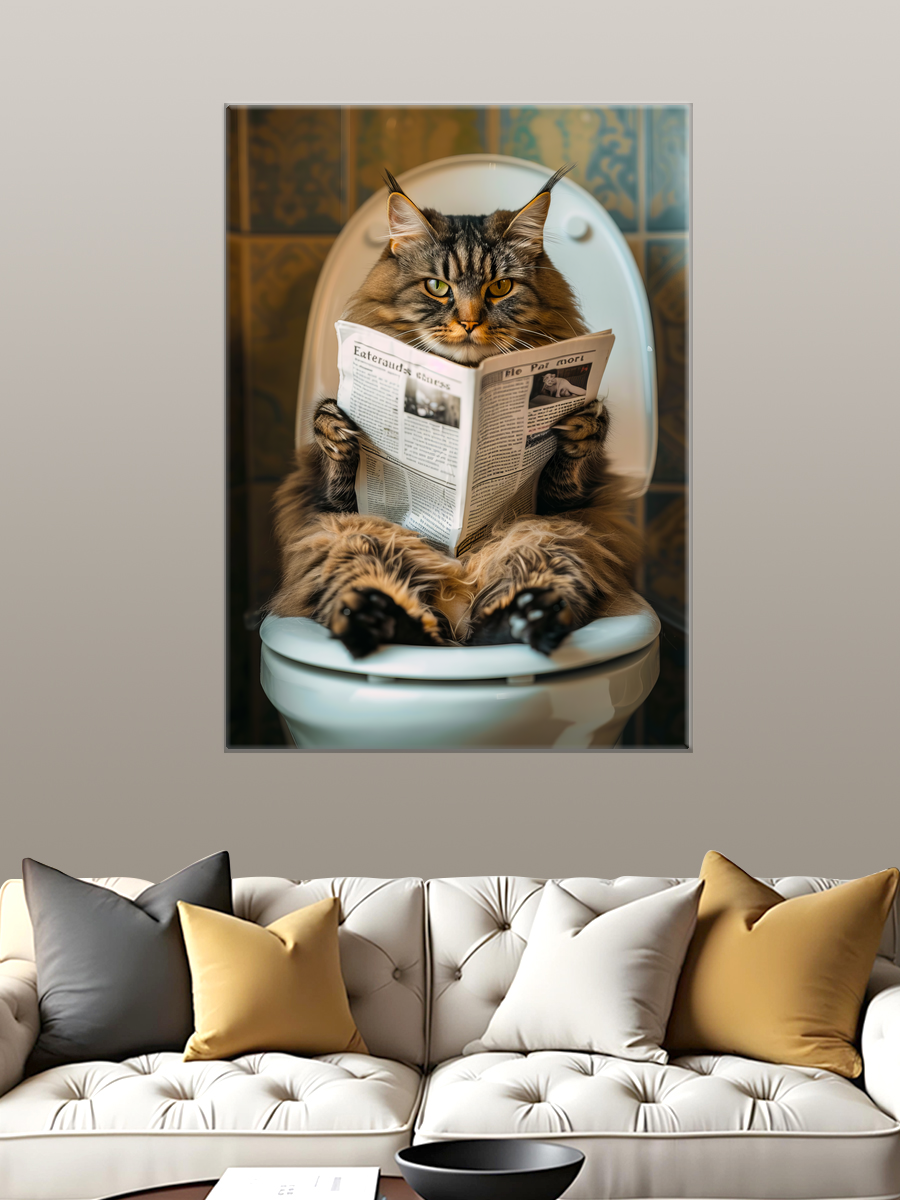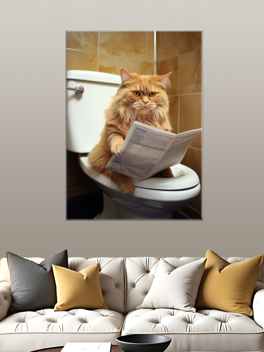 Описание: Картина 50 на 70 'Кошка с газетой' изображает игривую белую кошку, удобно устроившуюся на унитазе, внимательно читающую газету. Эта уникальная работа привлекает внимание своим юмором и игривостью, создавая атмосферу легкости и веселья в вашем доме. Кошка, с выразительными оранжевыми глазами, словно погружена в мир новостей, что вызывает улыбку у каждого, кто на нее смотрит. Эмоции, которые вызывает эта картина, — это радость и умиротворение. Она добавляет немного игривости и тепла в любую обстановку, идеально подходя для создания уютного уголка в вашем доме. Представьте, как она будет радовать вас и ваших гостей, привнося в интерьер нотку оригинальности и шутливости. Эта картина станет великолепным акцентом в ванной комнате, туалете или даже в кухне. Благодаря своим светлым и нейтральным оттенкам, она гармонично впишется в любой интерьер — от современного до классического — и украсит пространство, добавляя ему индивидуальности. 'Кошка с газетой' — это не просто картина, это элемент, который оживит ваш дом и поднимет настроение каждый день.